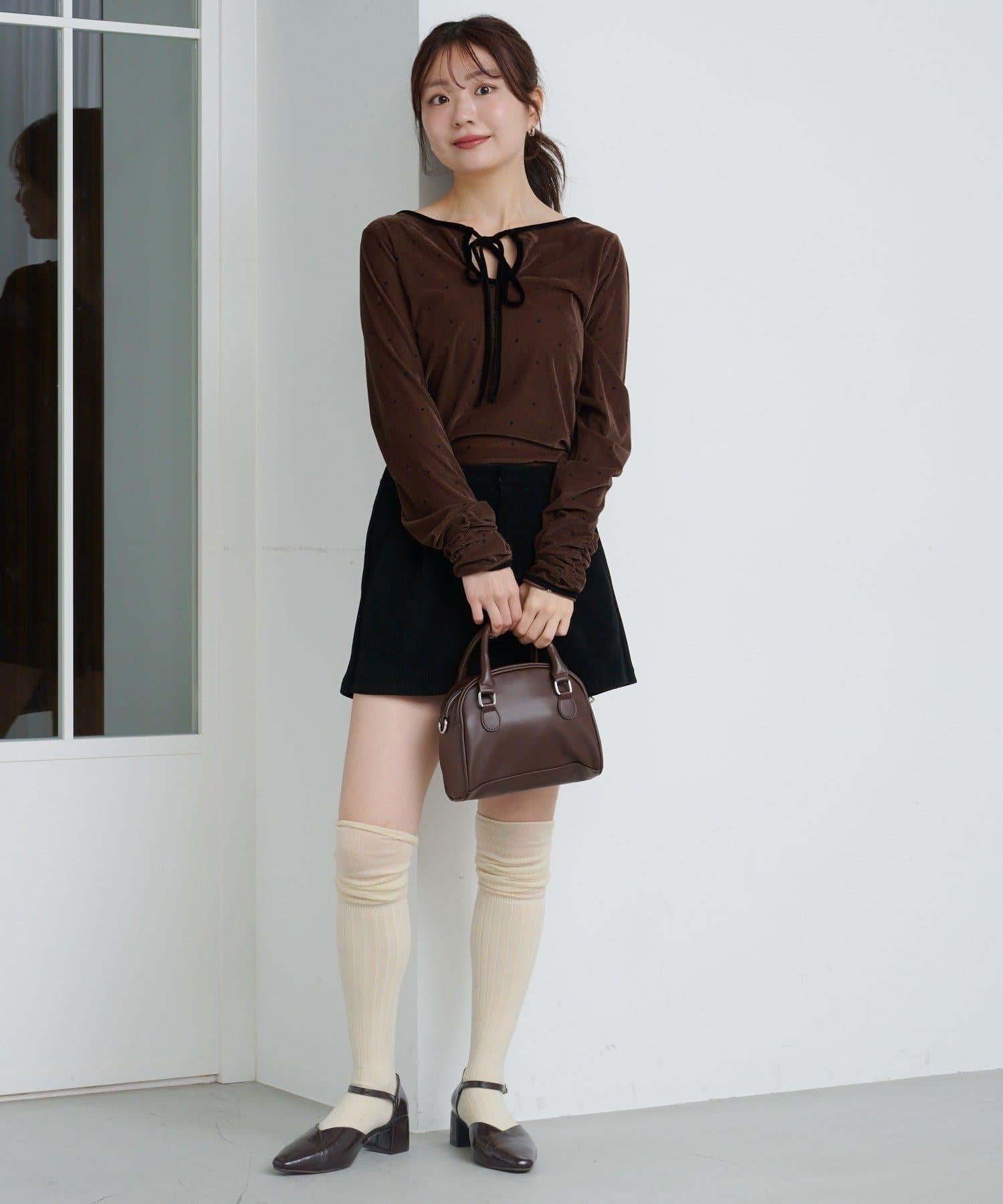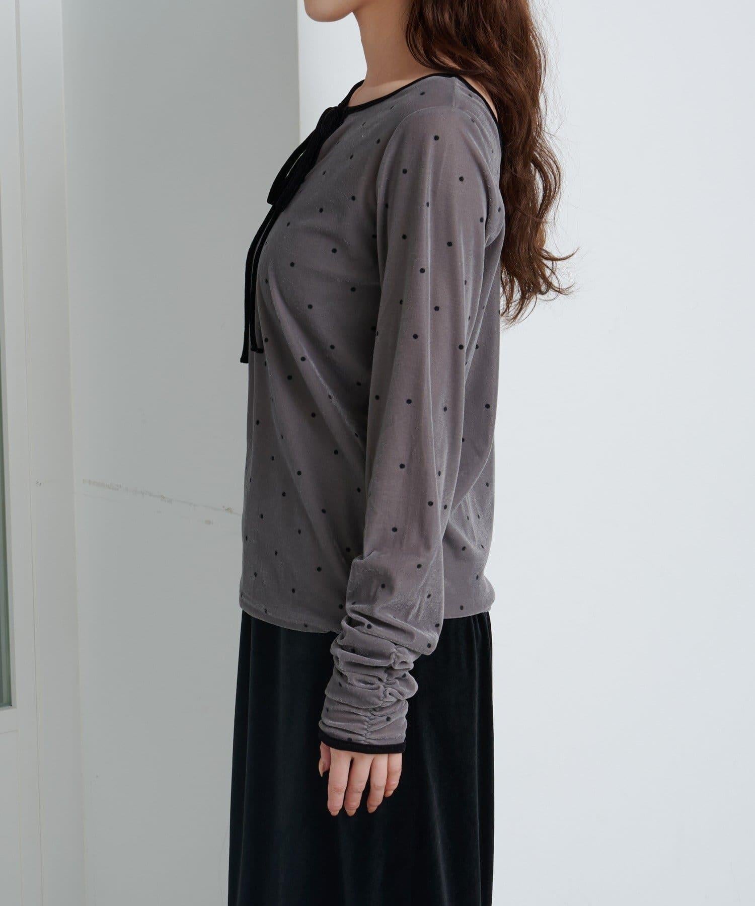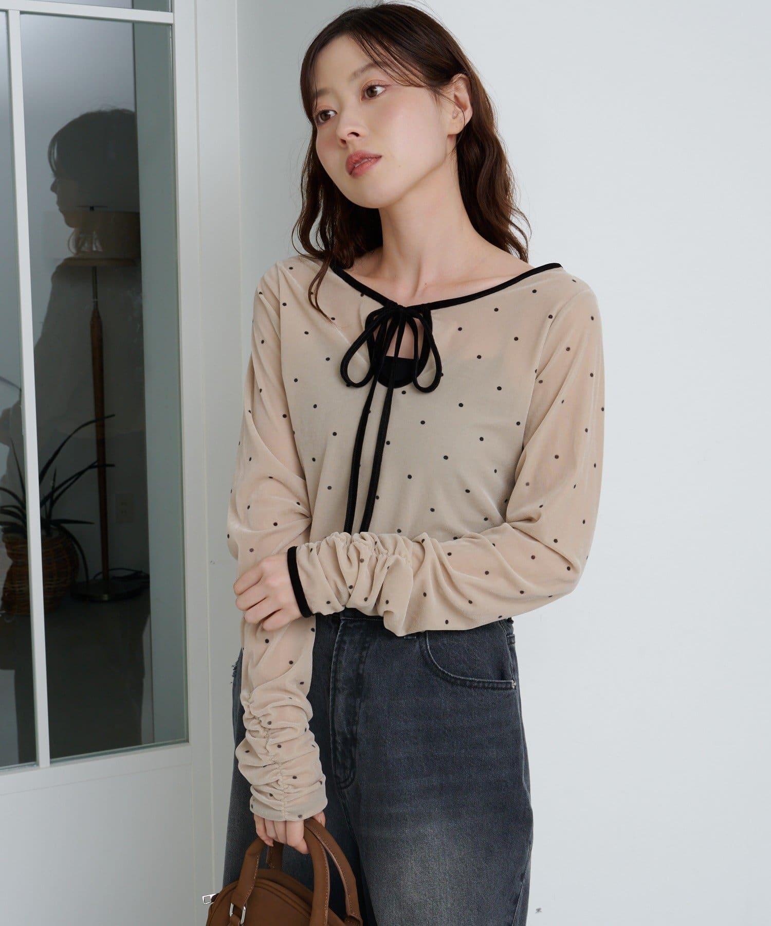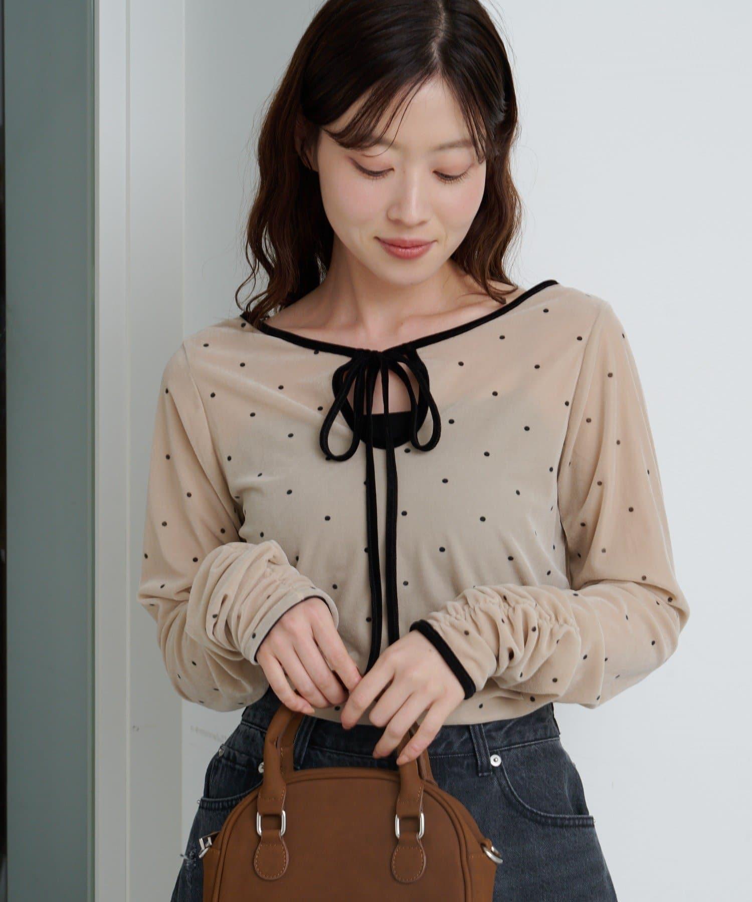 頸部的絲帶可作為夾克或開衫的內搭,增添微妙的趣味性。