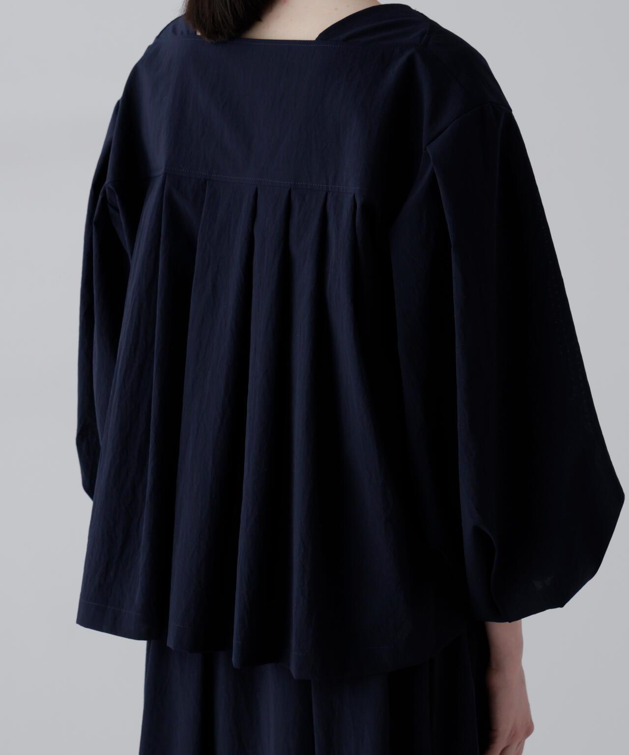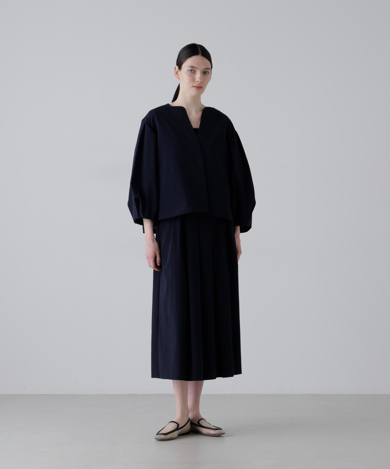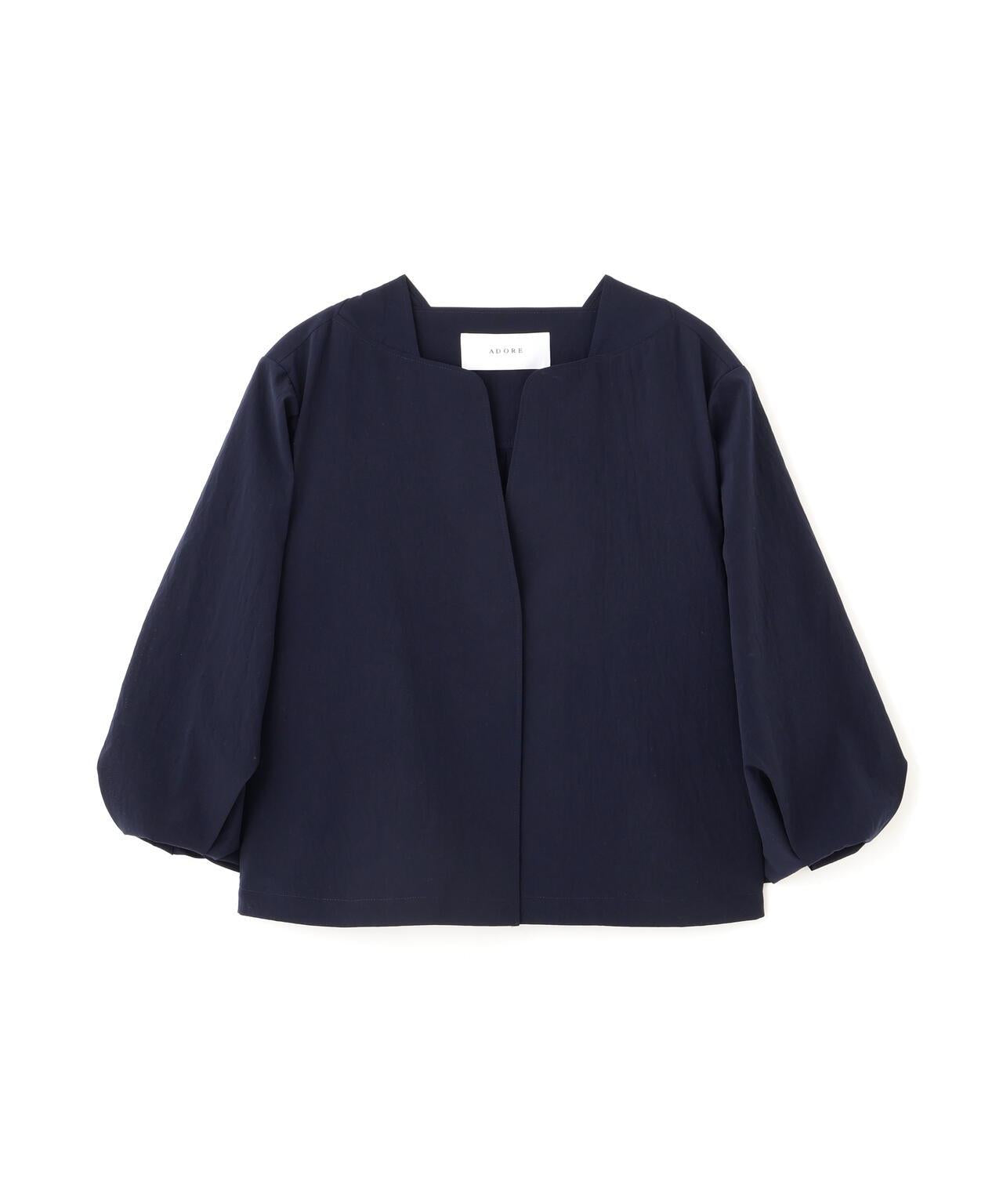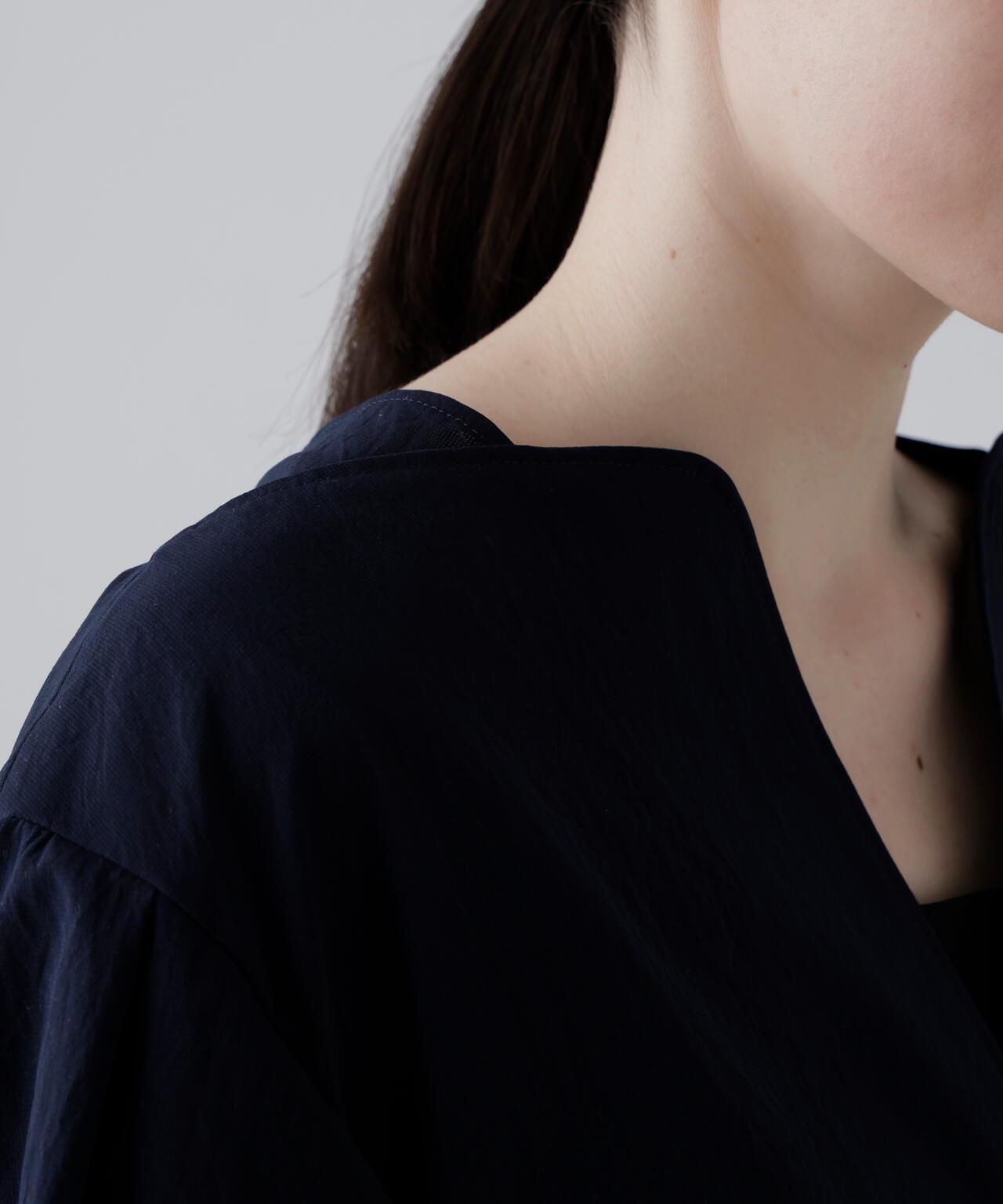 點狀網眼無領夾克,採用輕盈柔軟的面料製成。衣袖採用氣球式設計,衣身後部也採用了褶襉設計。東麗開發了高度透氣和輕質的 "Dot Air"。這種面料採用梭織,但設計有細密的網眼狀孔洞,並經過滾筒處理,使其具有自然的皺褶和蓬鬆感。