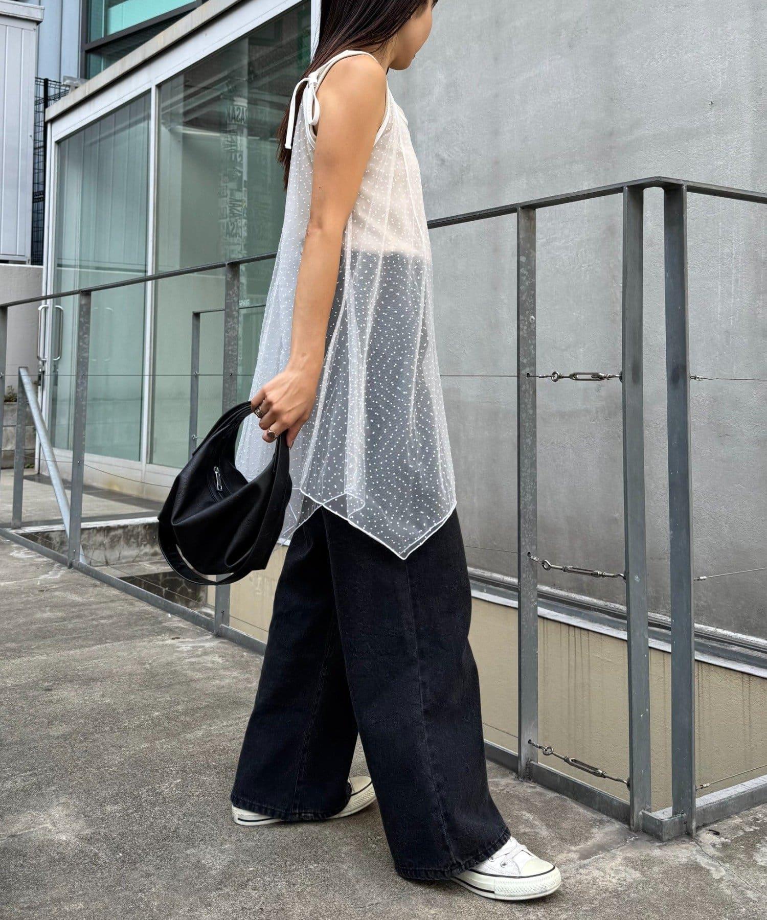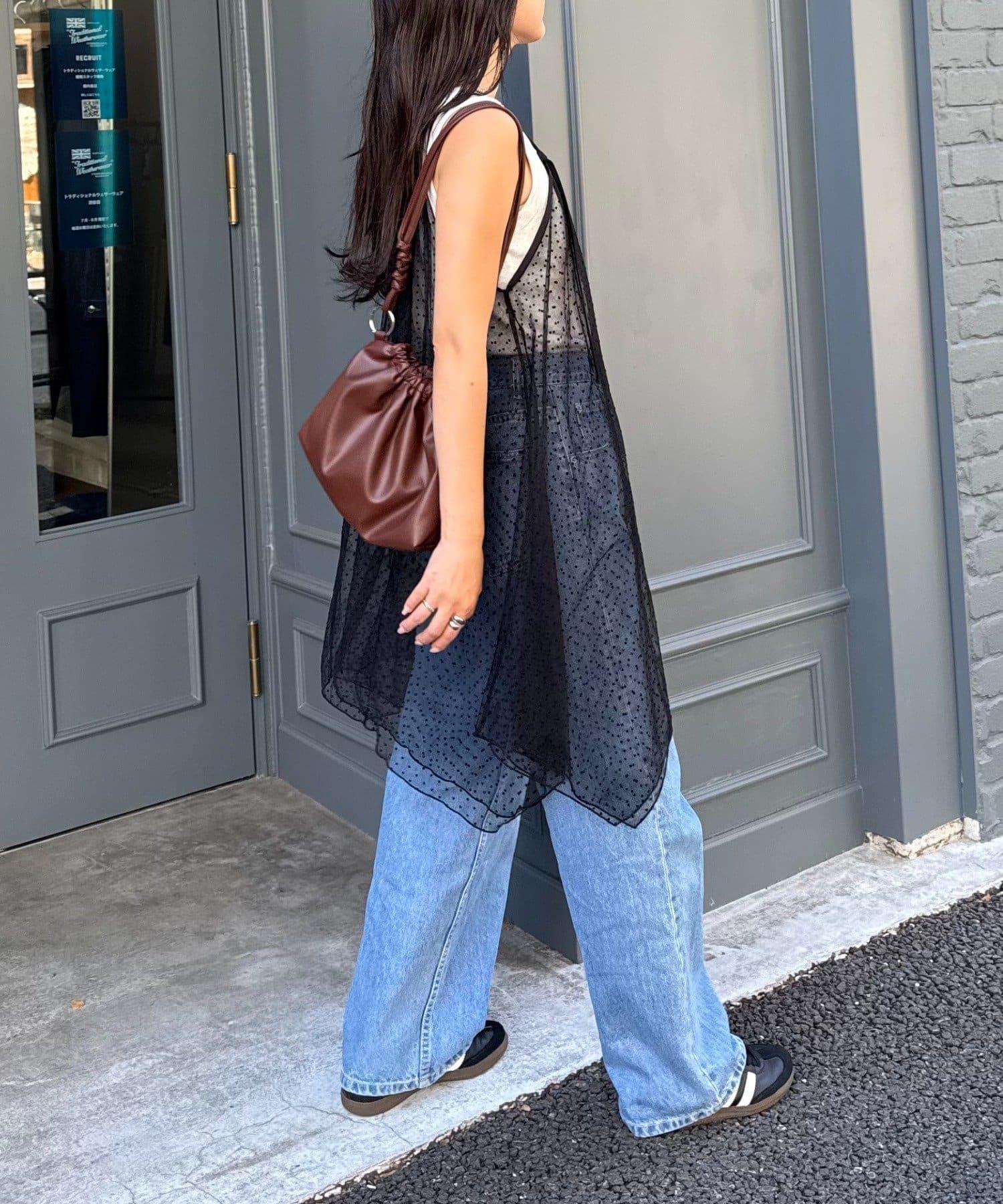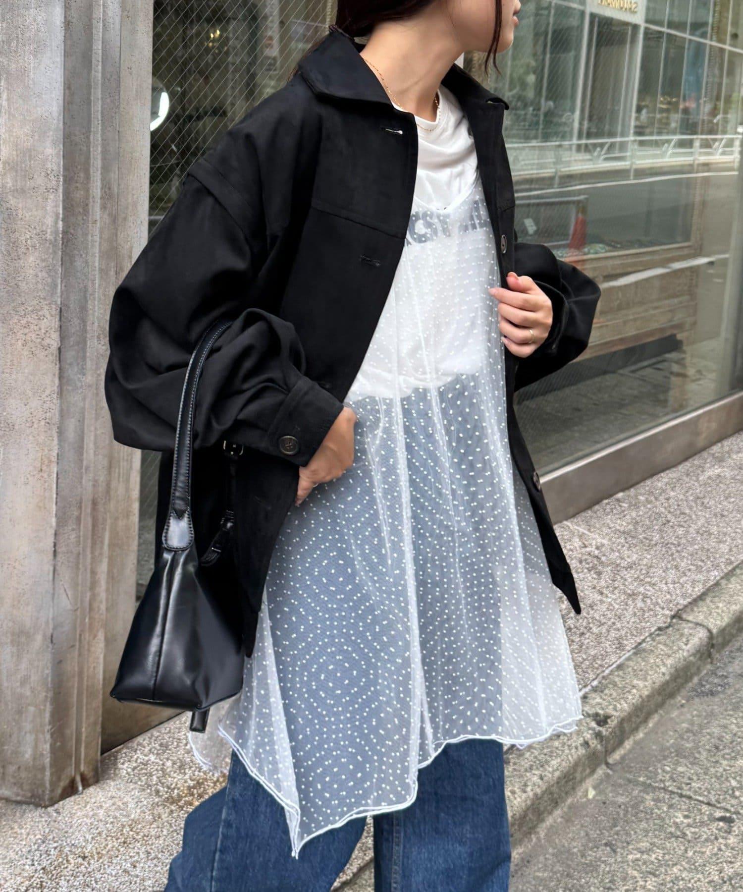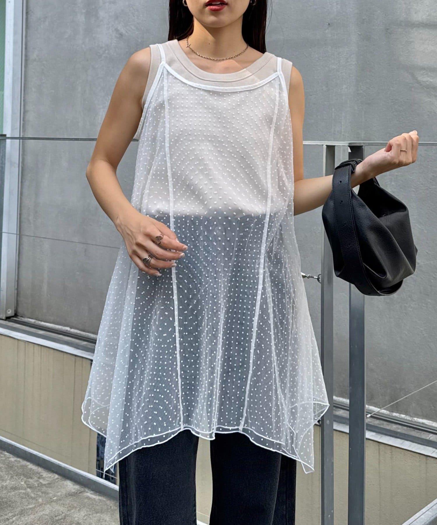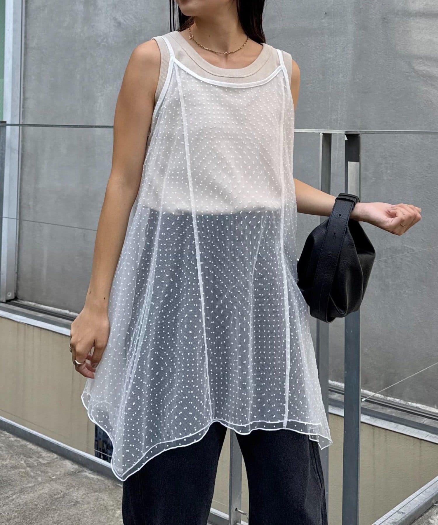 透明的設計可以讓你享受與 T 恤和針織衫疊穿的樂趣,因此可以四季穿著。