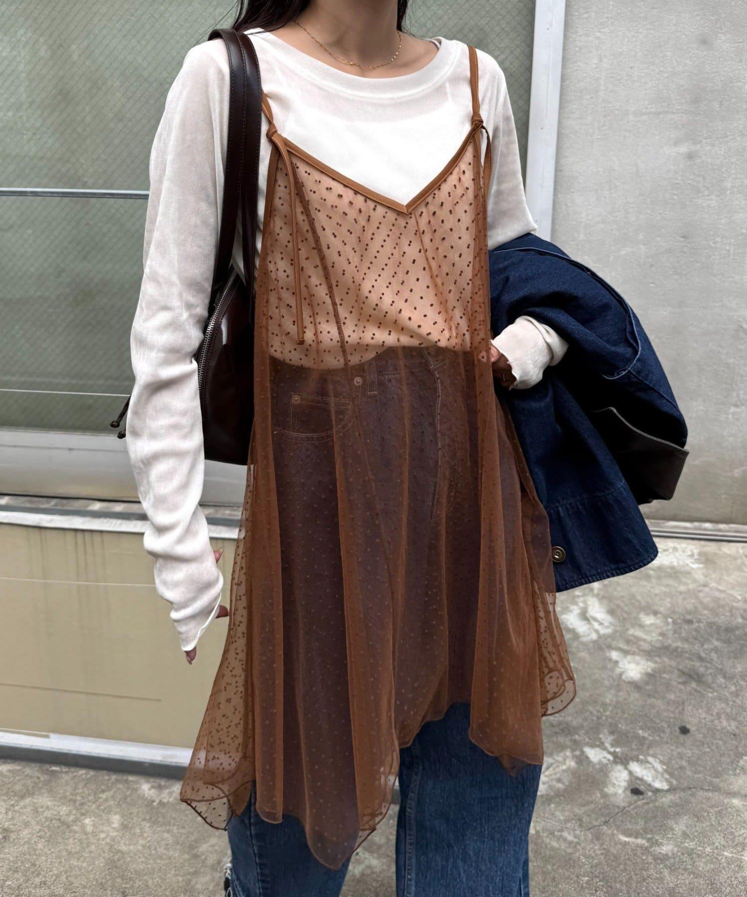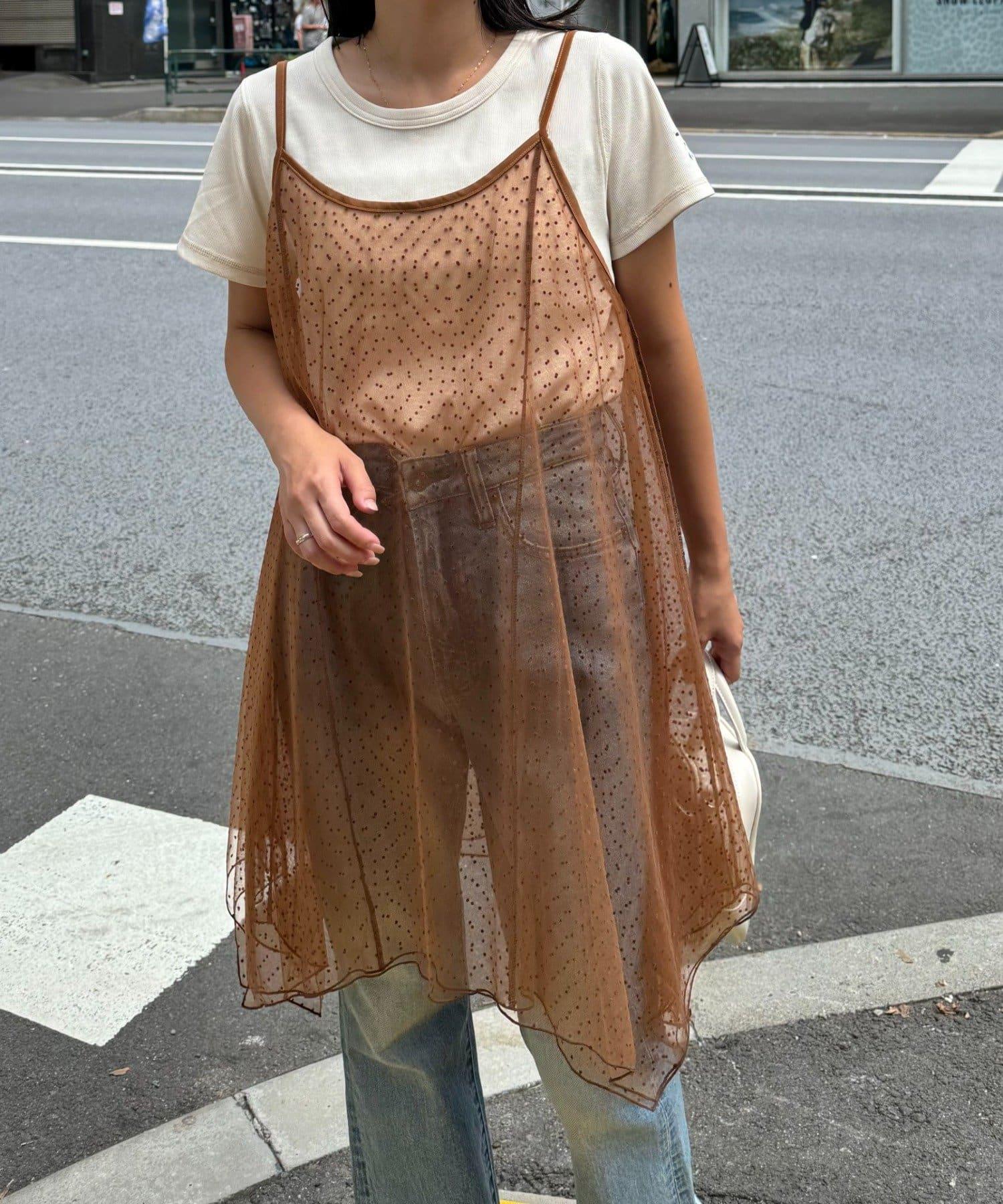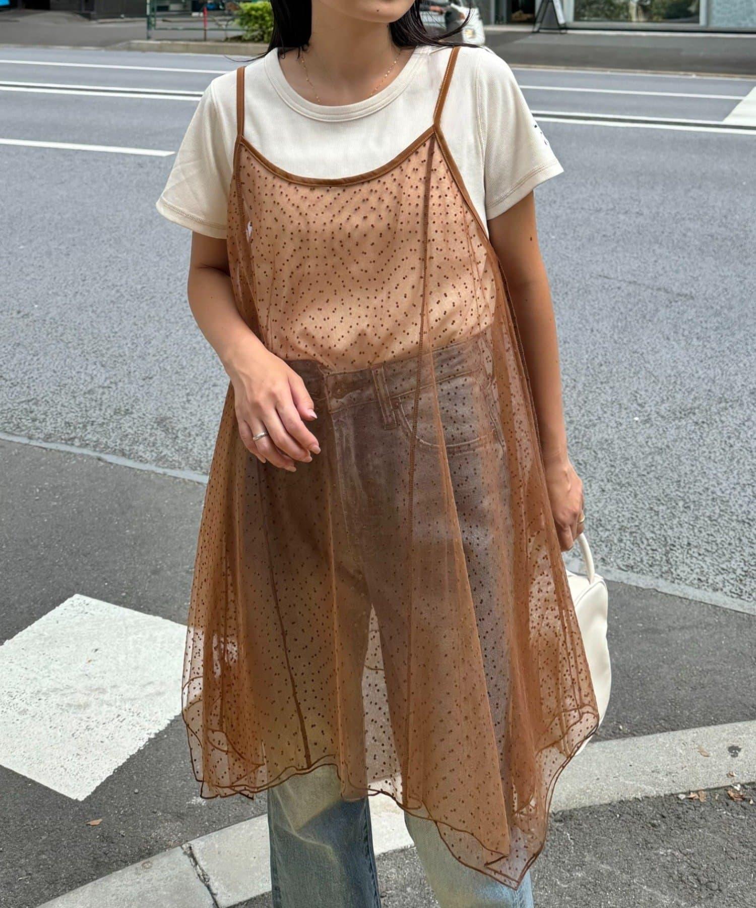 小圓點薄紗吊帶長衫連衣裙讓你只需疊加就能瞬間變身時尚達人!