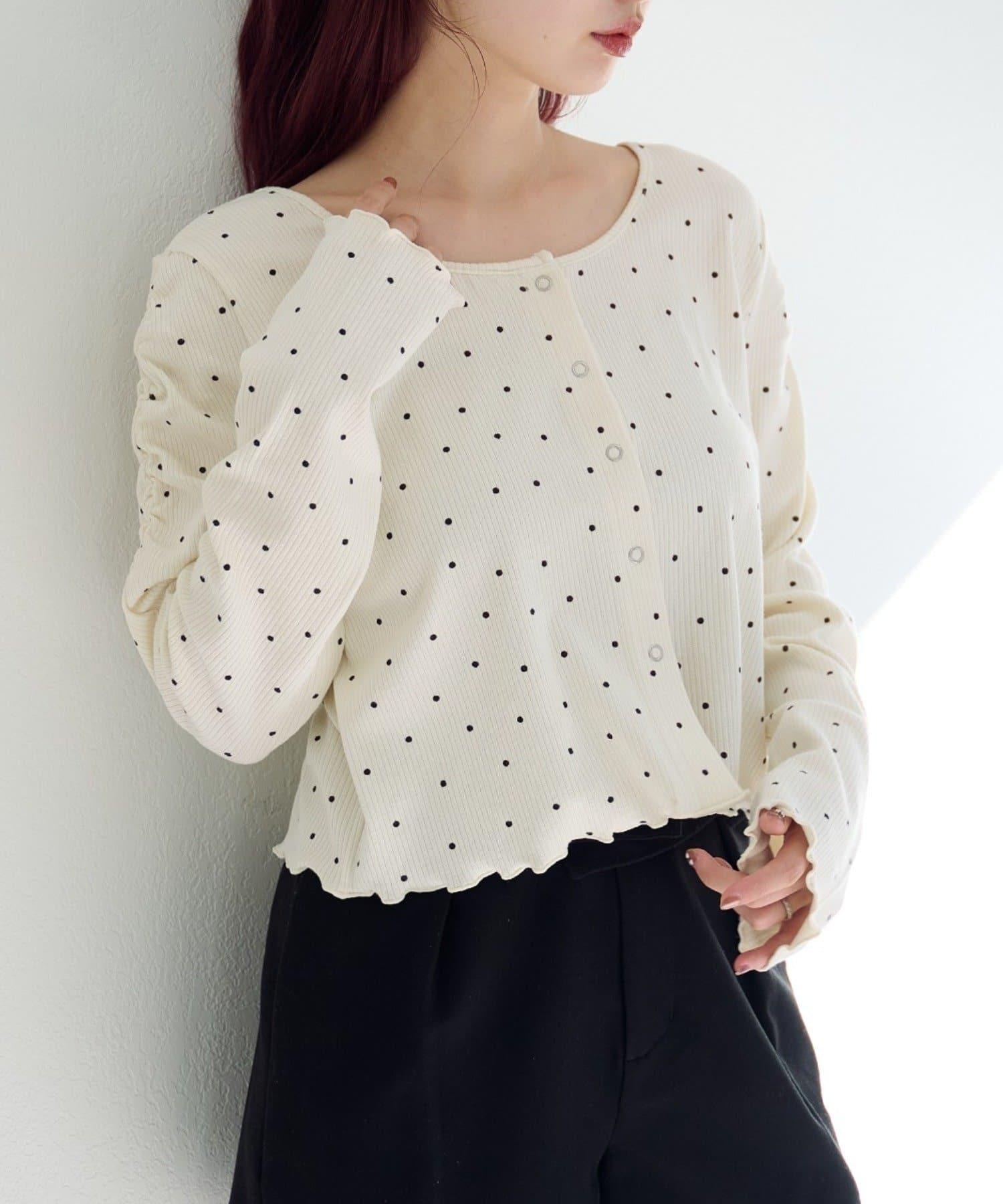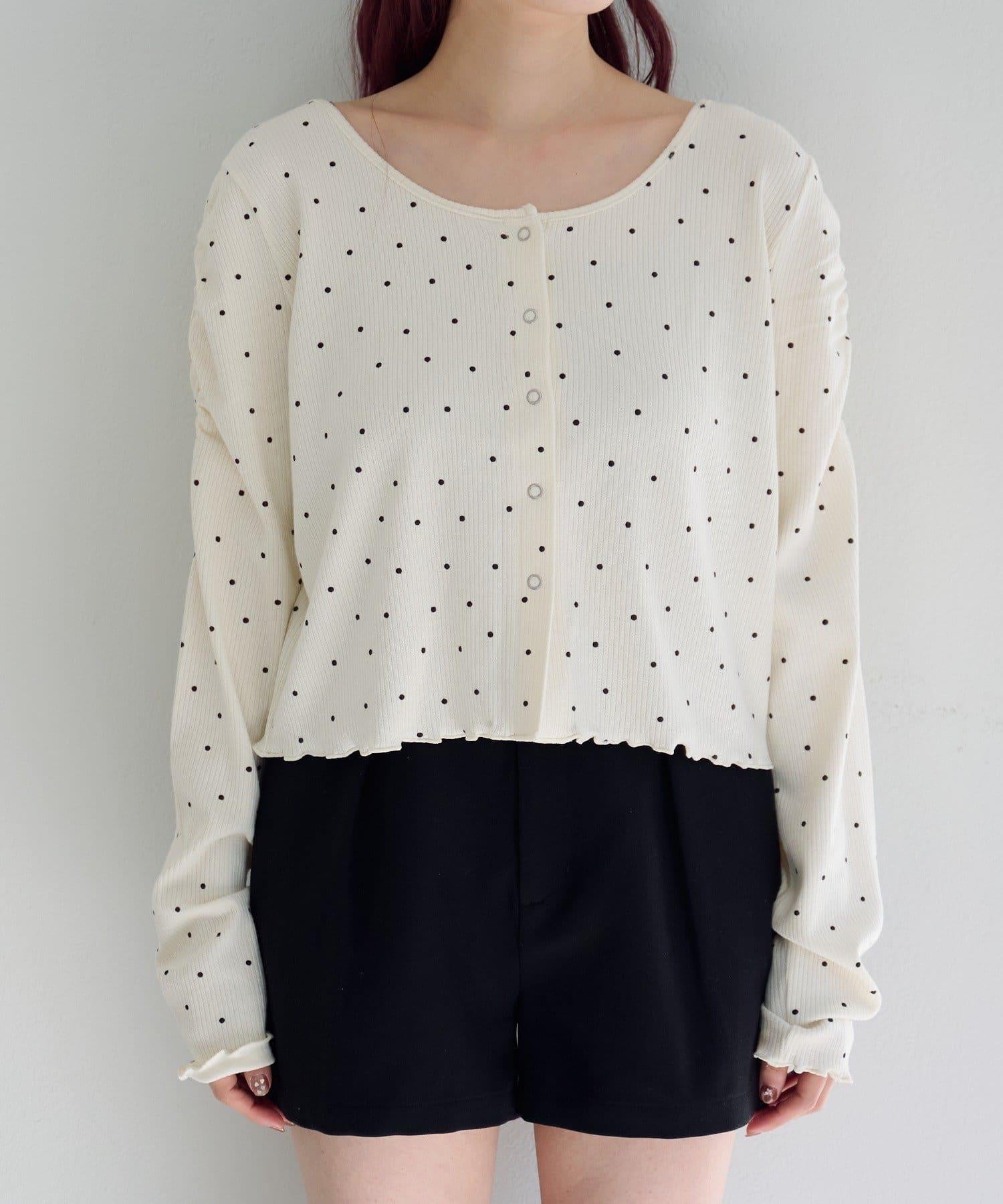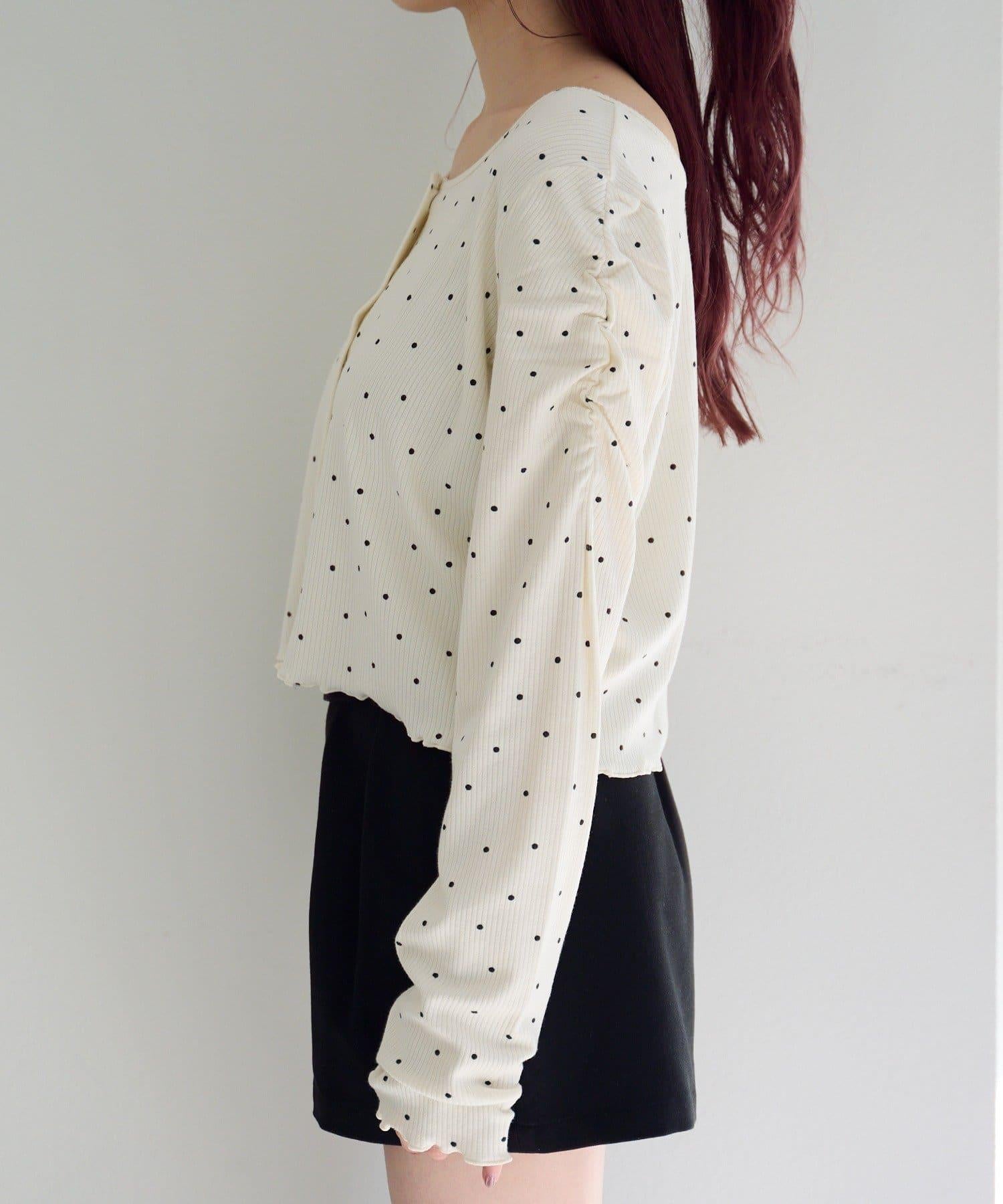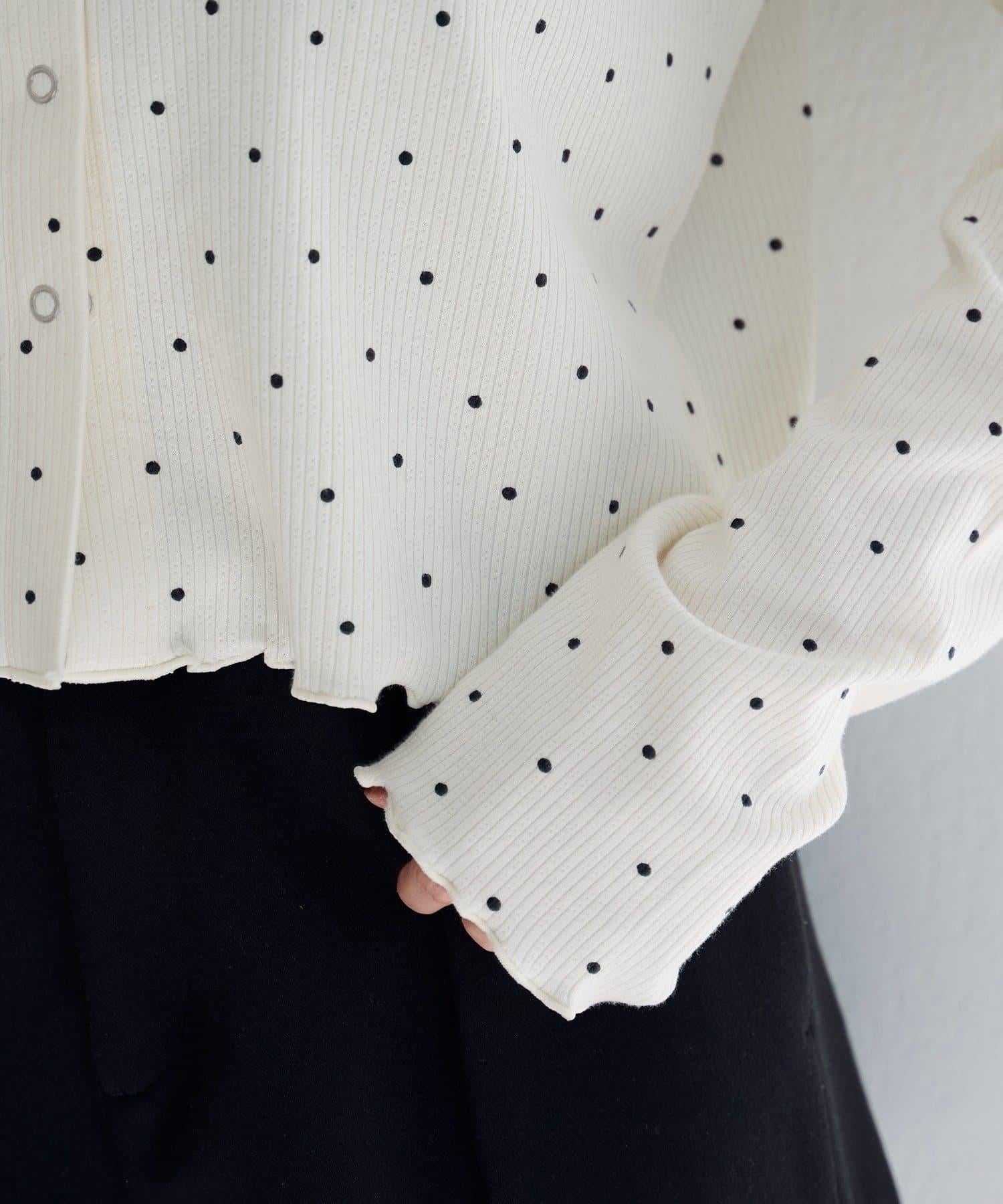 波點與純色 針拔羅紋 針織開衫