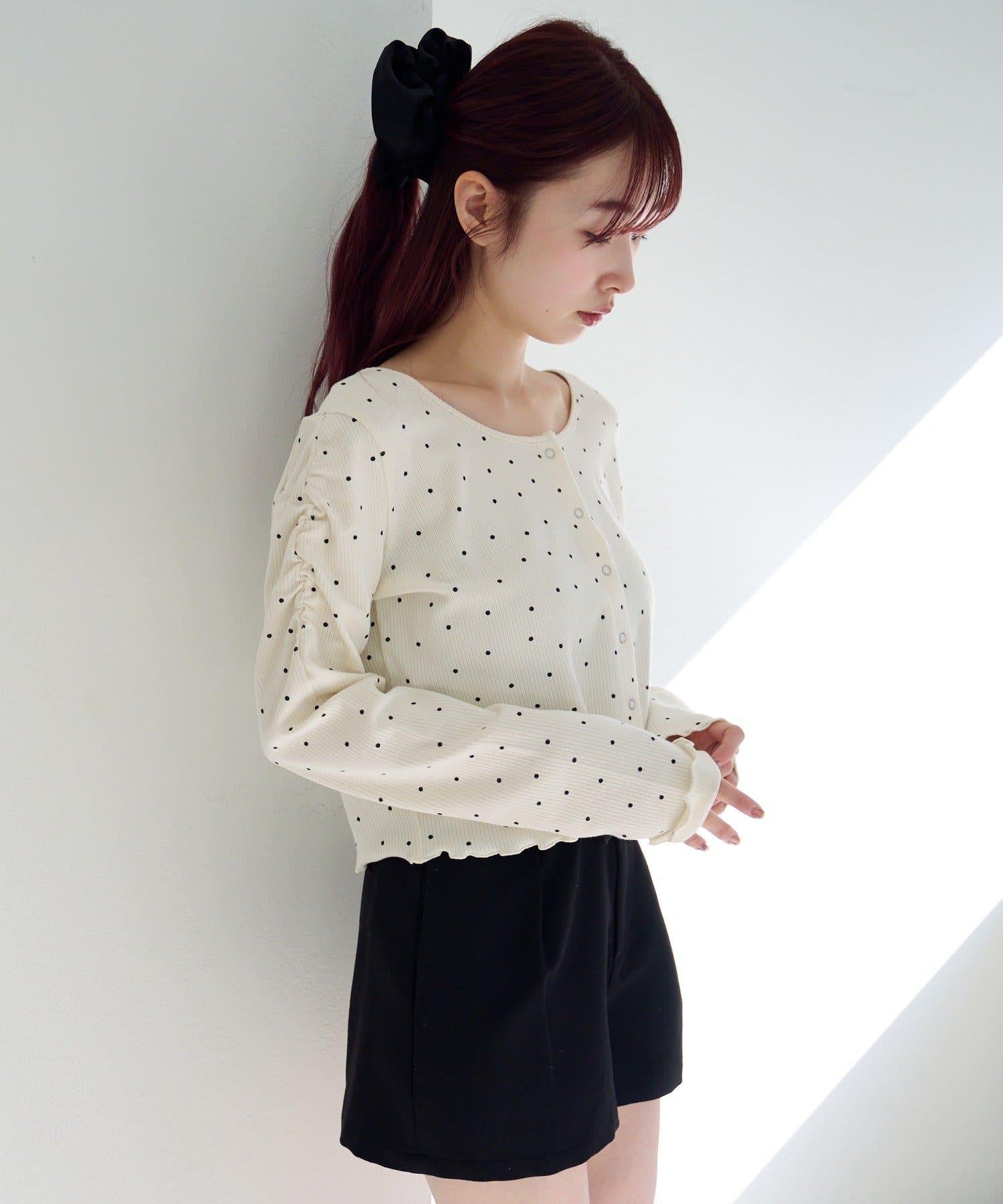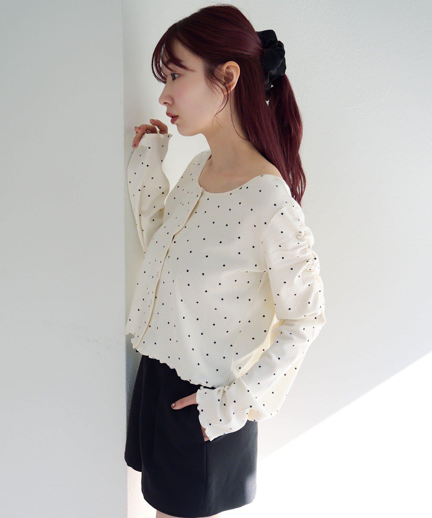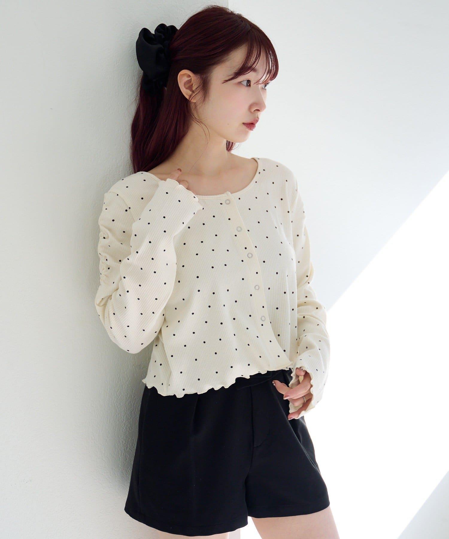 波點與純色 針拔羅紋 針織開衫