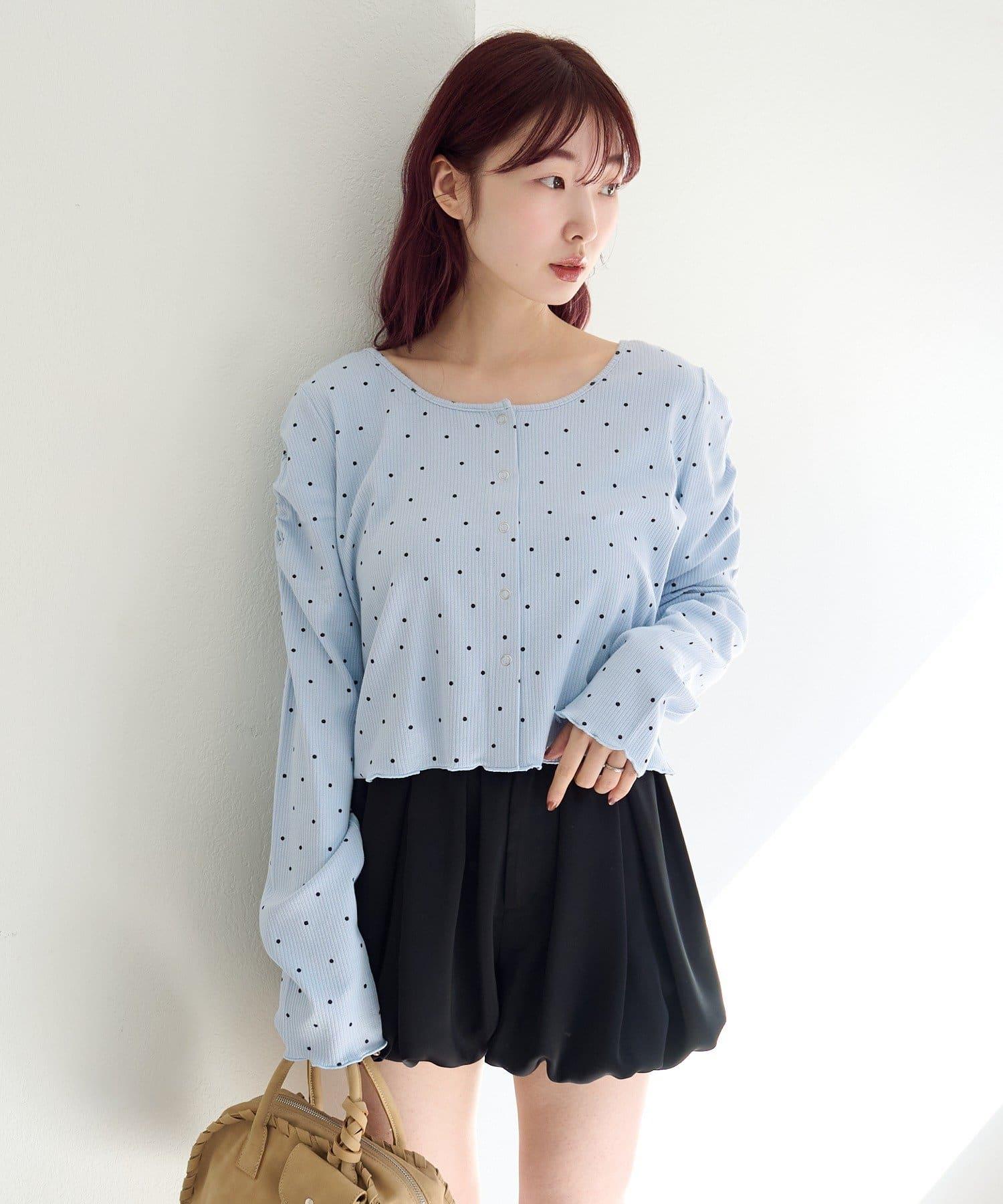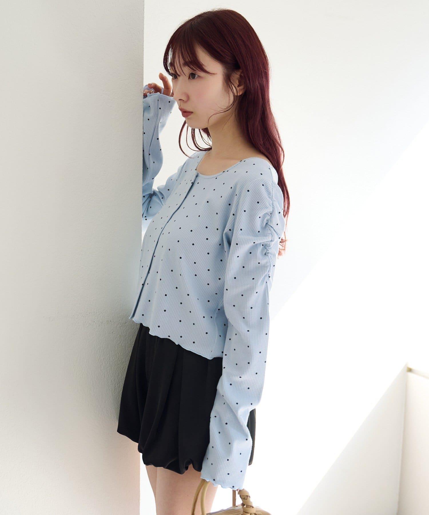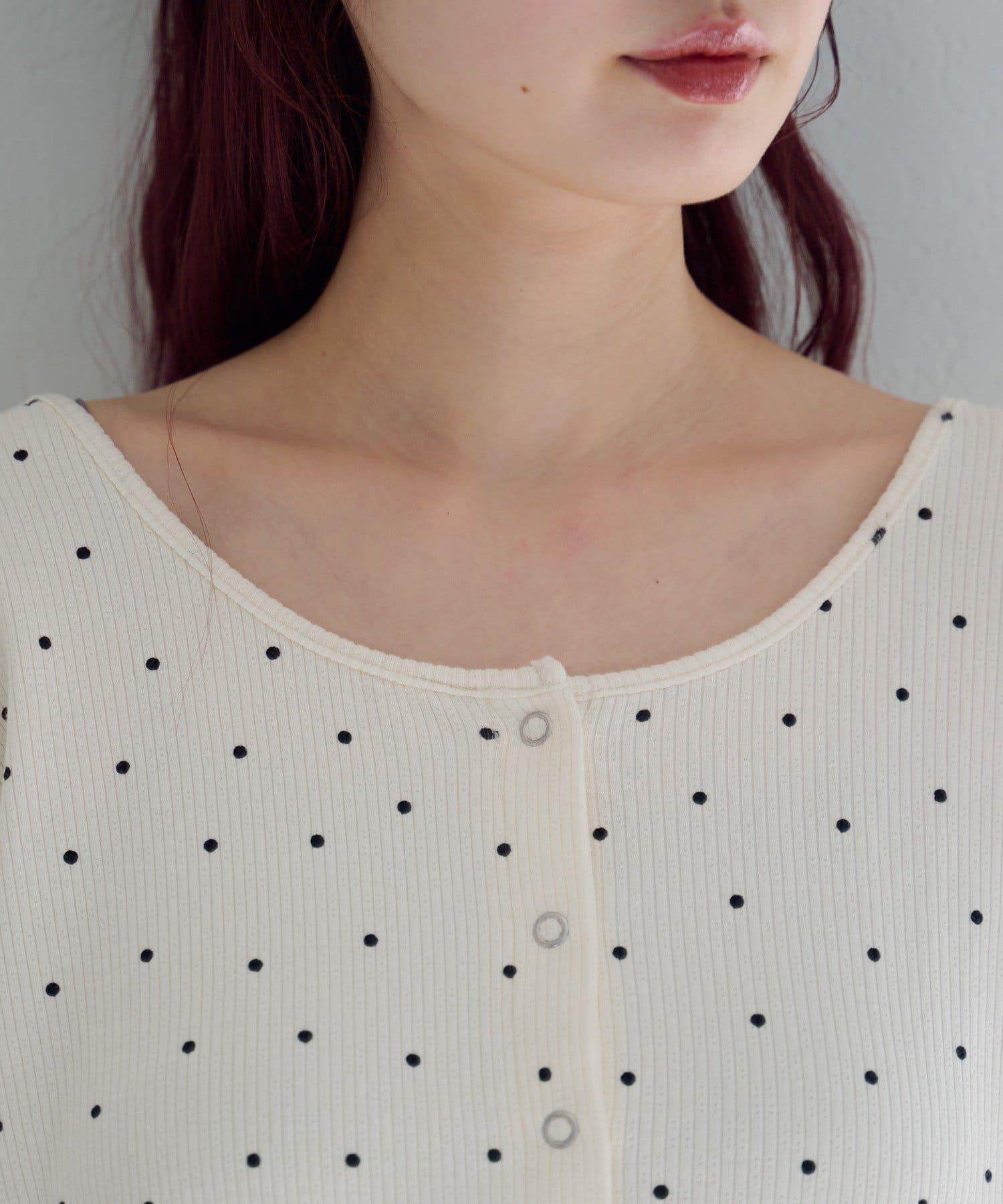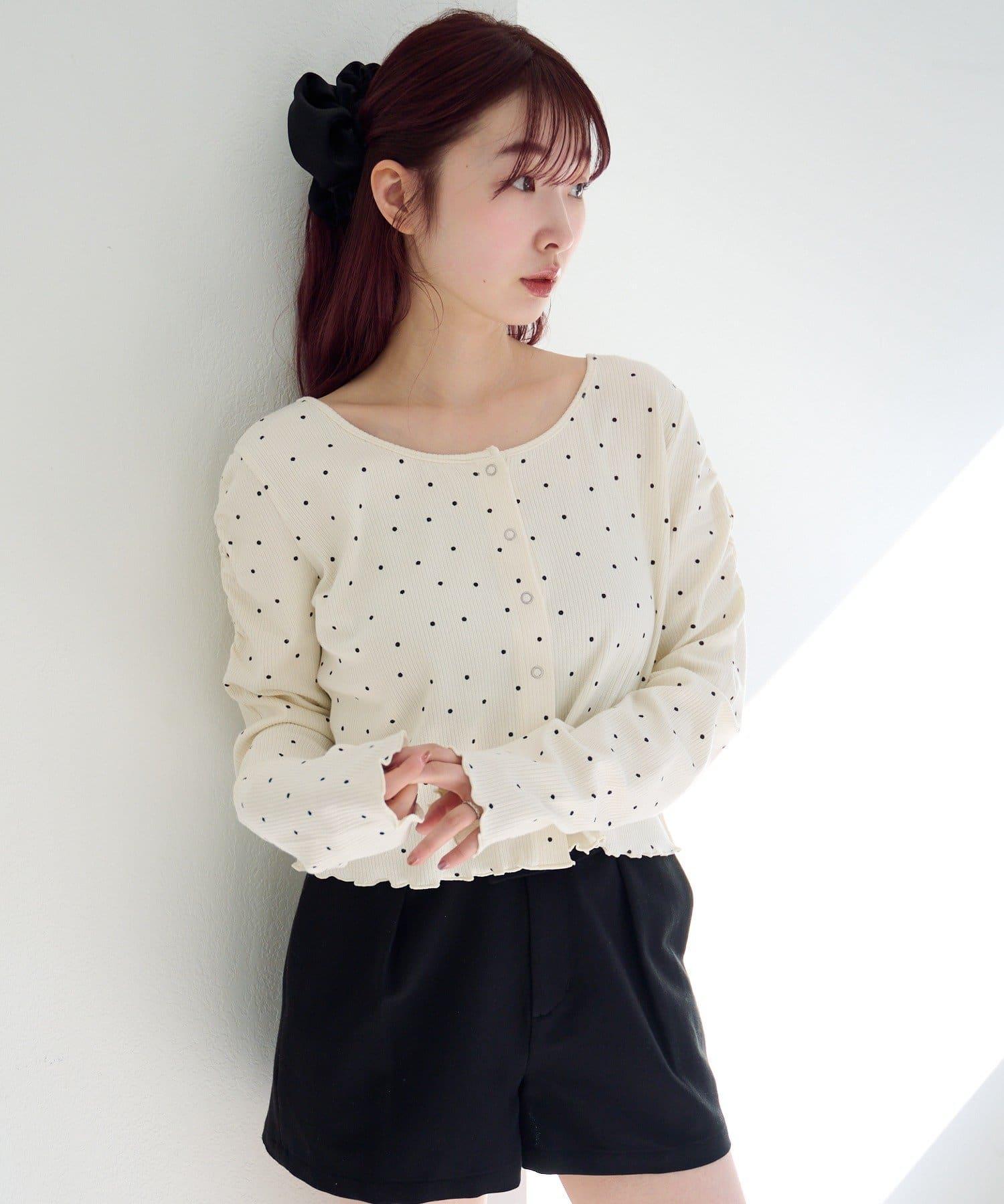 波點與純色 針拔羅紋 針織開衫