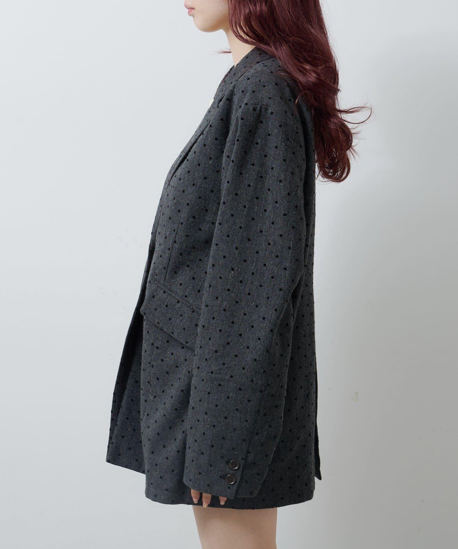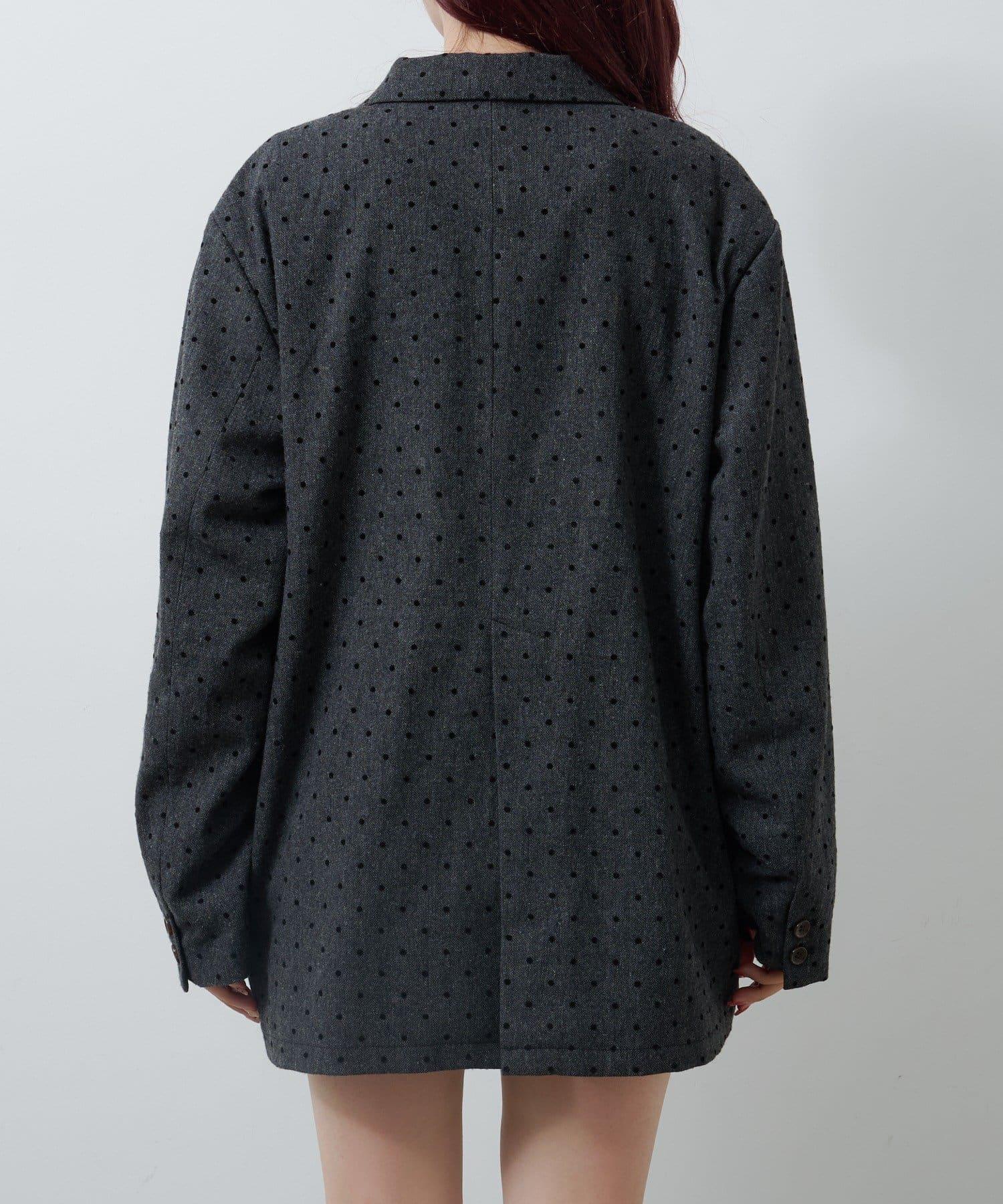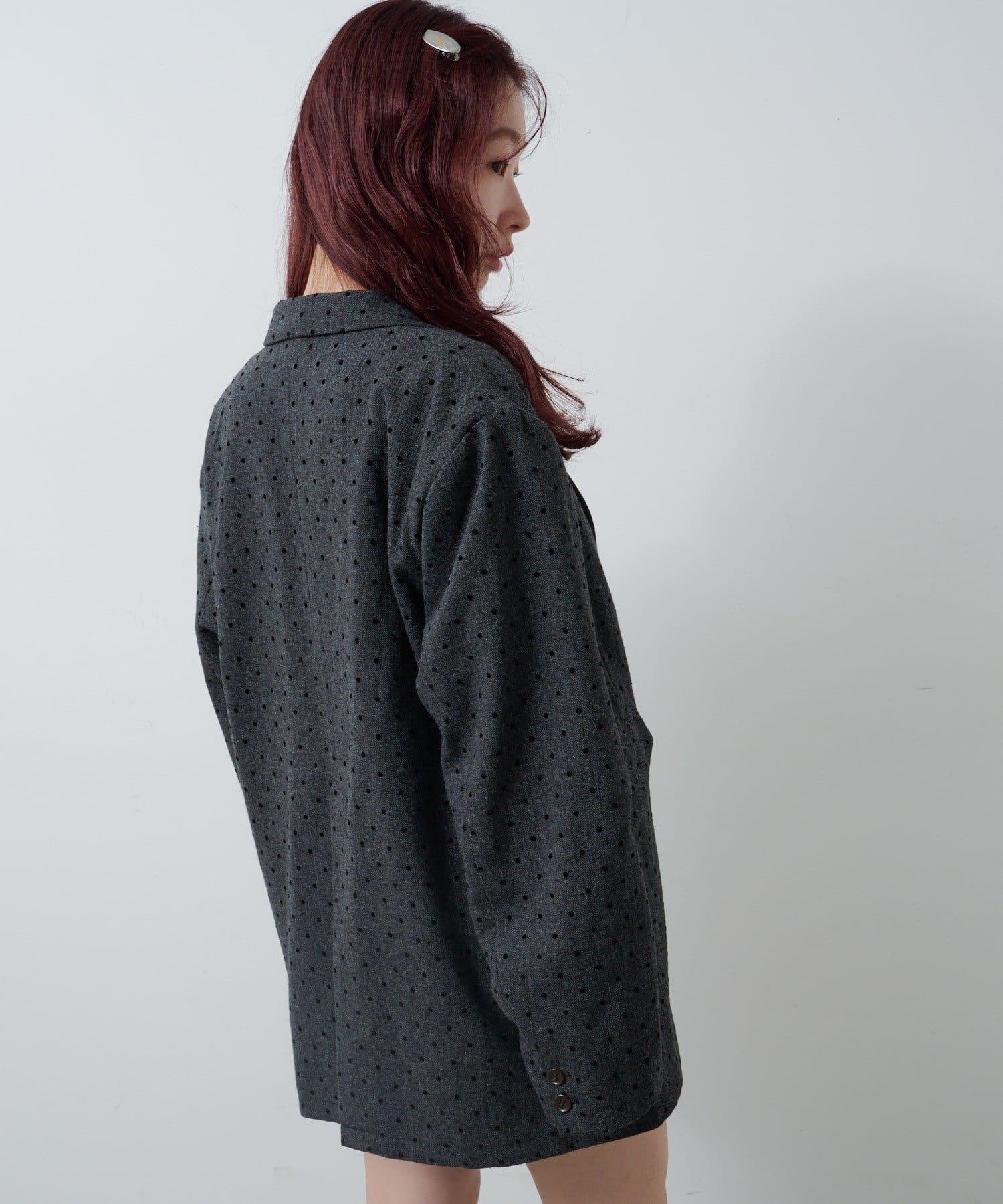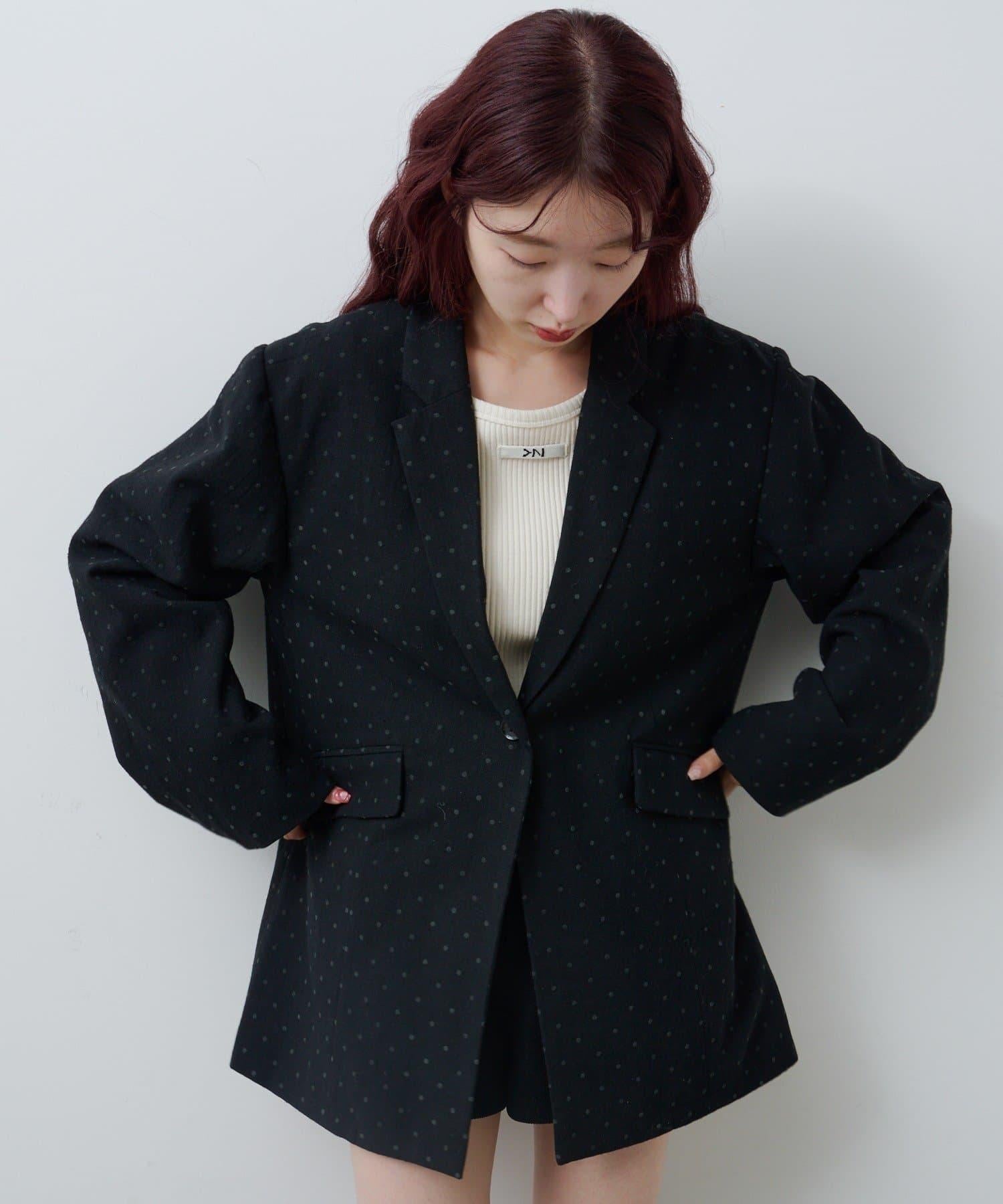 點狀圖案為男性化的剪裁設計增添了女性的柔美。