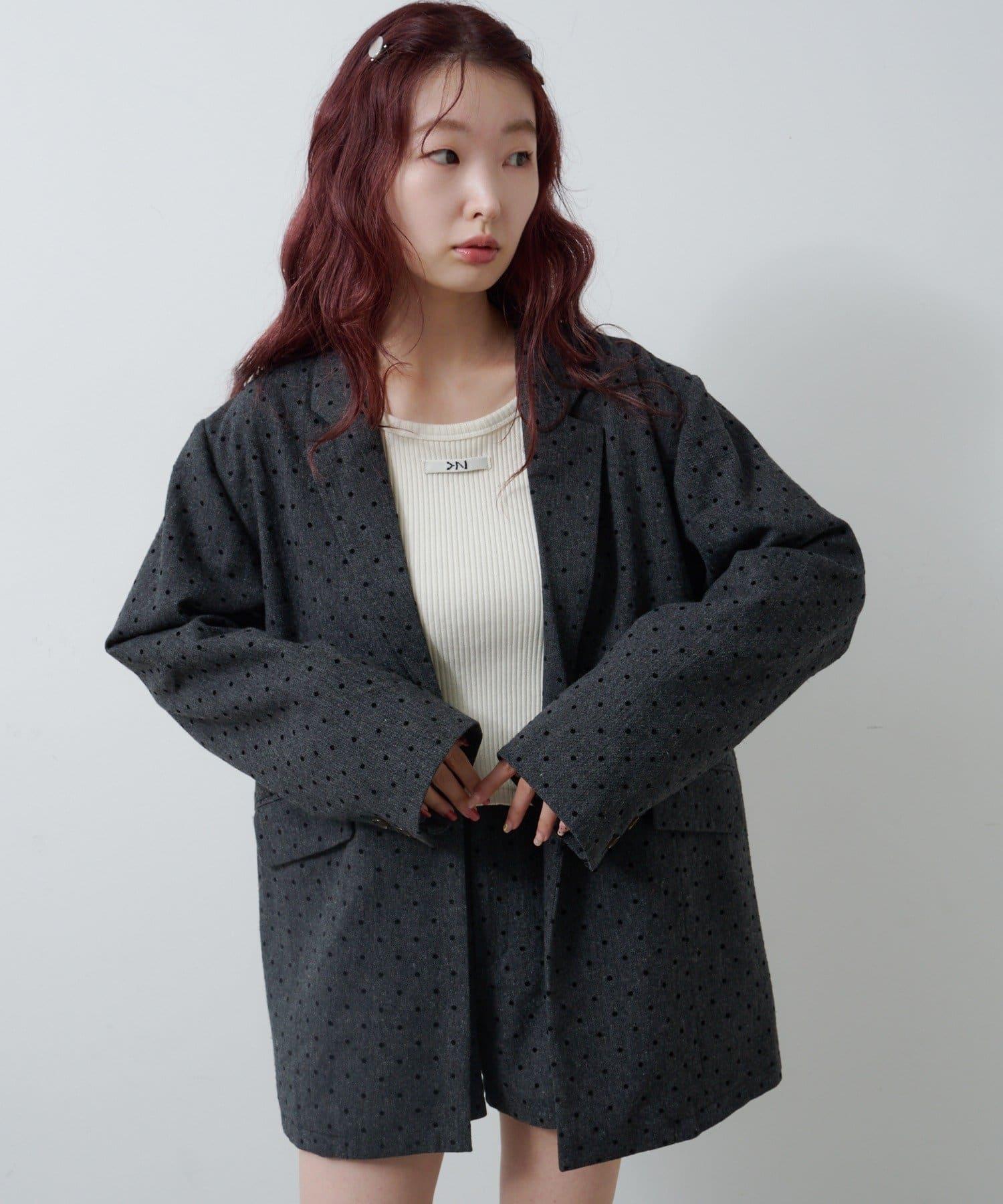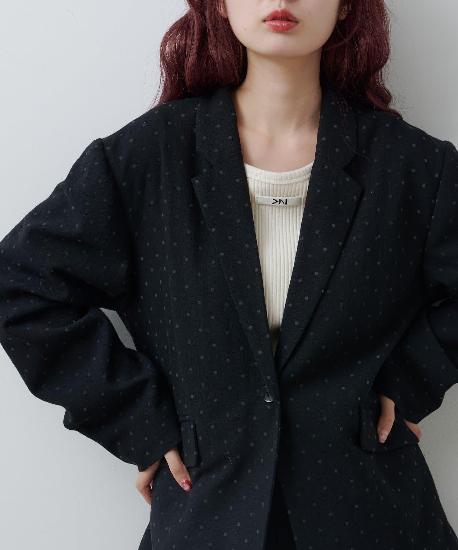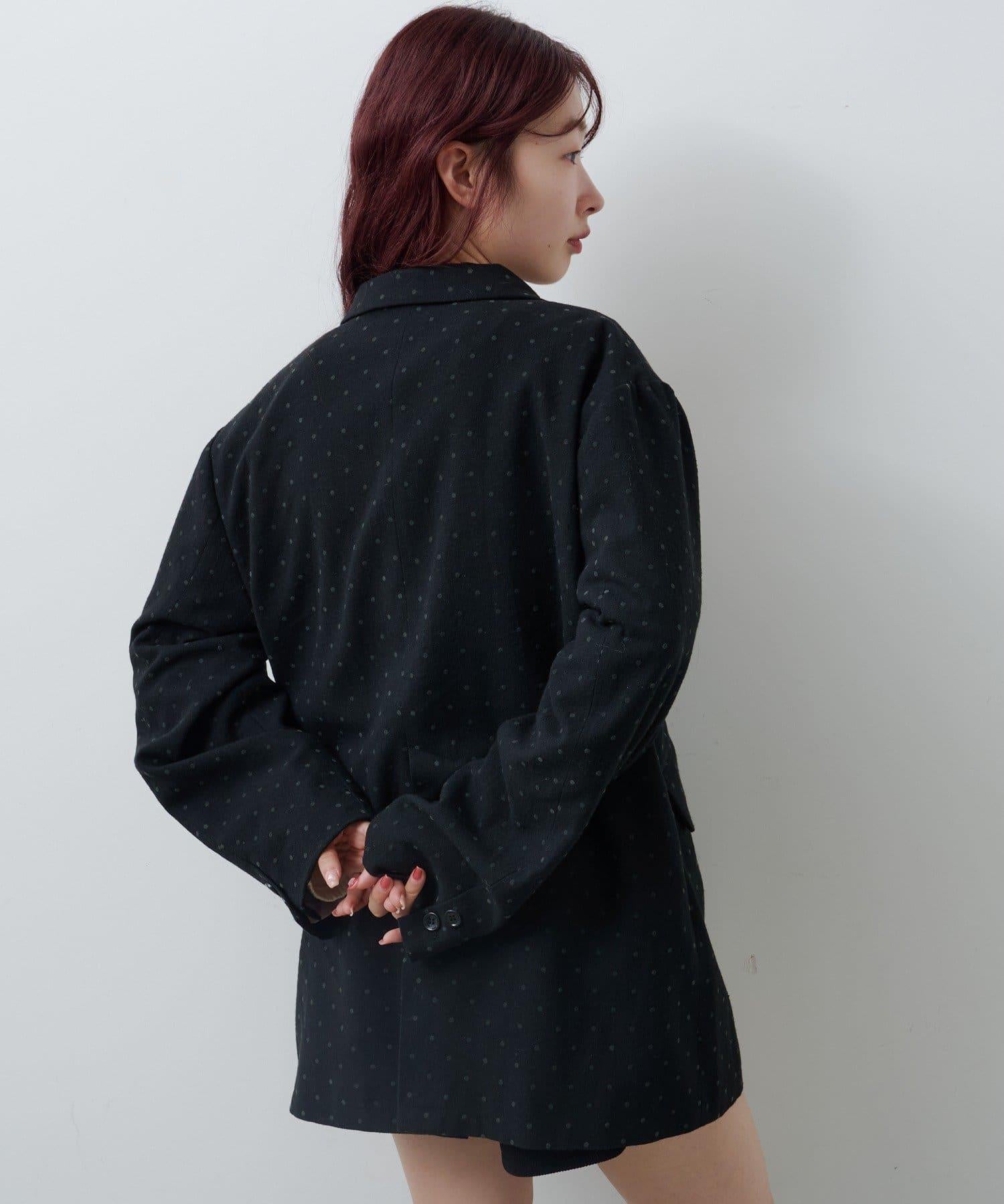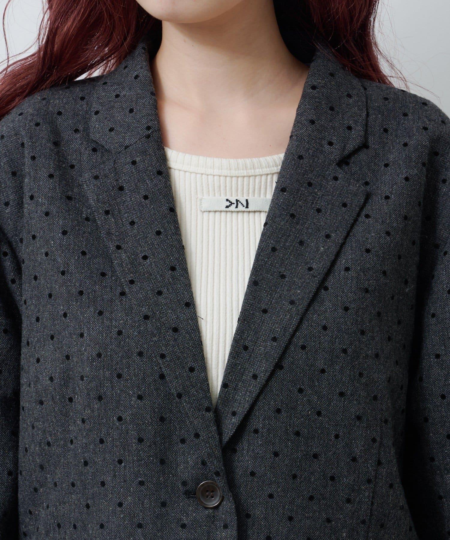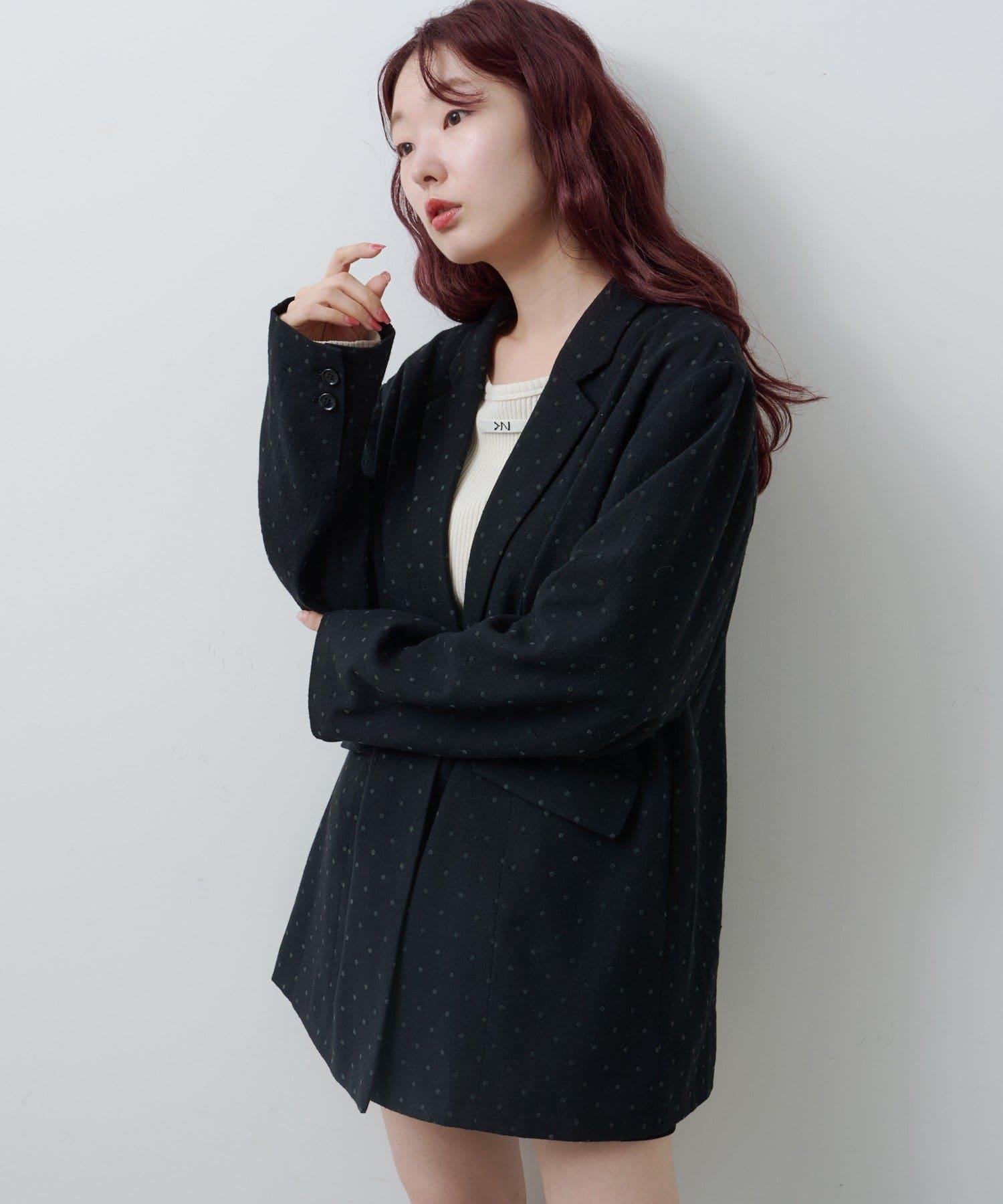 點狀圖案為男性化的剪裁設計增添了女性的柔美。
