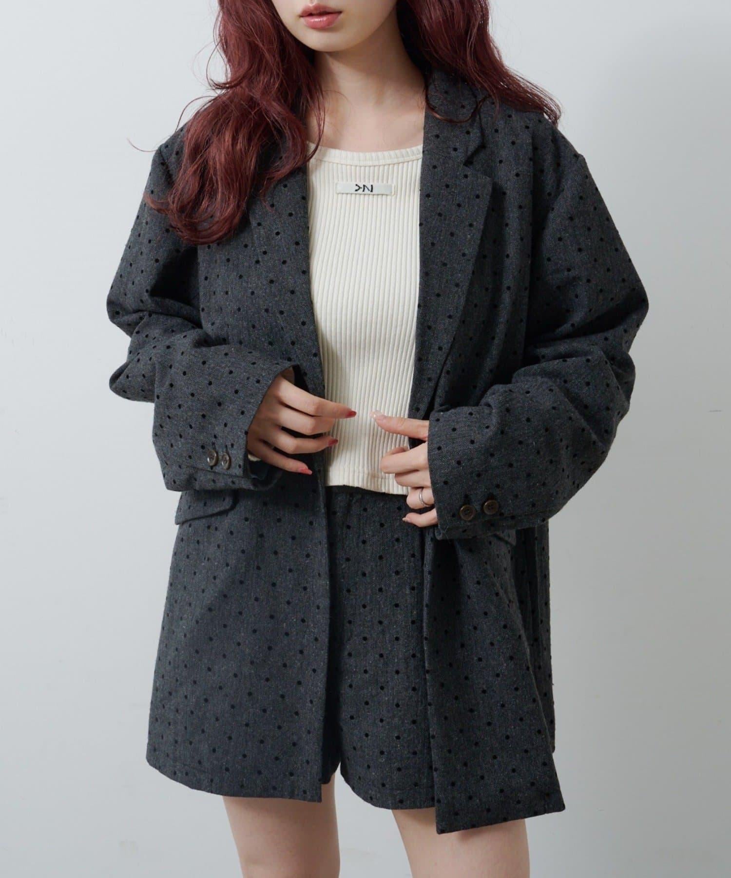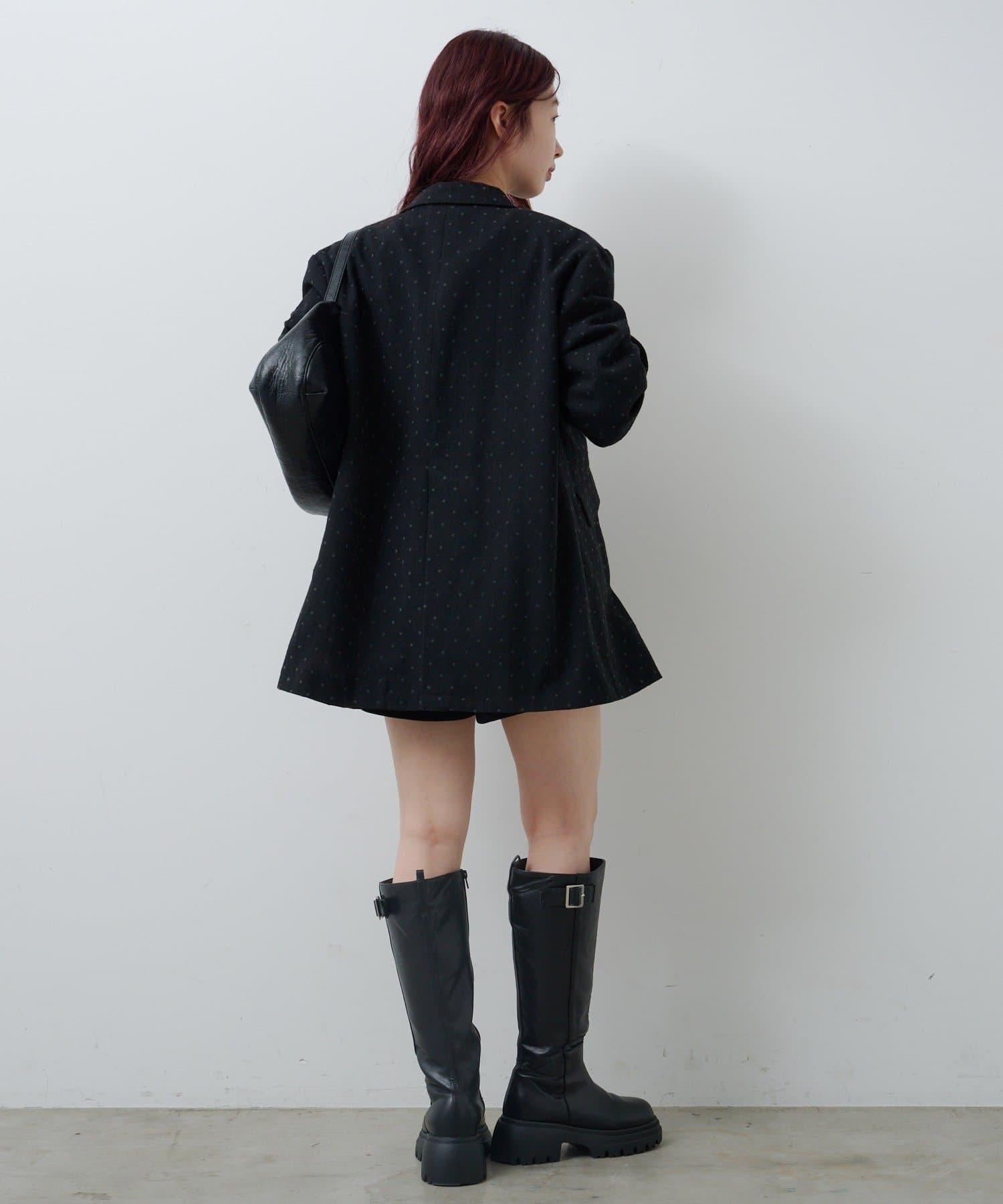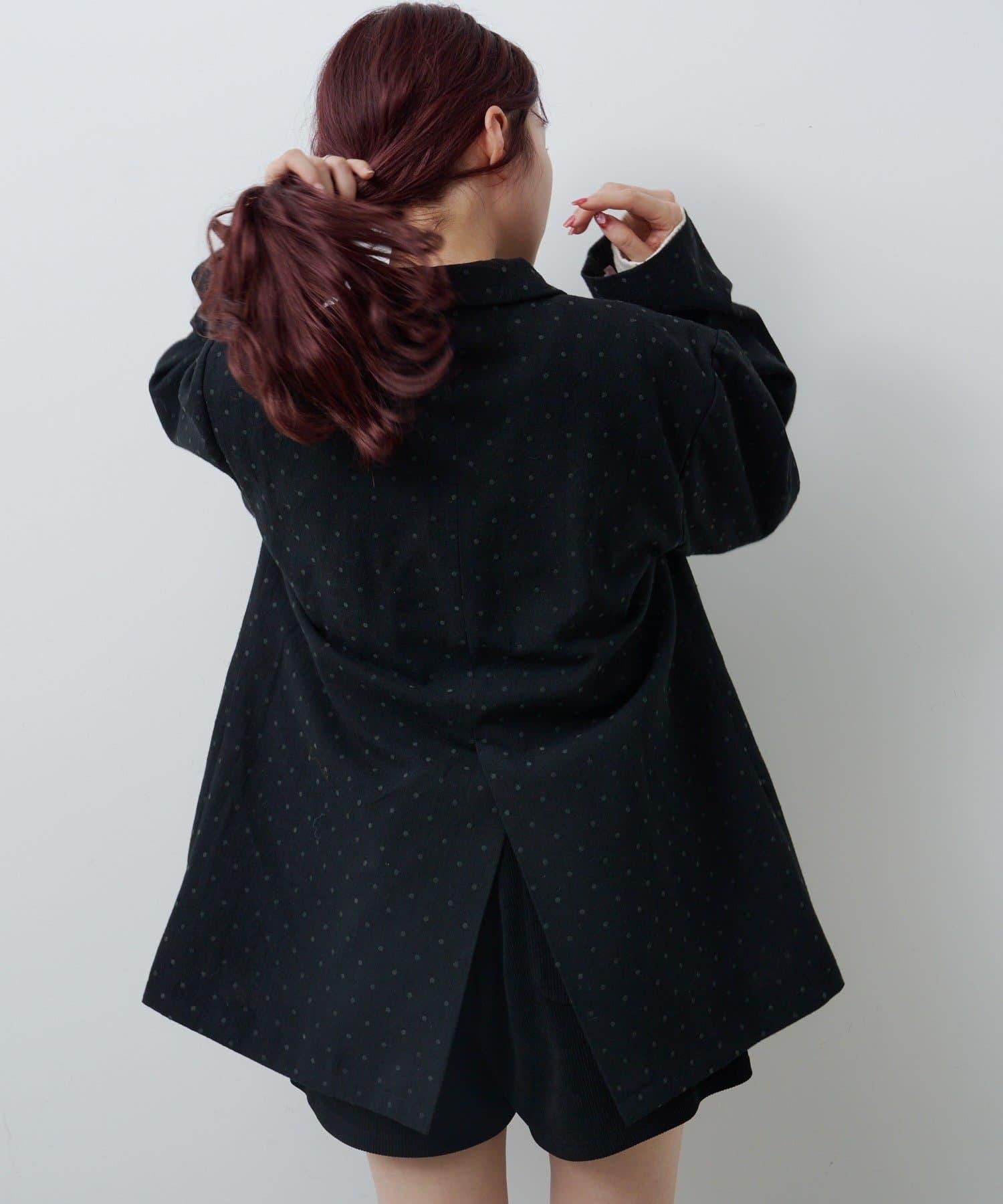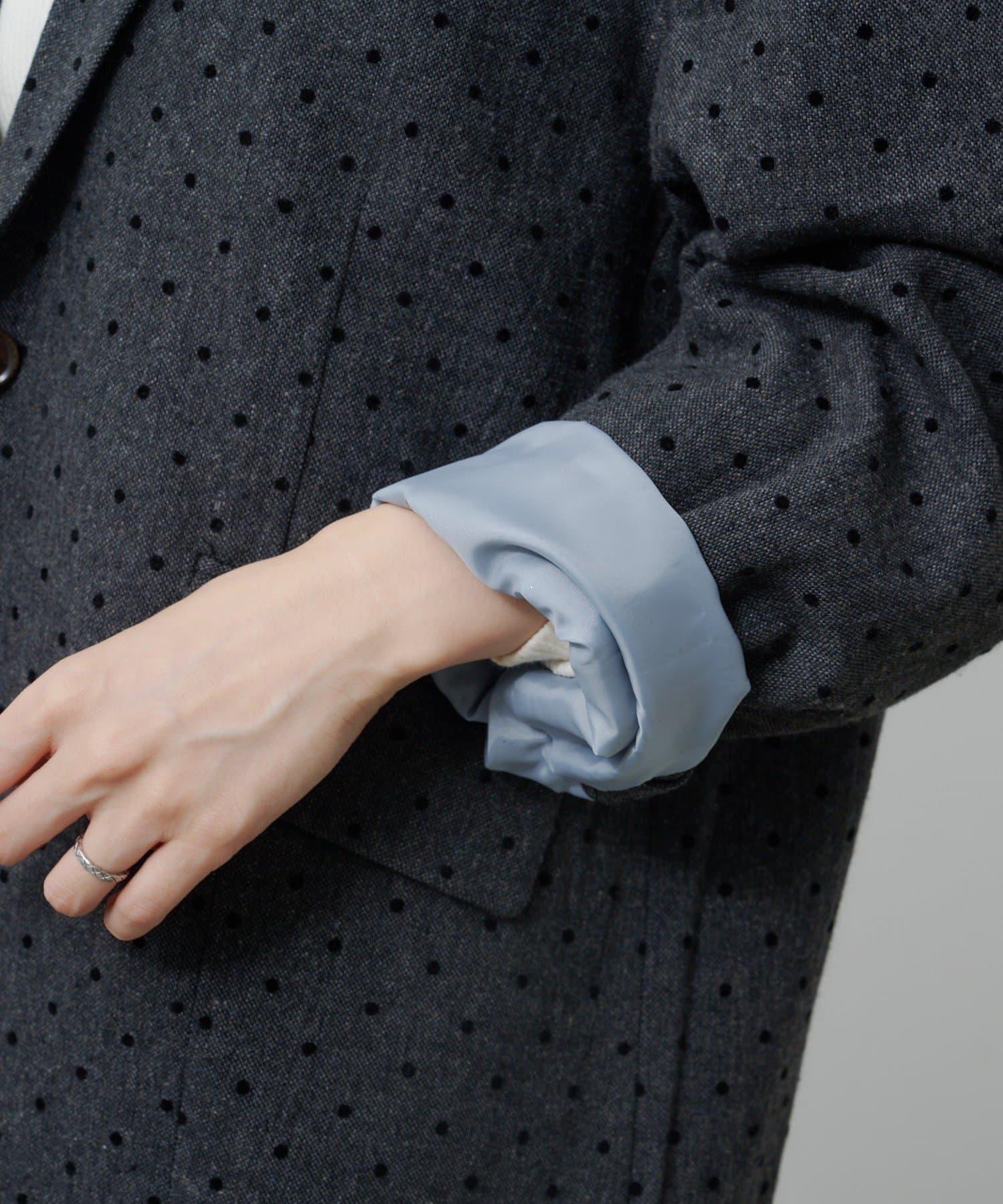 點狀圖案為男性化的剪裁設計增添了女性的柔美。