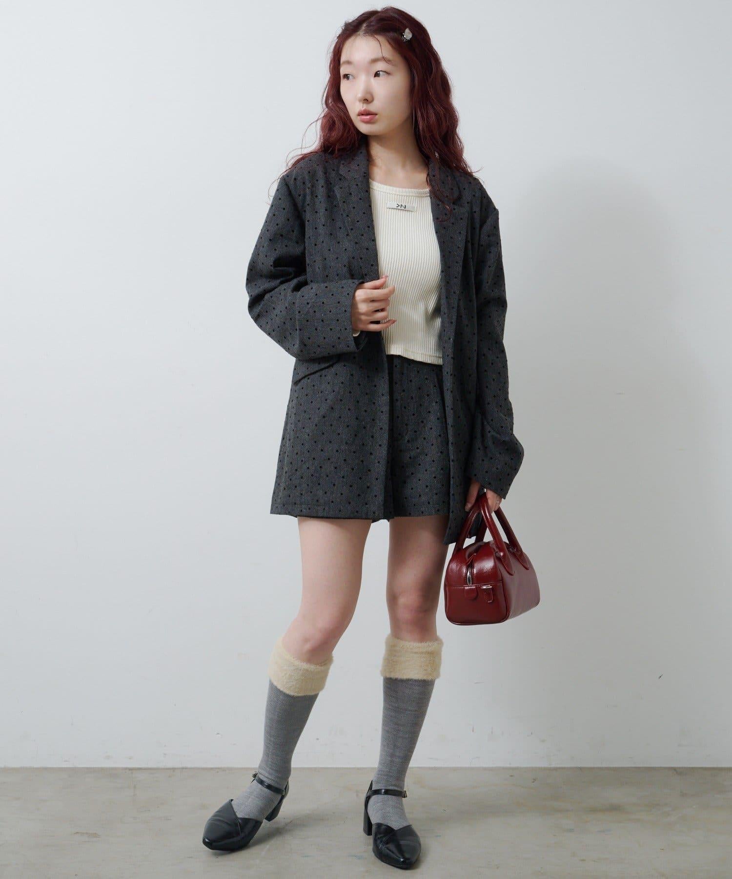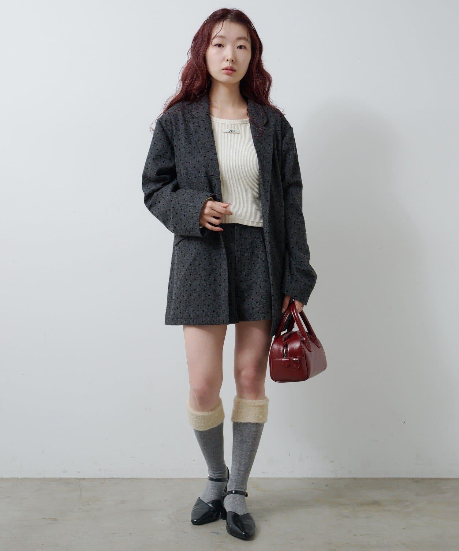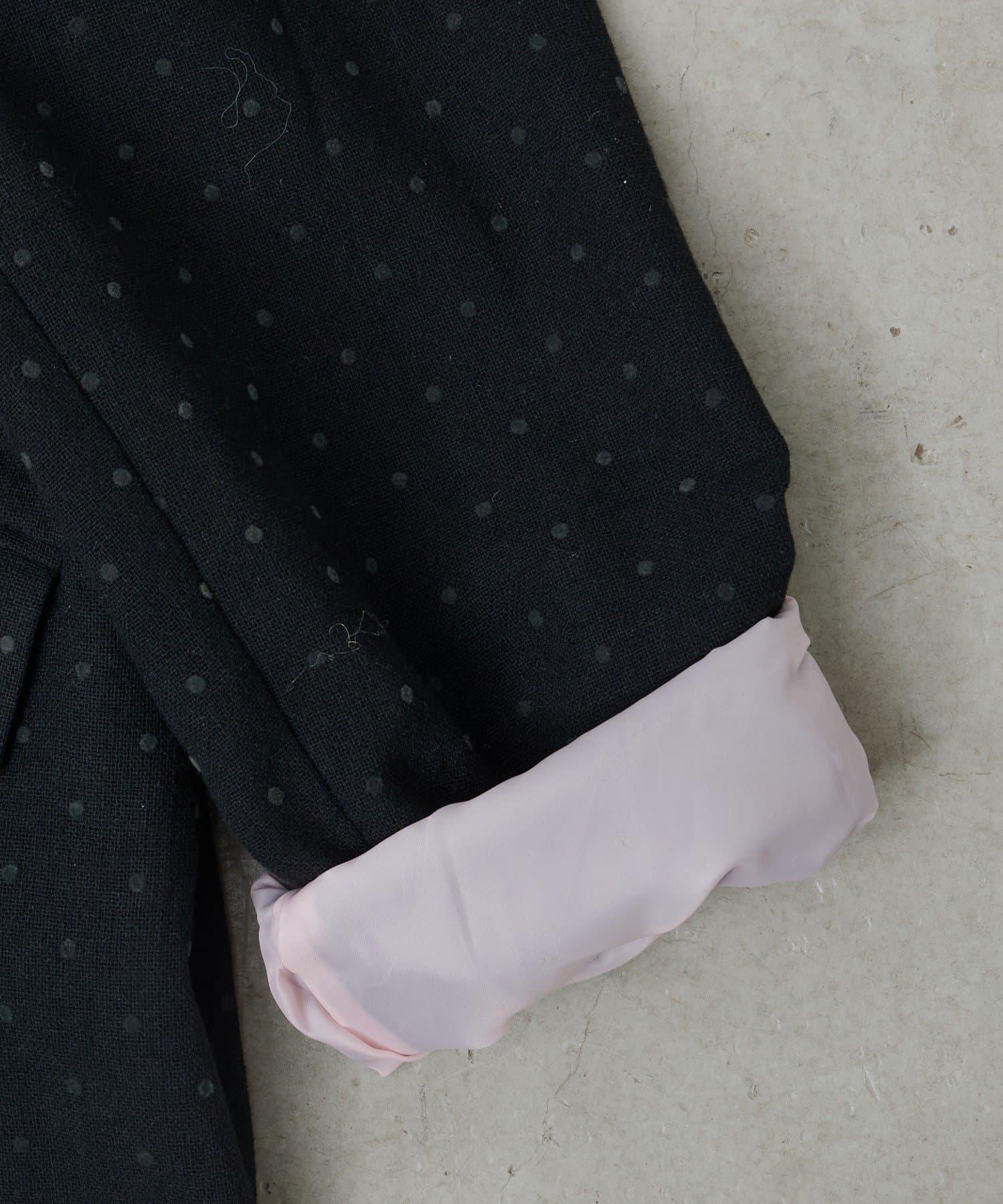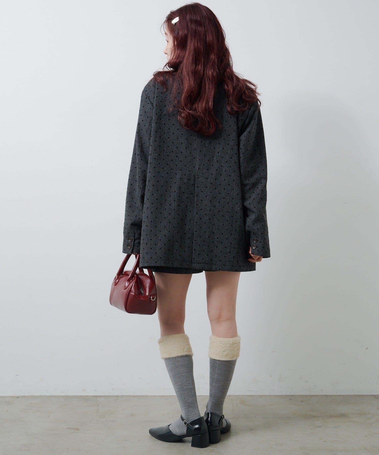點狀圖案為男性化的剪裁設計增添了女性的柔美。