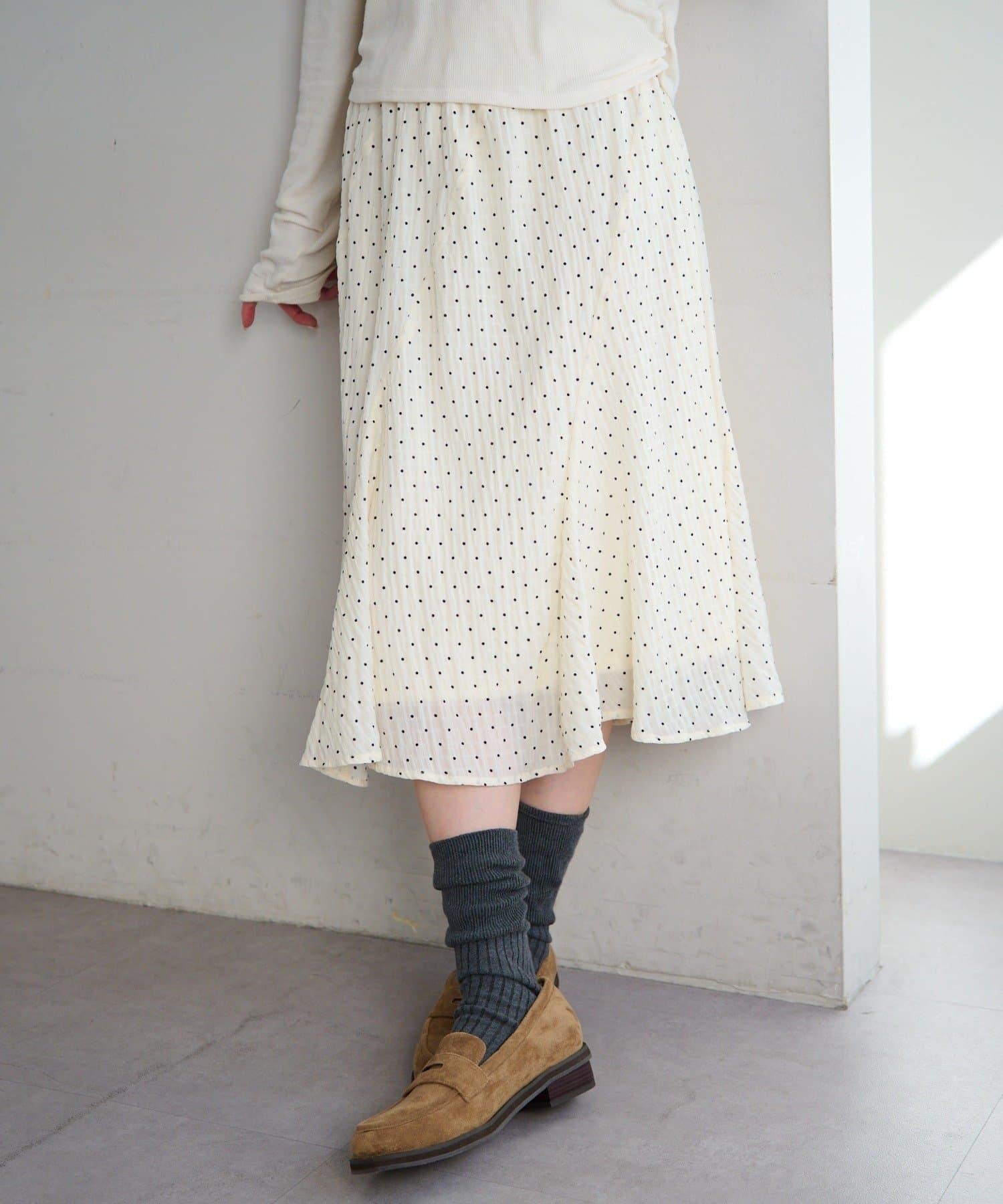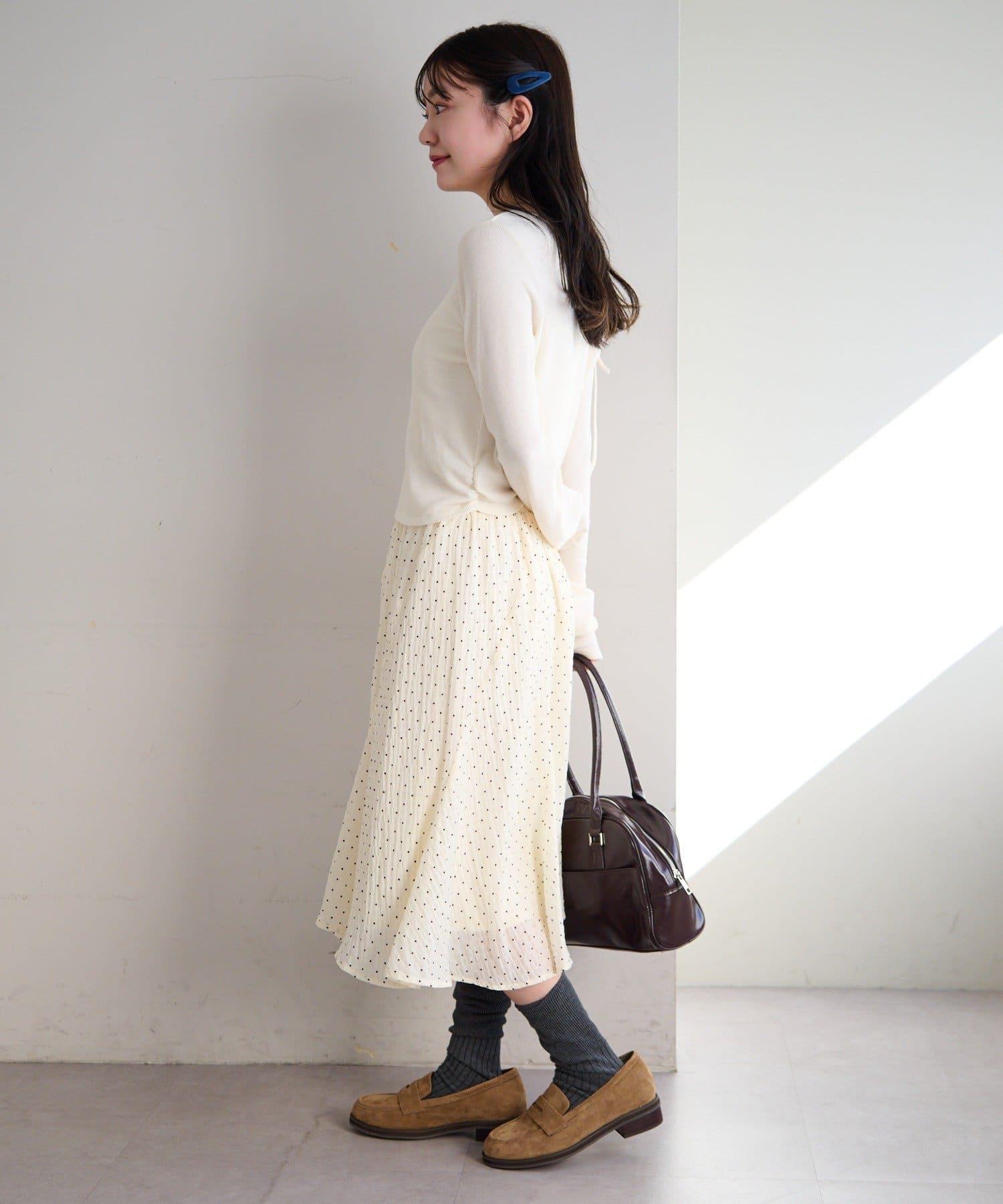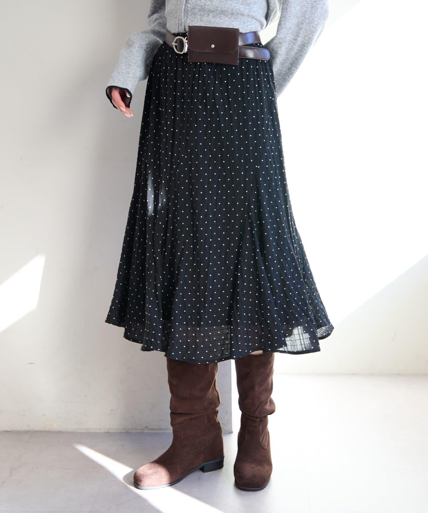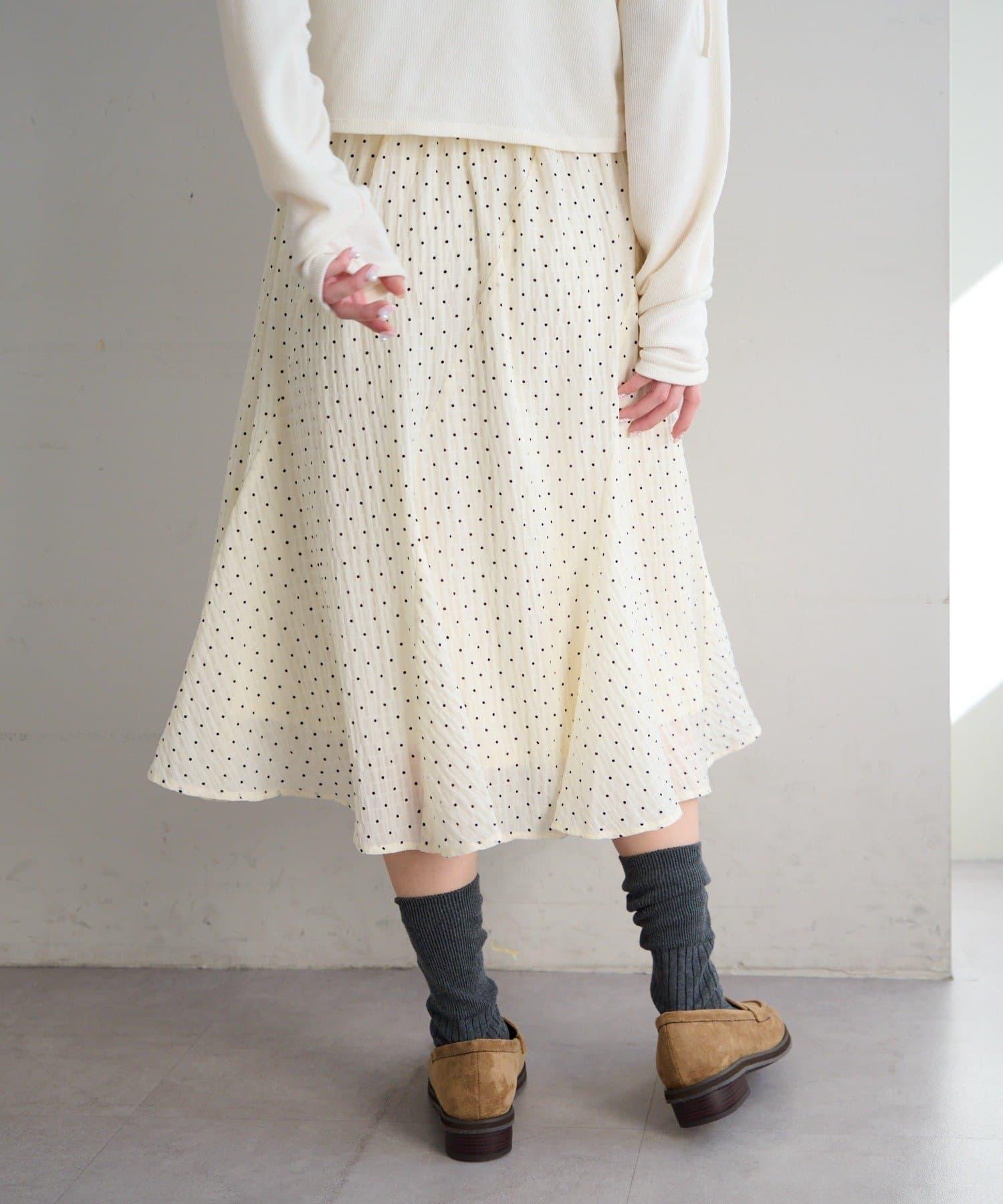 這款薄紗中裙採用基本的圓點圖案,春夏兩季均可穿著,也適合長季節穿著。