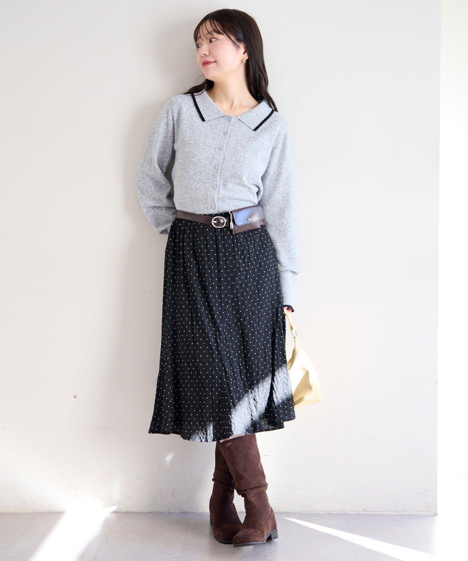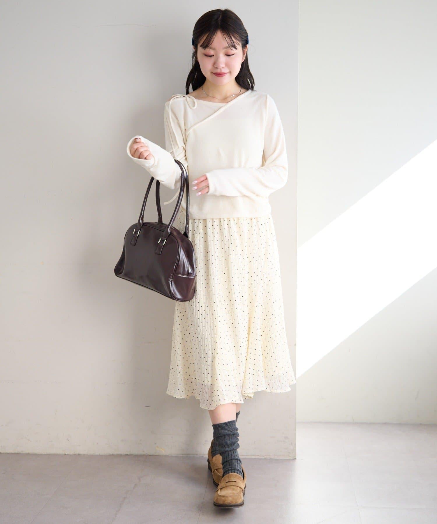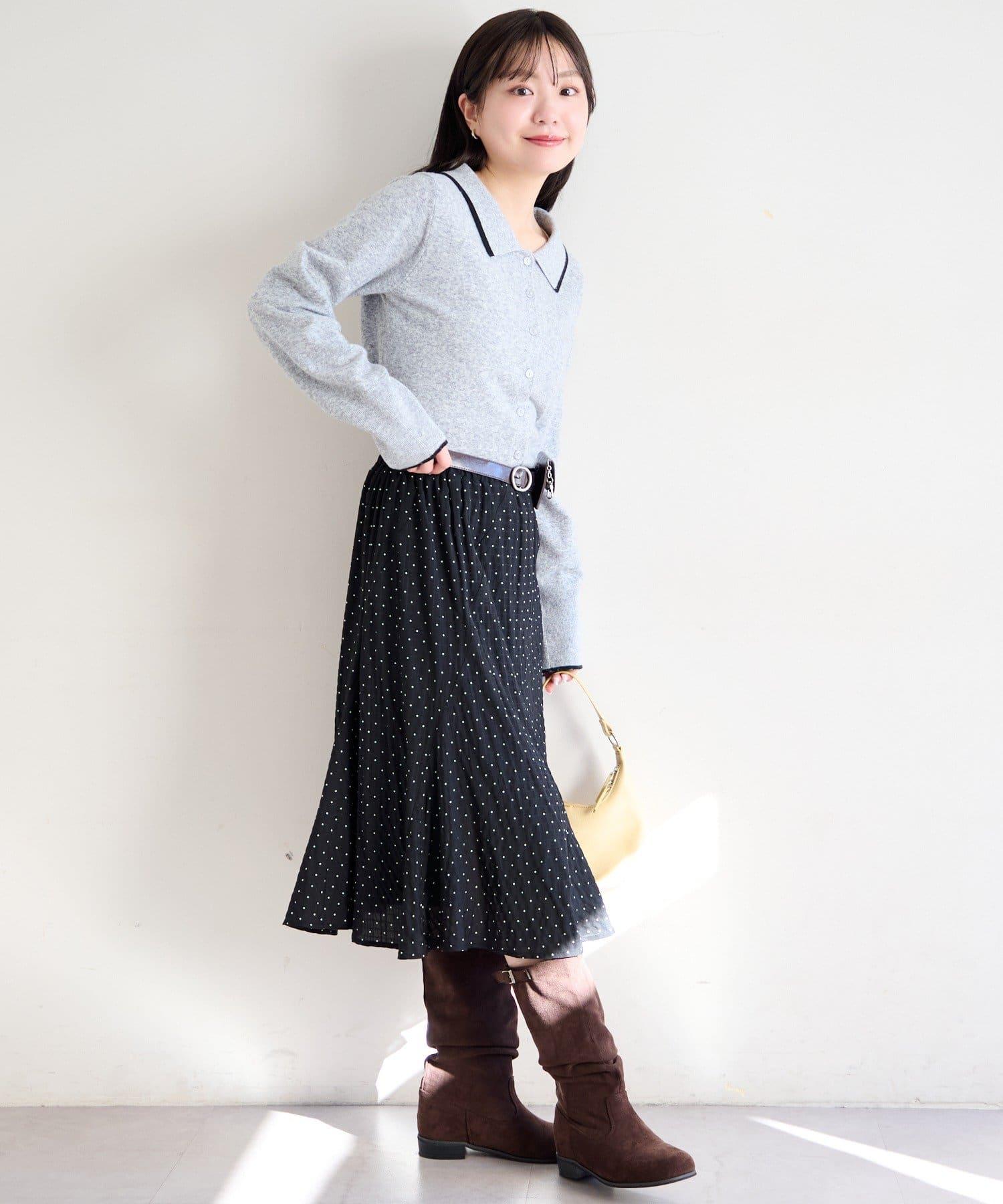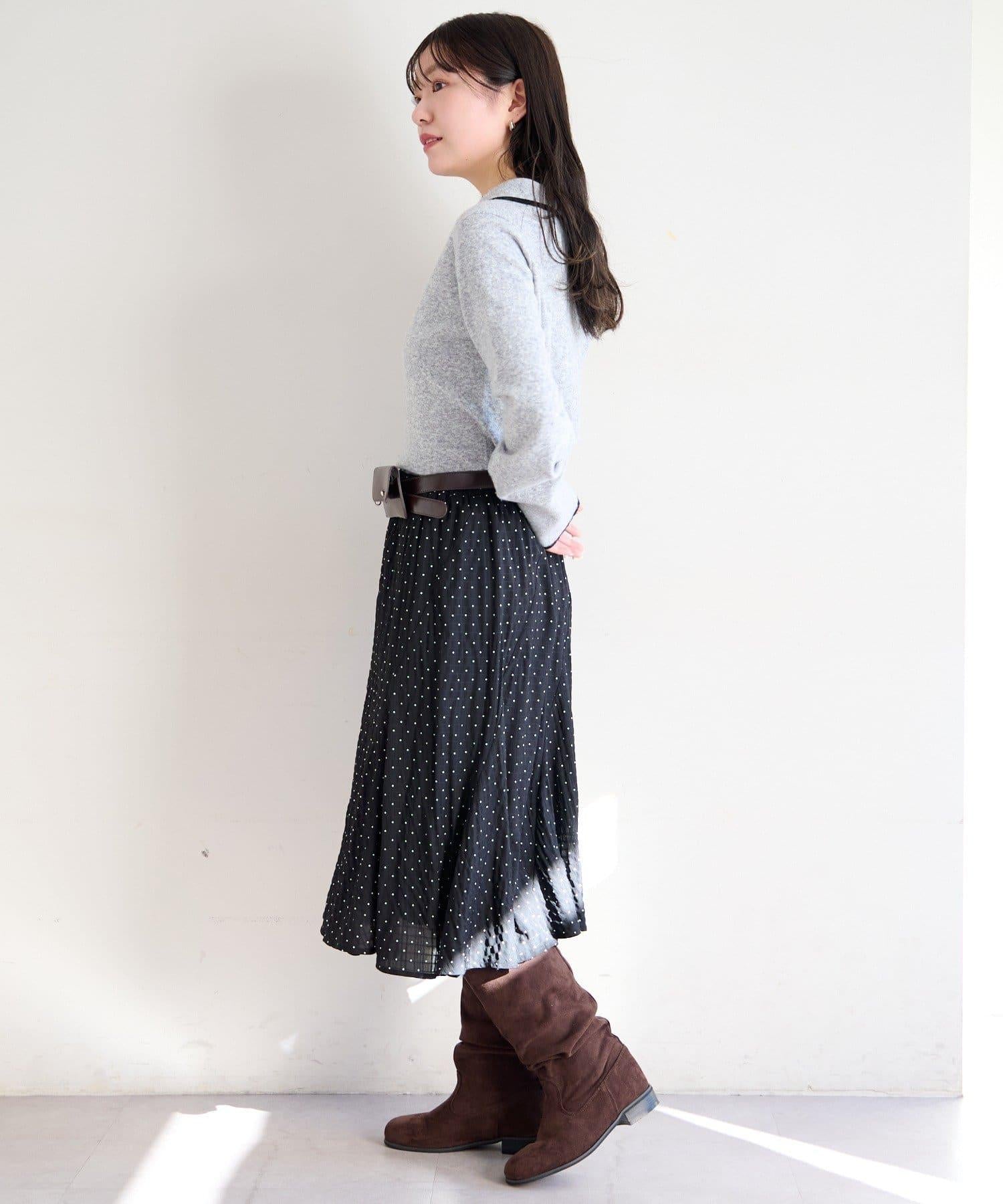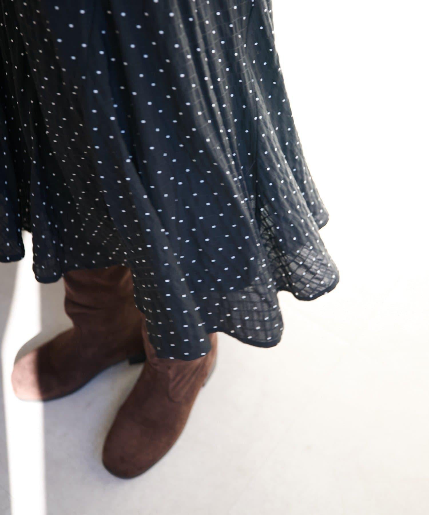 這款薄紗中裙採用基本的圓點圖案,春夏兩季均可穿著,也適合長季節穿著。