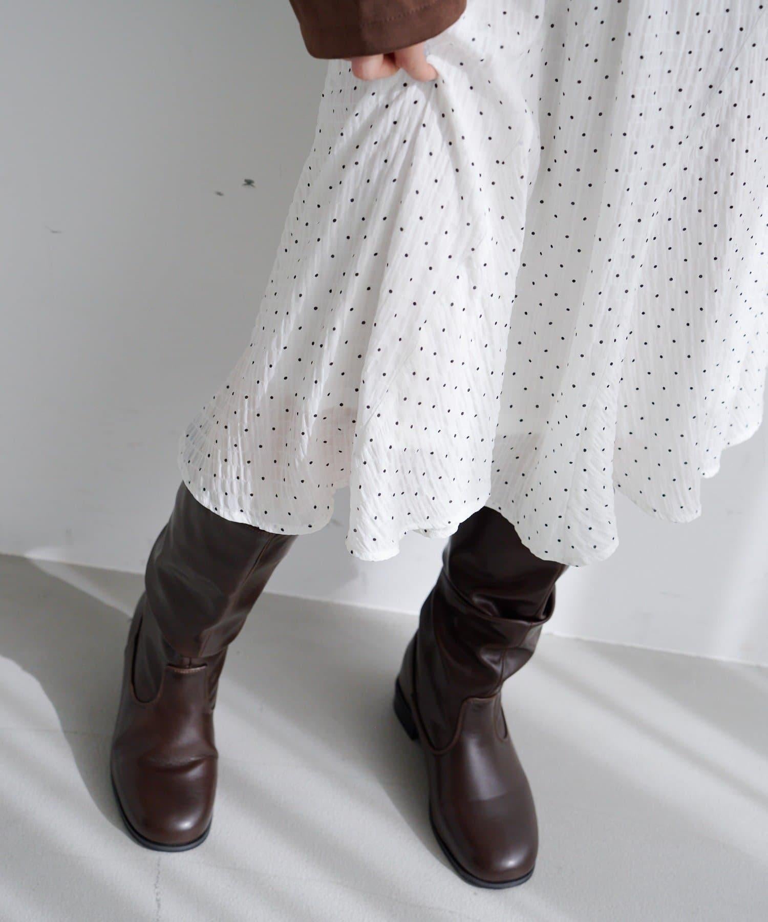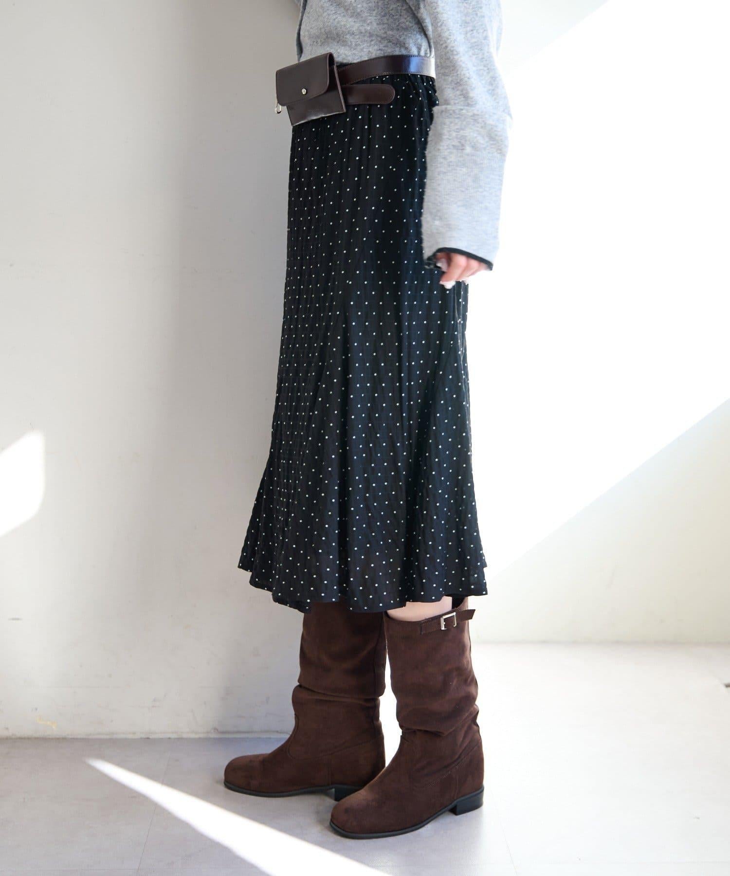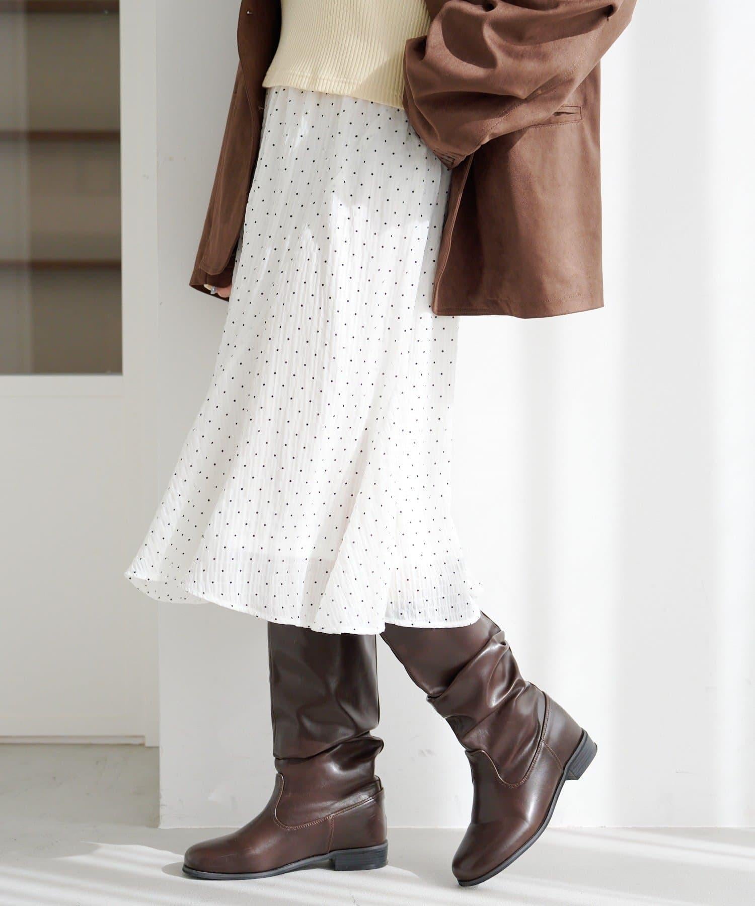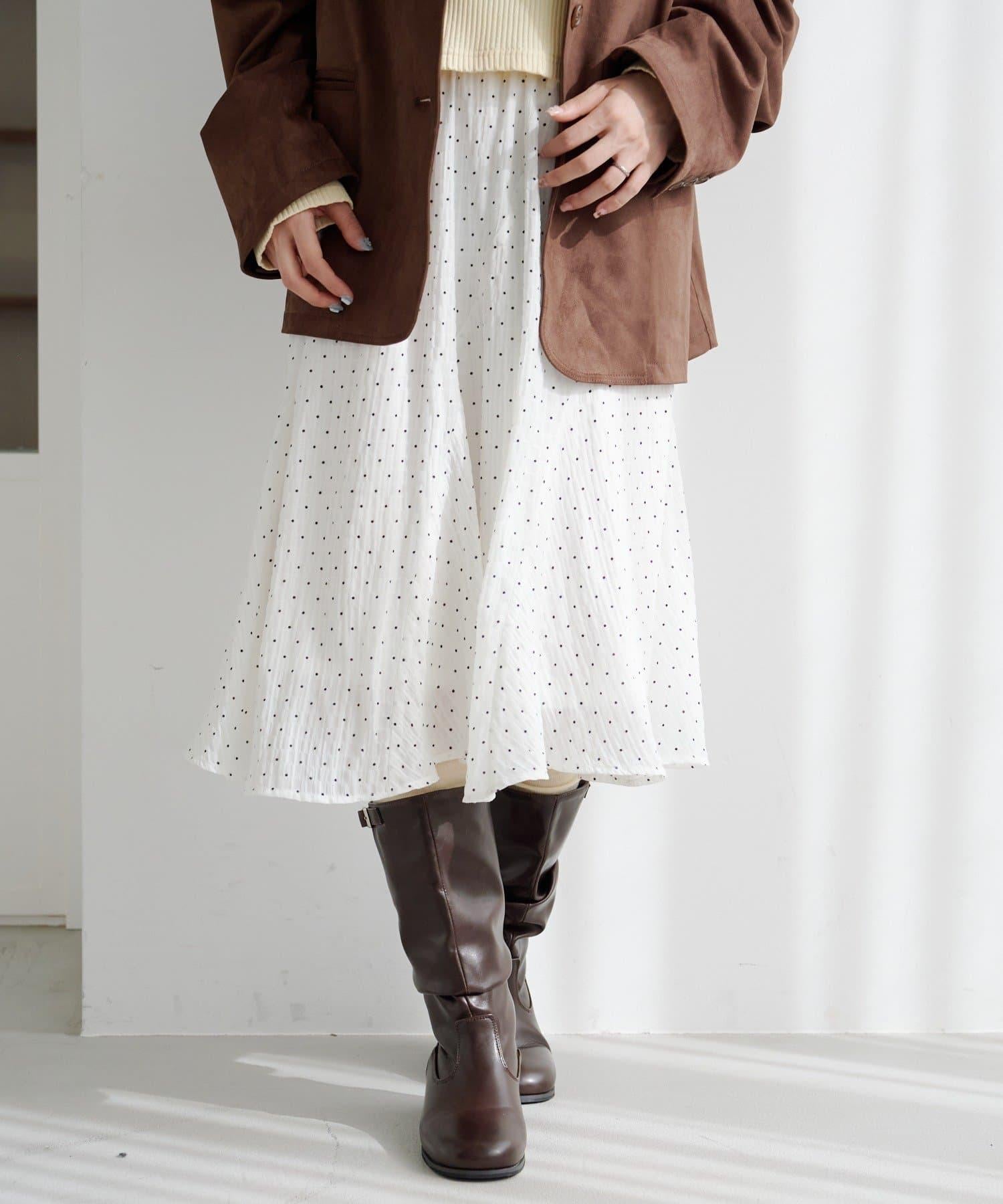 這款薄紗中裙採用基本的圓點圖案,春夏兩季均可穿著,也適合長季節穿著。