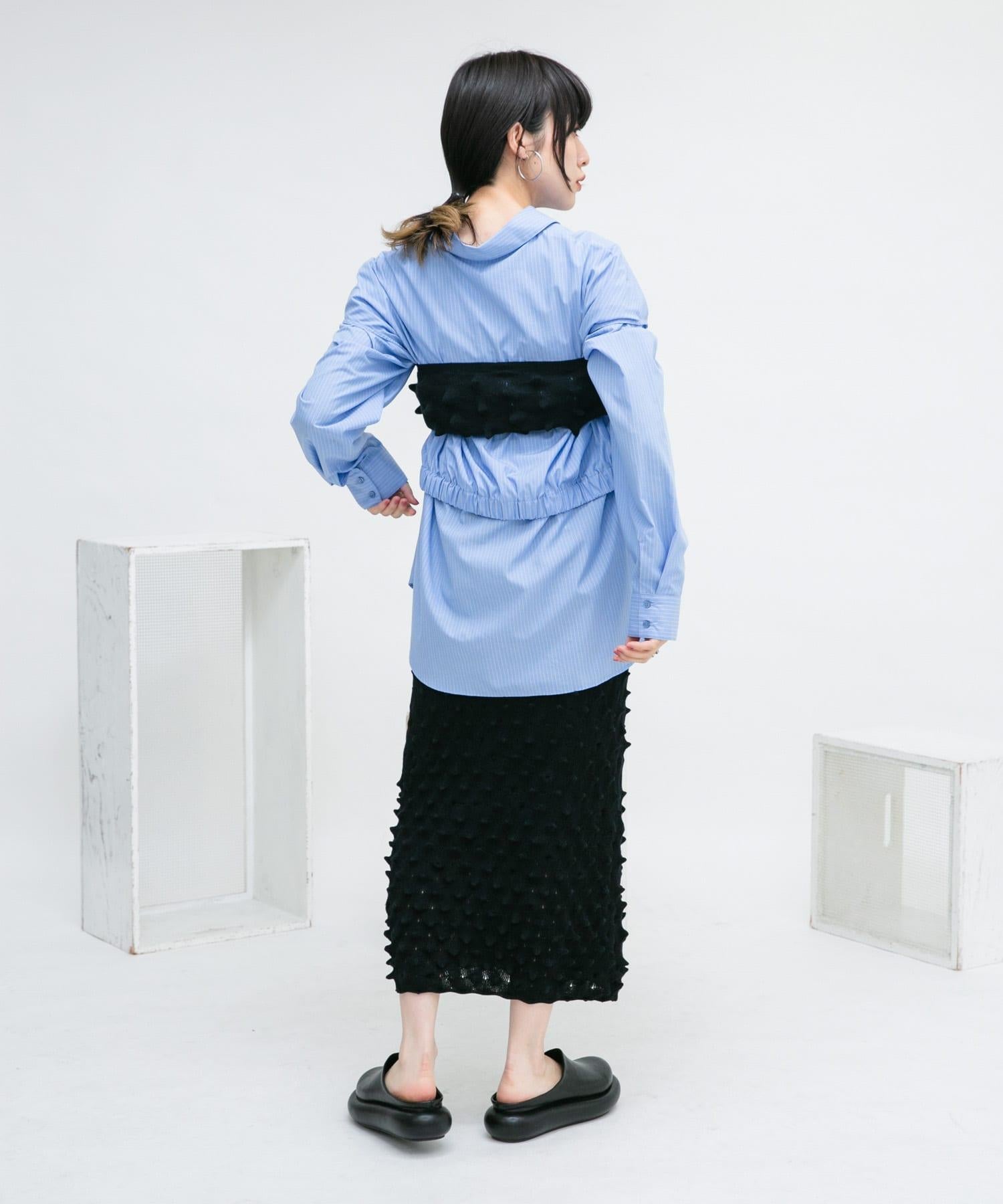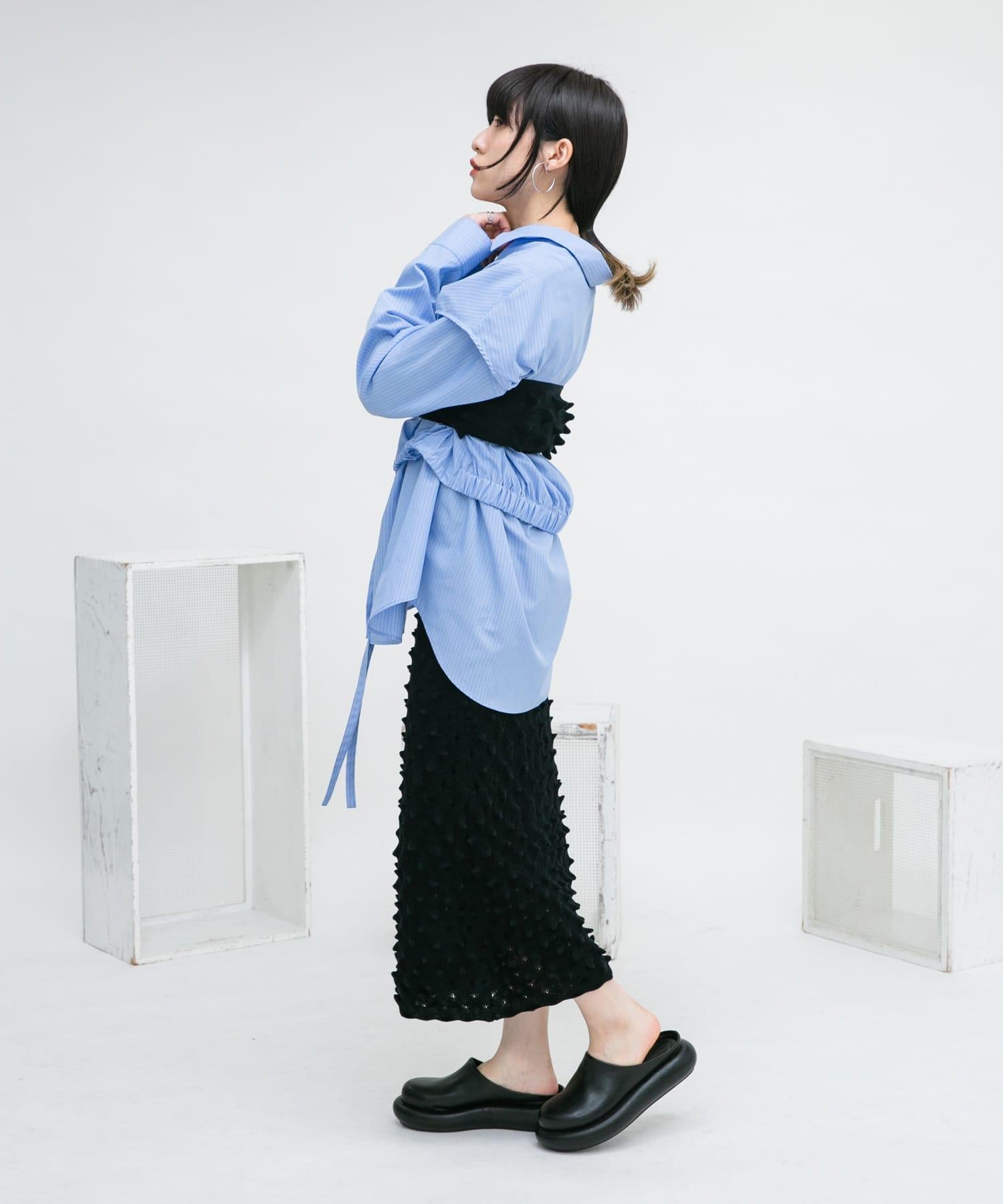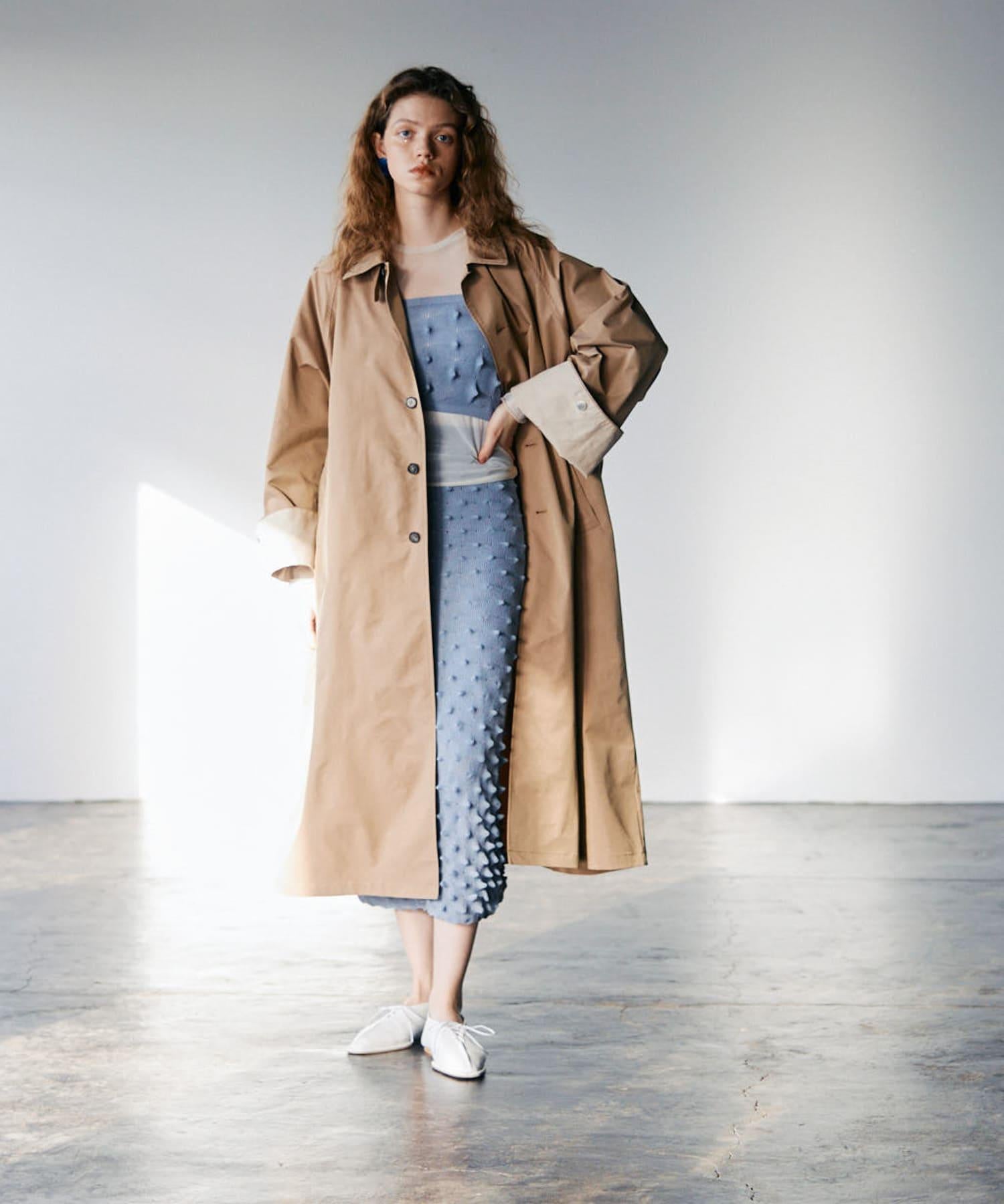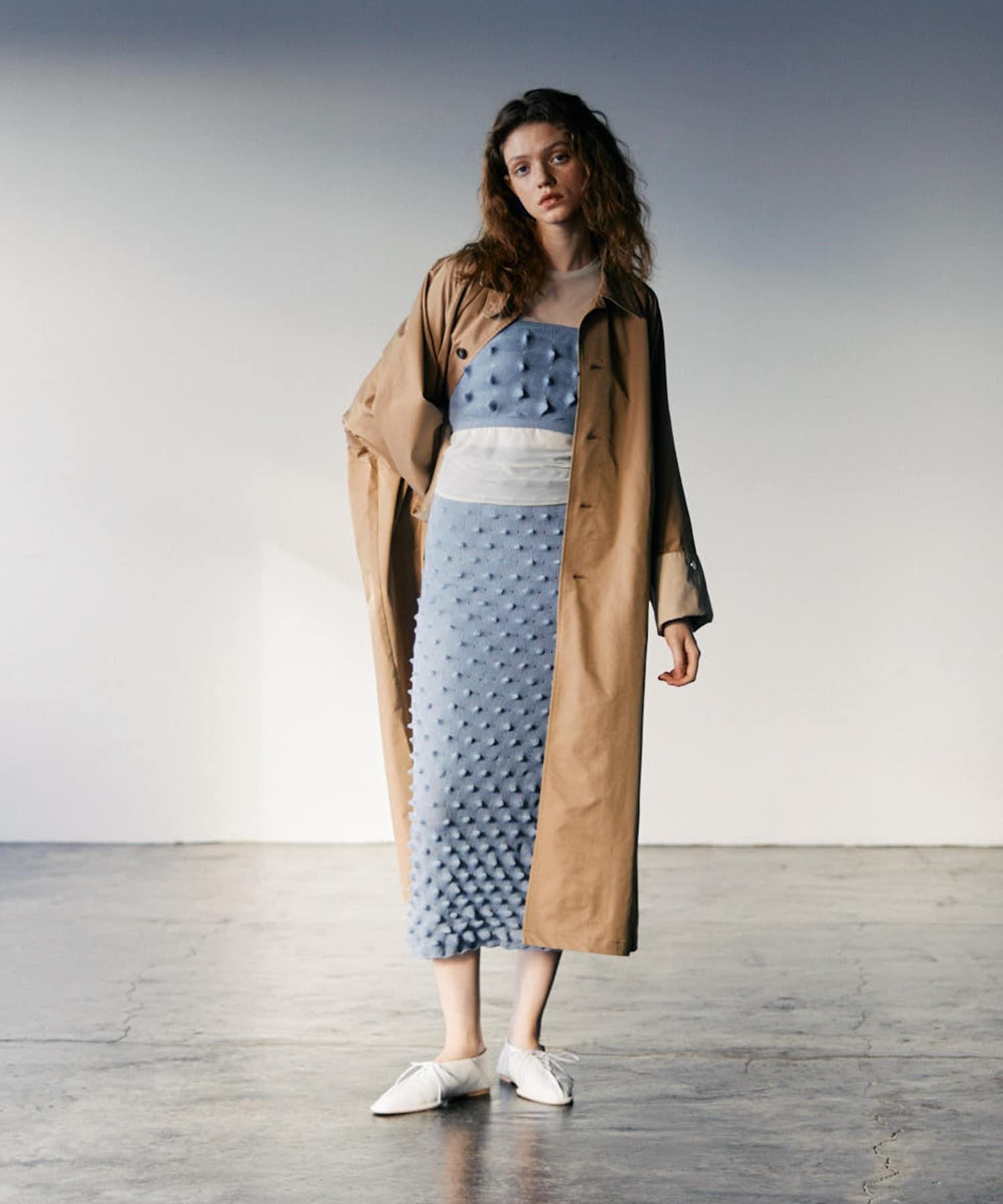 這款針織半身裙採用 pokopoko 立體針織面料,增強了它的存在感。針織半身裙具有設計感,穿上它就會顯得非常時尚。建議作為簡單搭配的補充單品。