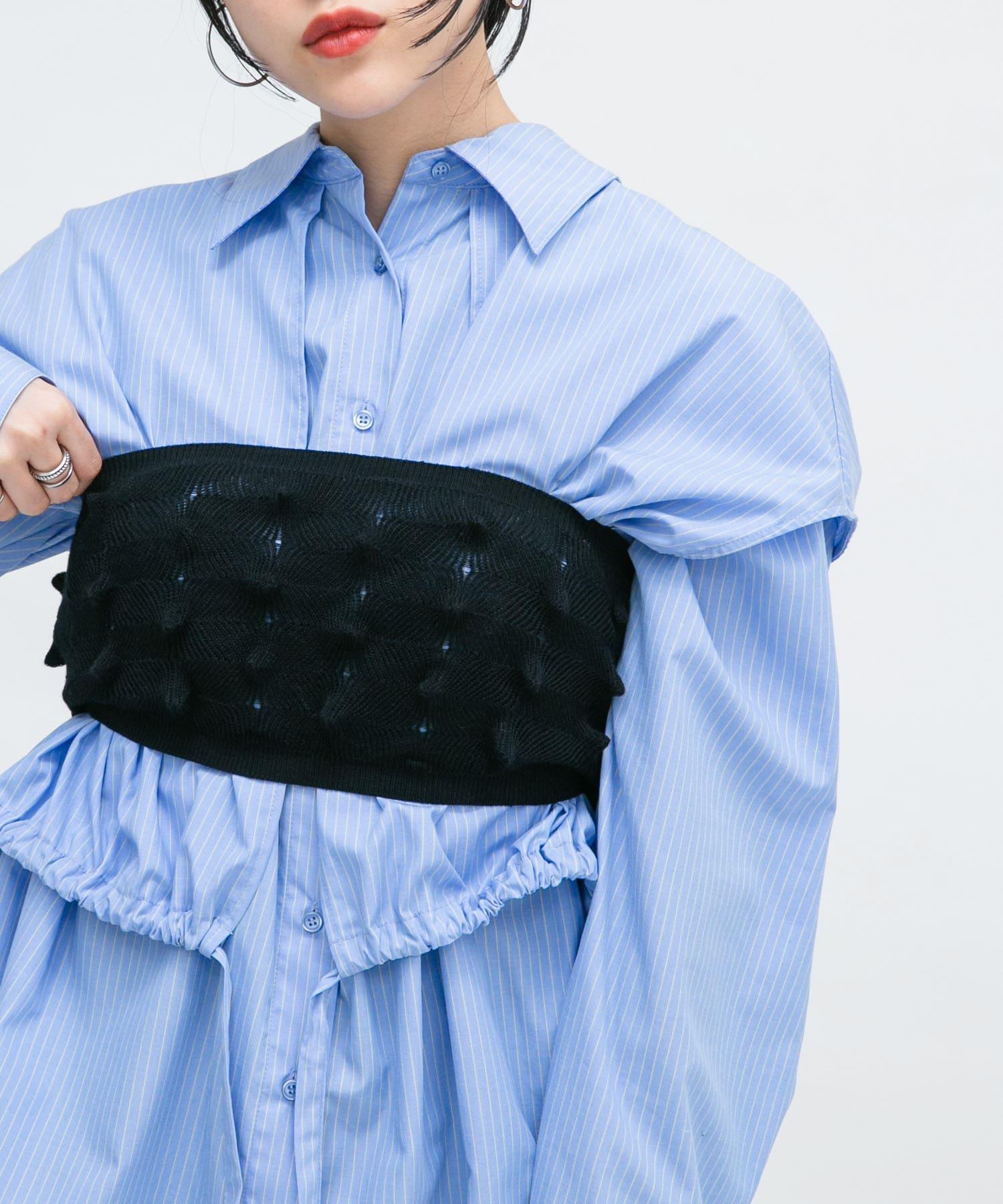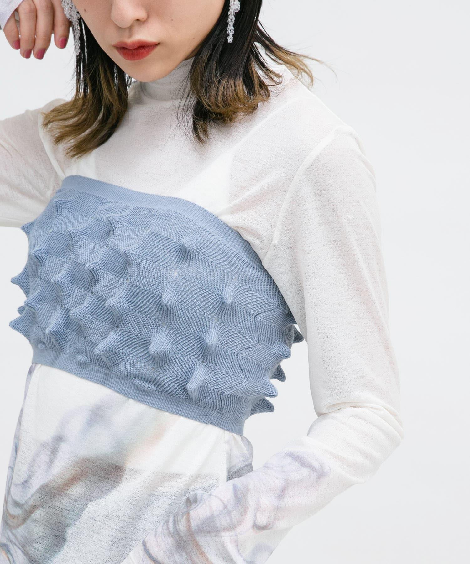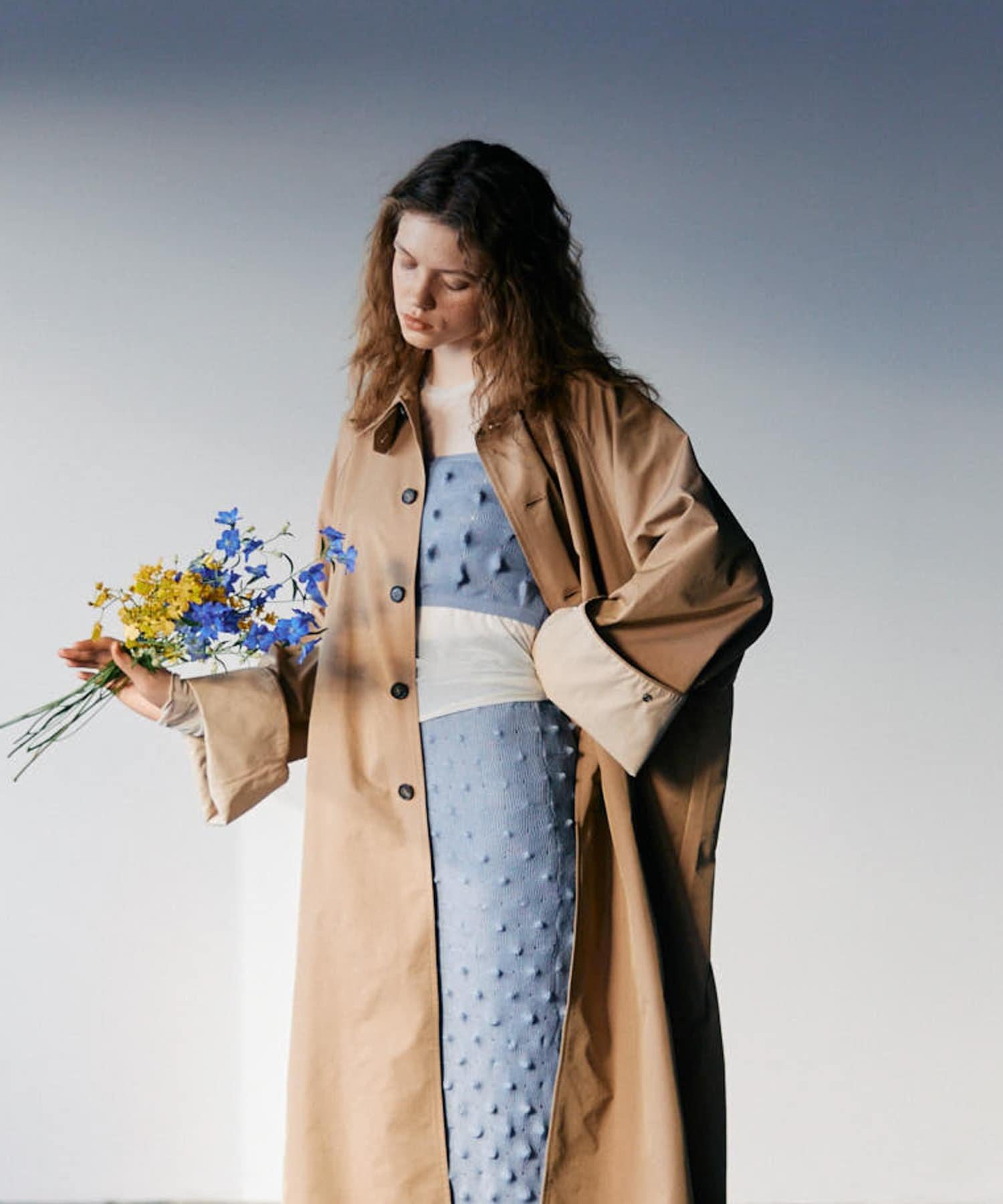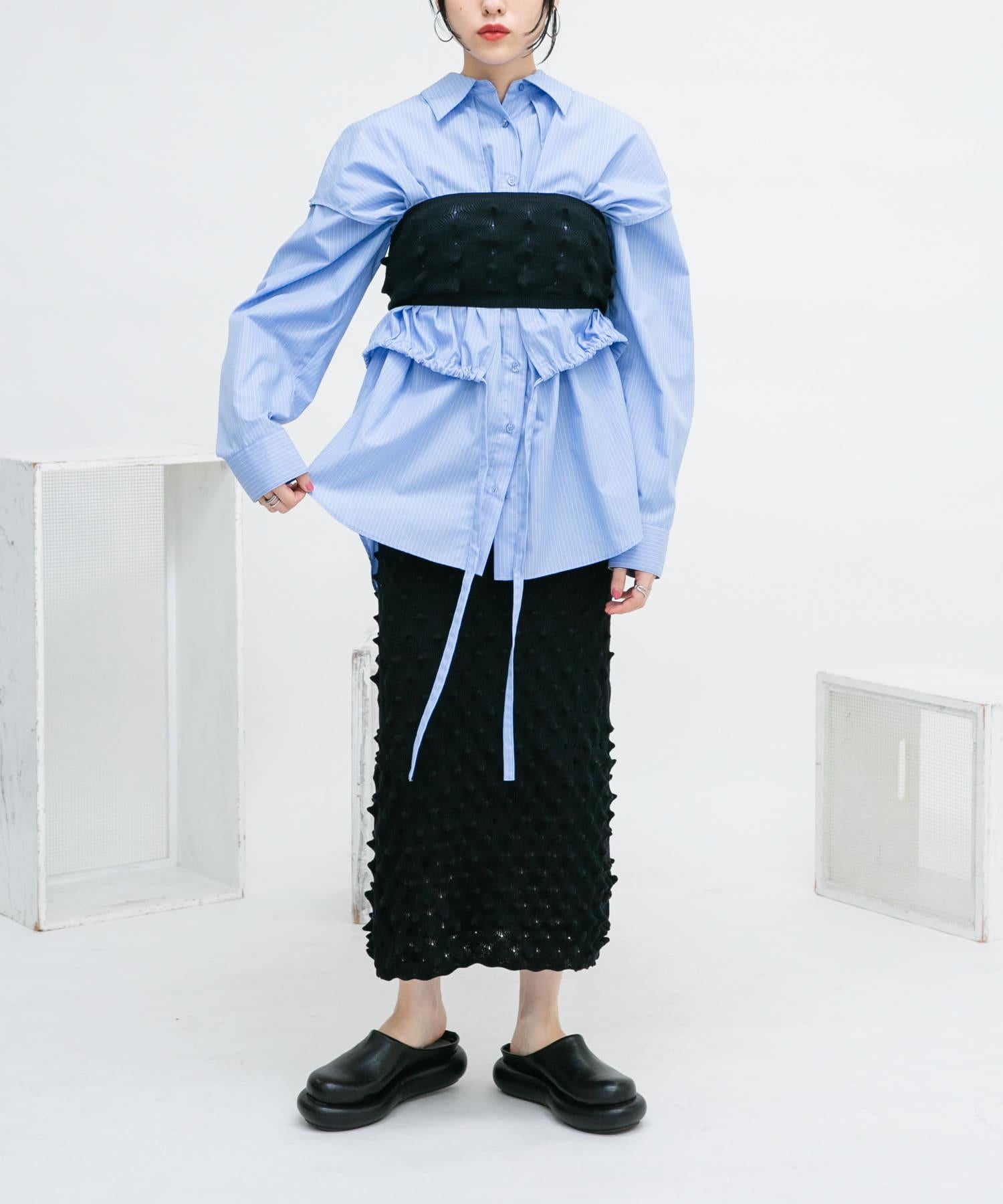 這款針織半身裙採用 pokopoko 立體針織面料,增強了它的存在感。針織半身裙具有設計感,穿上它就會顯得非常時尚。建議作為簡單搭配的補充單品。