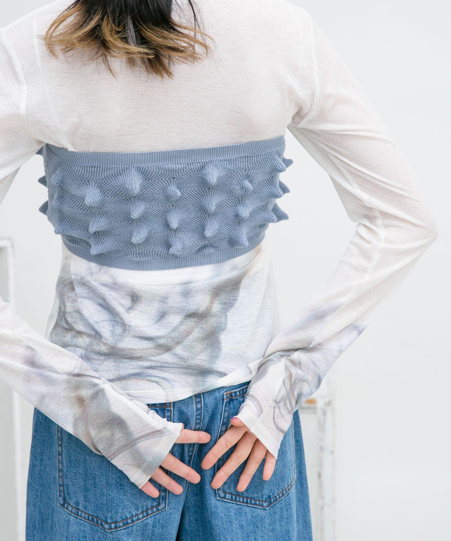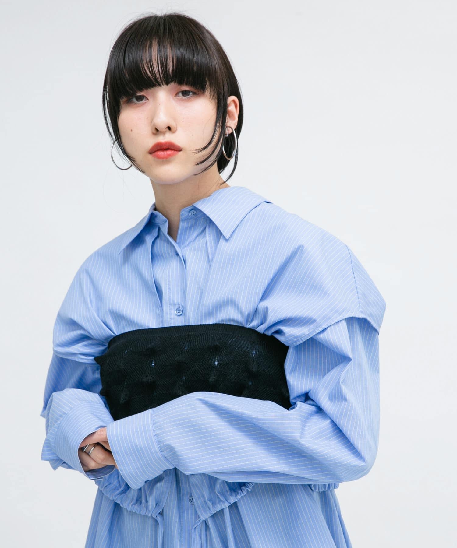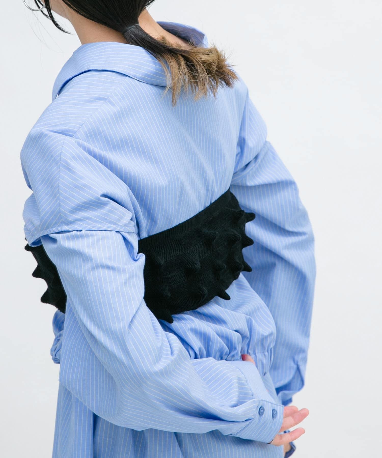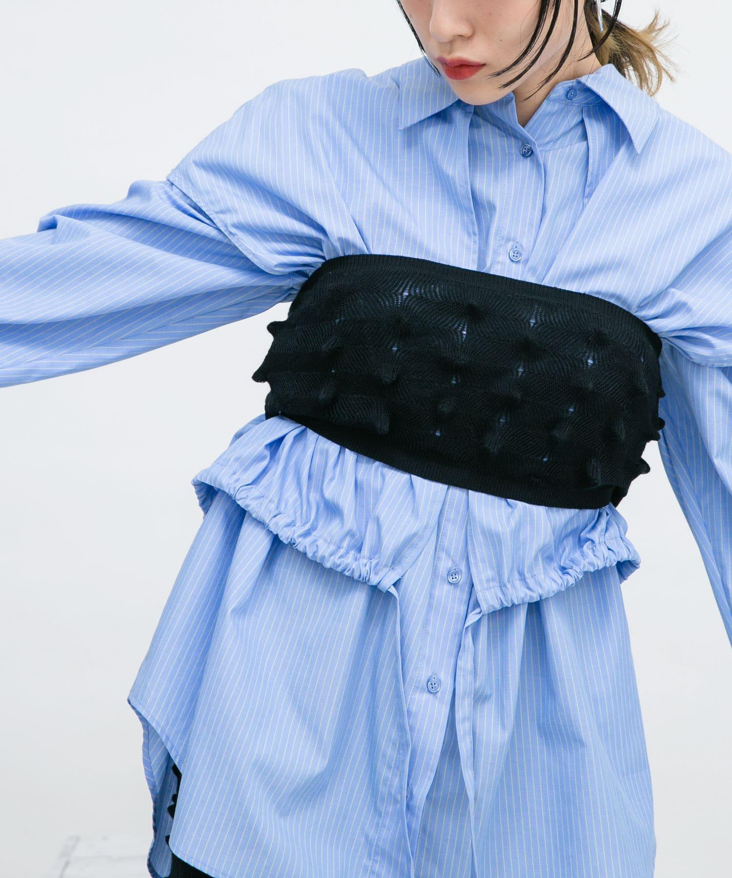 這款針織半身裙採用 pokopoko 立體針織面料,增強了它的存在感。針織半身裙具有設計感,穿上它就會顯得非常時尚。建議作為簡單搭配的補充單品。