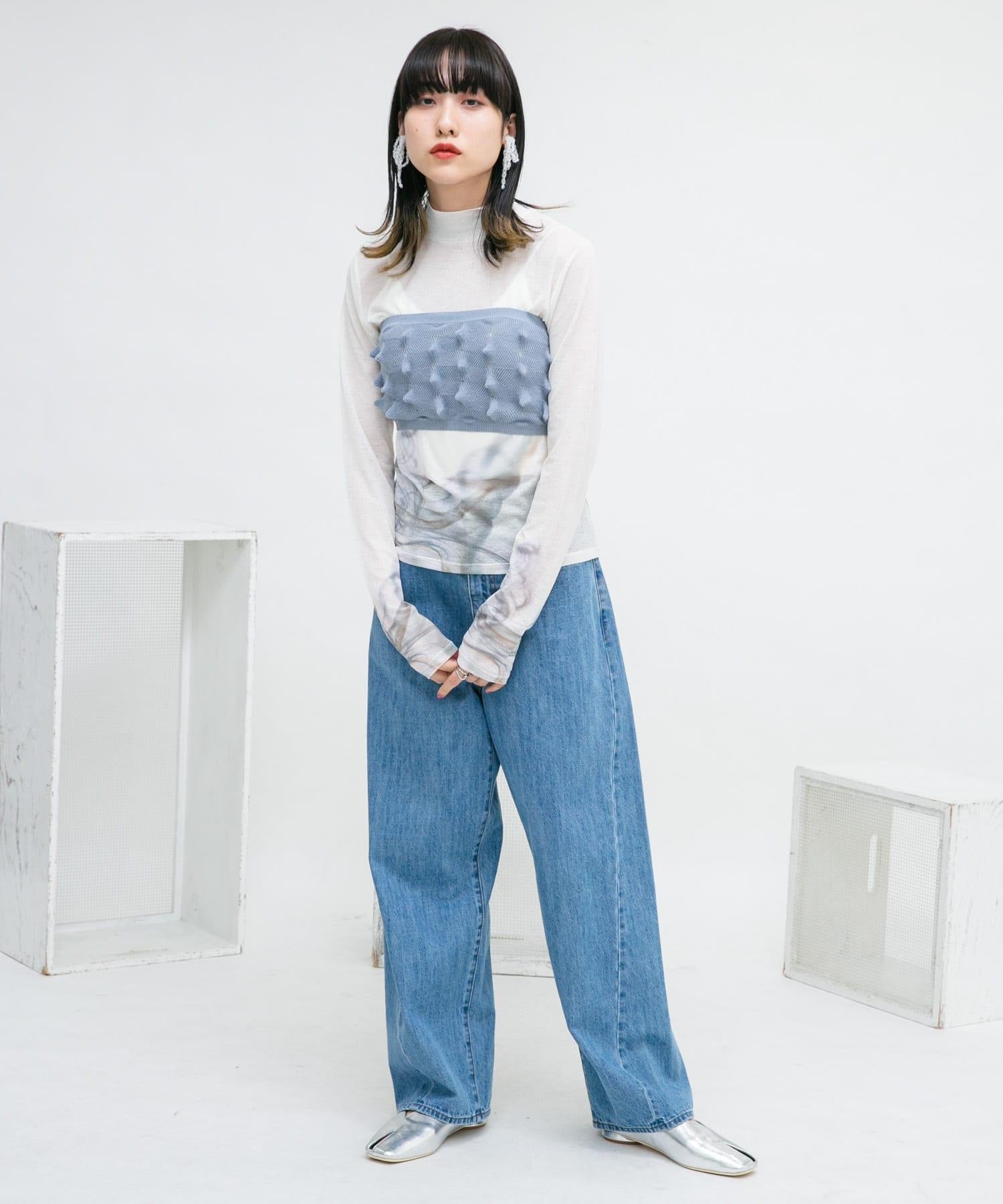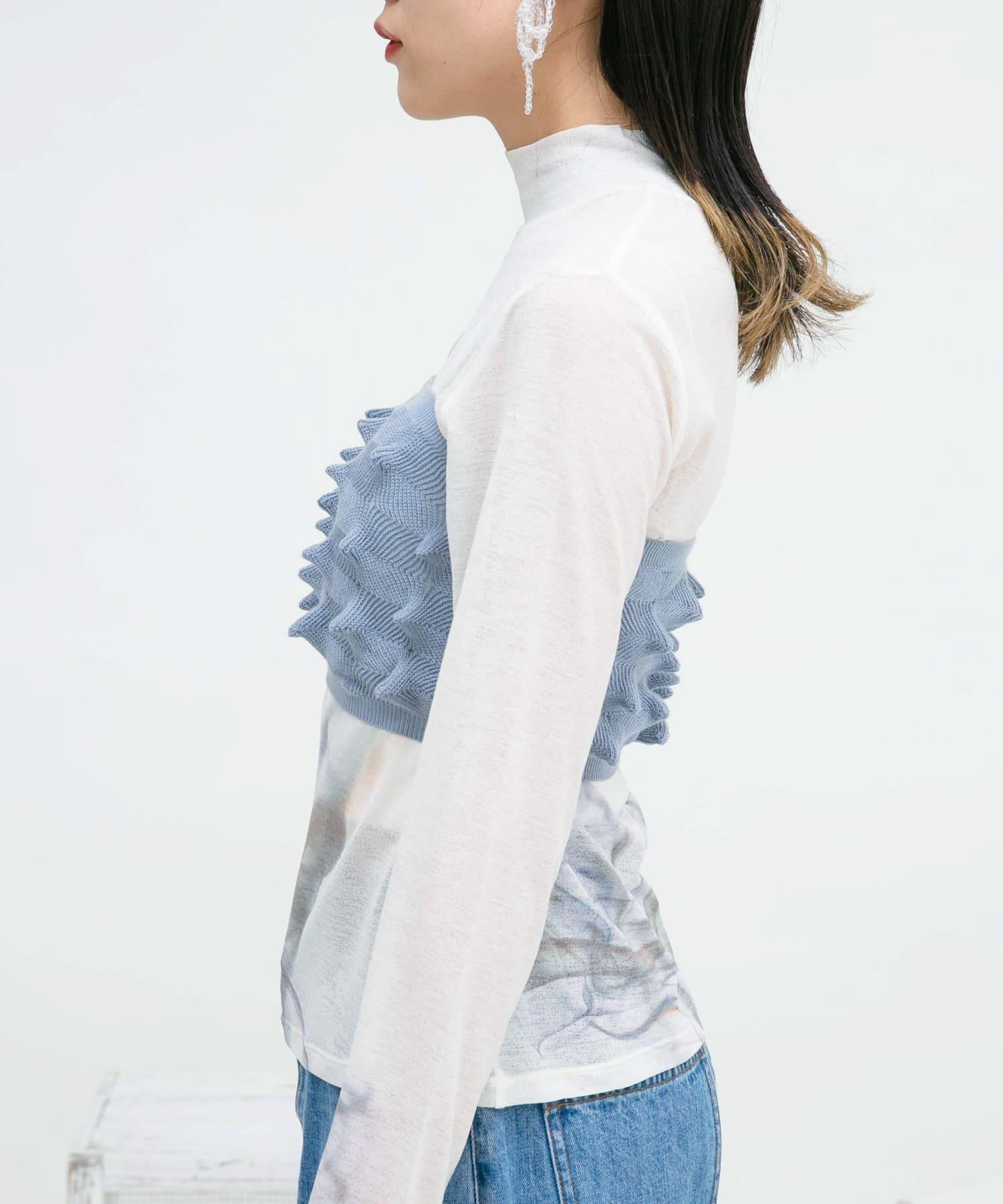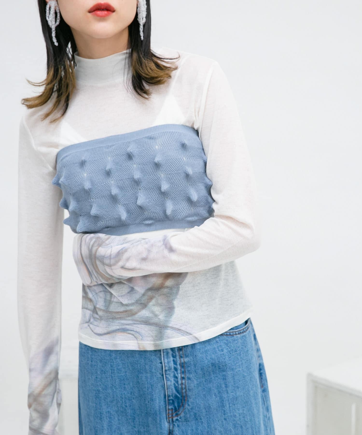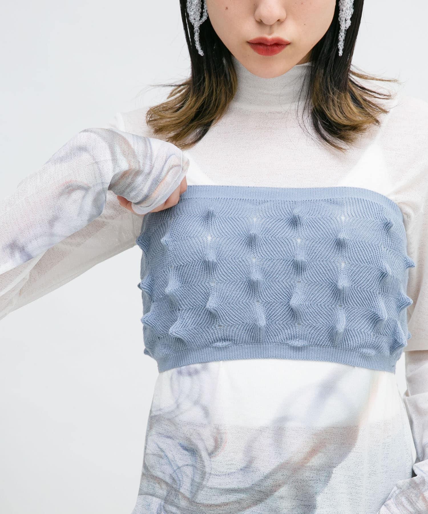 這款針織半身裙採用 pokopoko 立體針織面料,增強了它的存在感。針織半身裙具有設計感,穿上它就會顯得非常時尚。建議作為簡單搭配的補充單品。