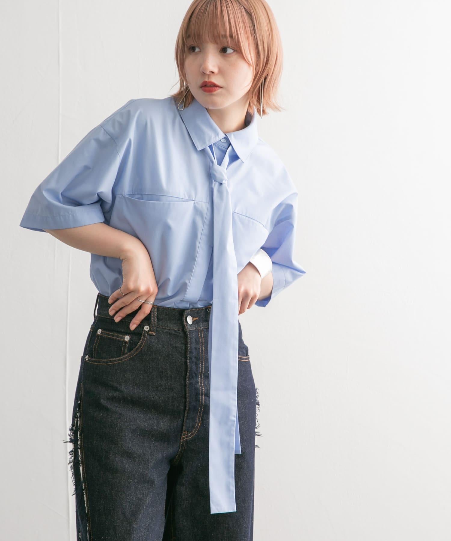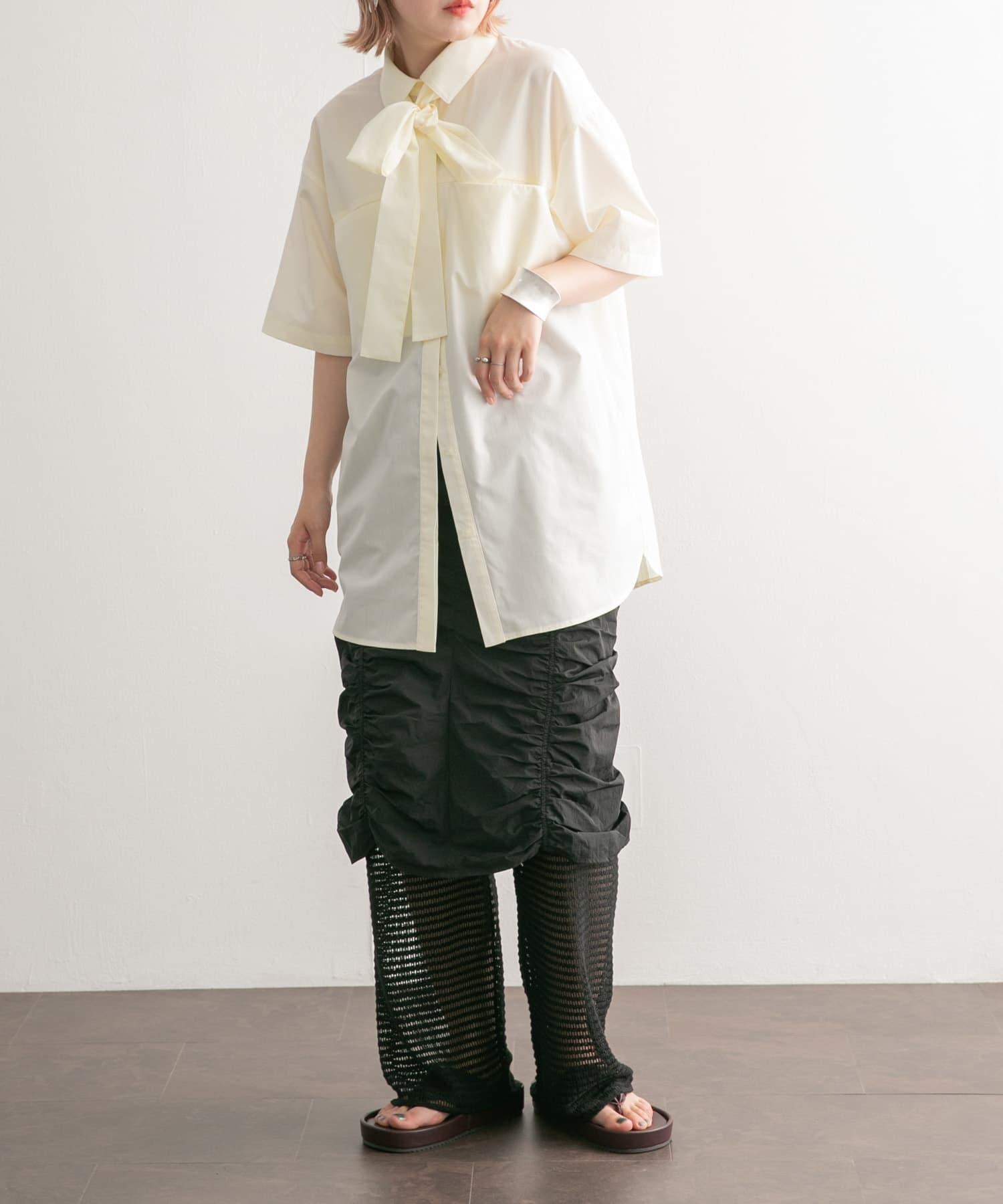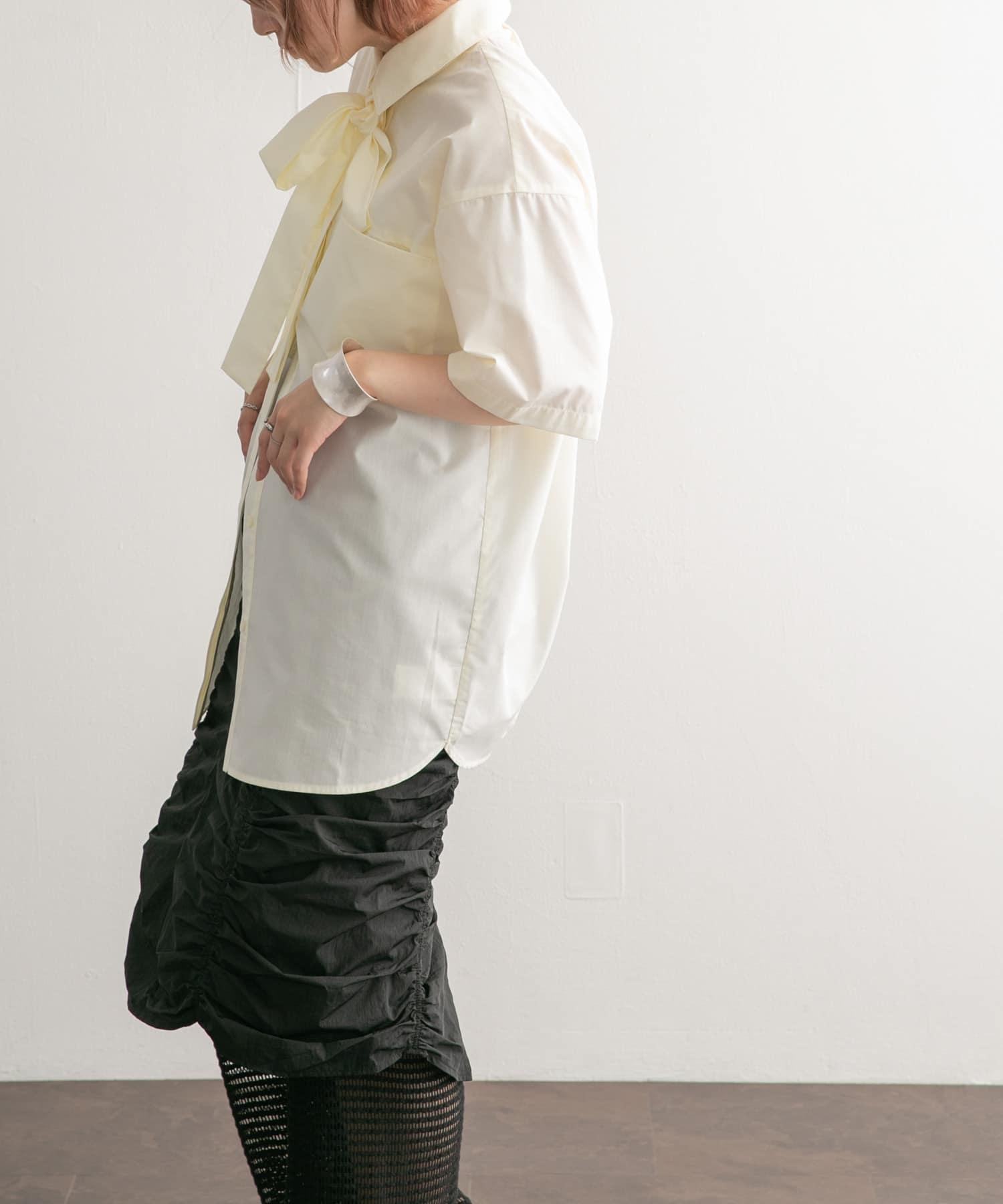 這款帶領帶的襯衫可以系領帶、打絲帶結或以各種款式穿著。休閒的繭形輪廓和大口袋設計別具一格。尺寸的選擇也很重要,因為它不會過多地挑起身體的線條。從男性化到女性化的各種風格均可穿著。