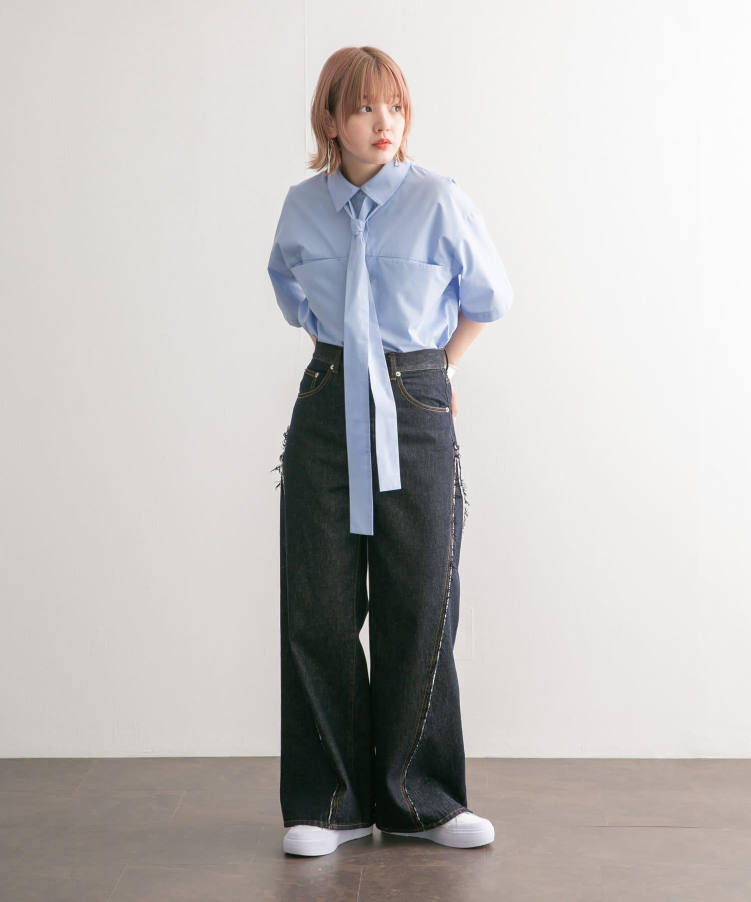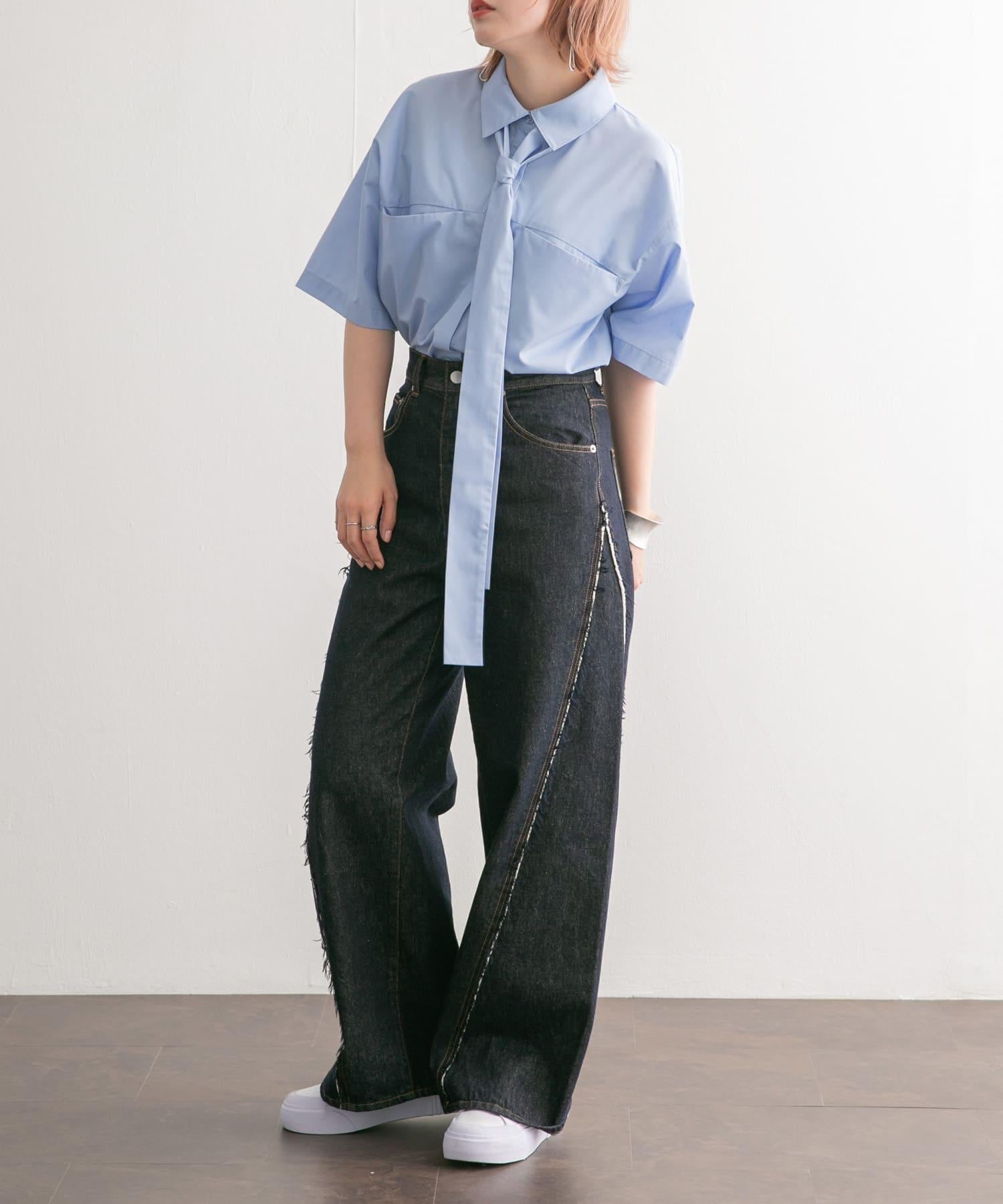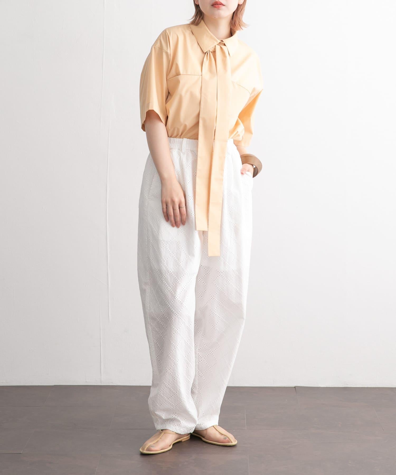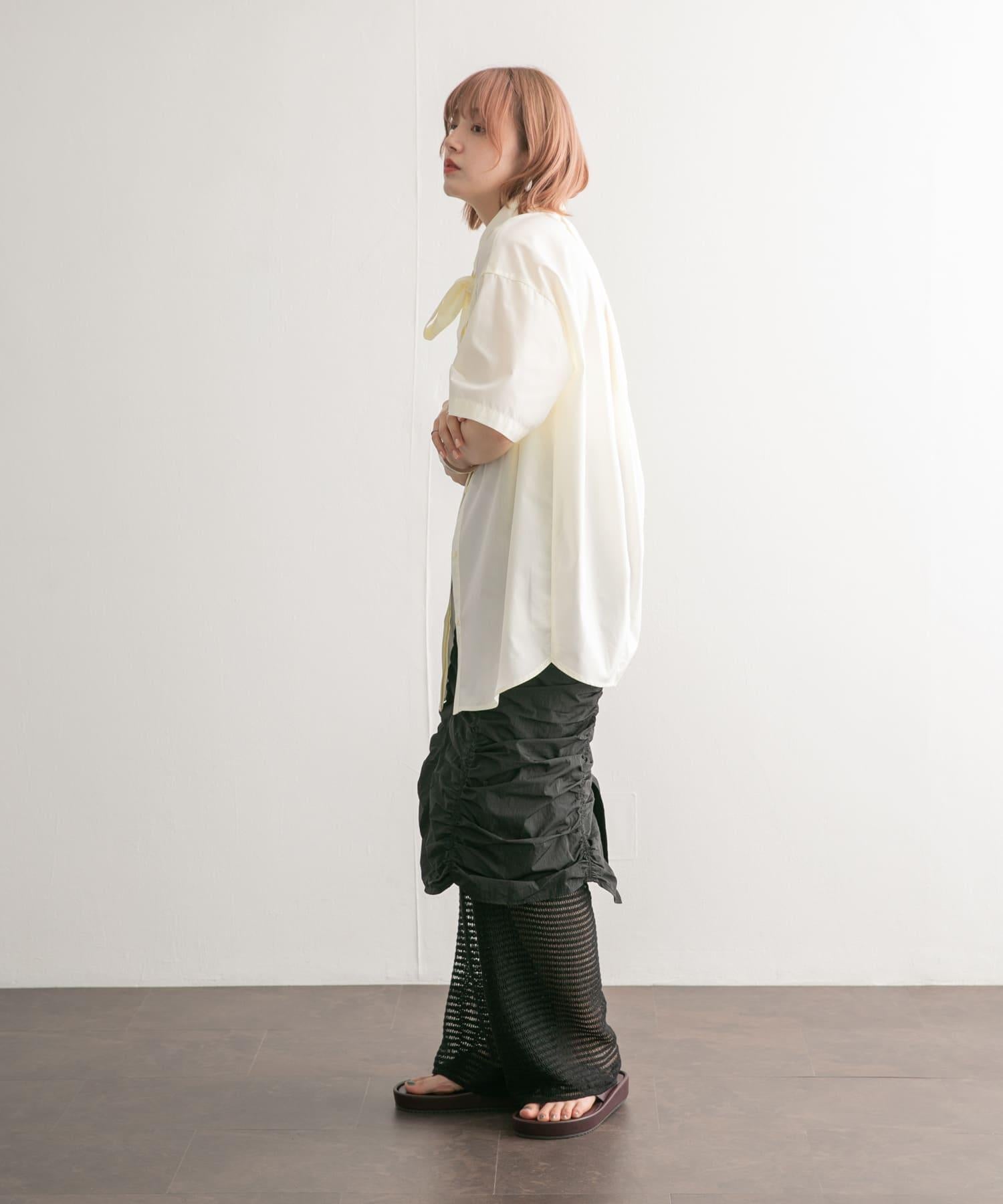 這款帶領帶的襯衫可以系領帶、打絲帶結或以各種款式穿著。休閒的繭形輪廓和大口袋設計別具一格。尺寸的選擇也很重要,因為它不會過多地挑起身體的線條。從男性化到女性化的各種風格均可穿著。