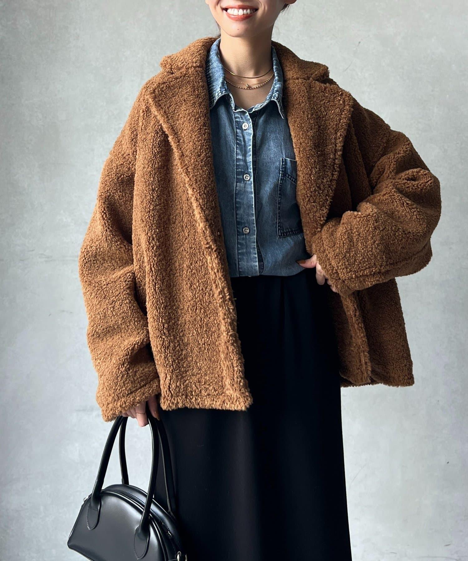 這款當季外衣的蓬鬆蟒蛇頭飾和短款長度不僅能保暖,還能讓你穿上它就能展現出時髦的造型。