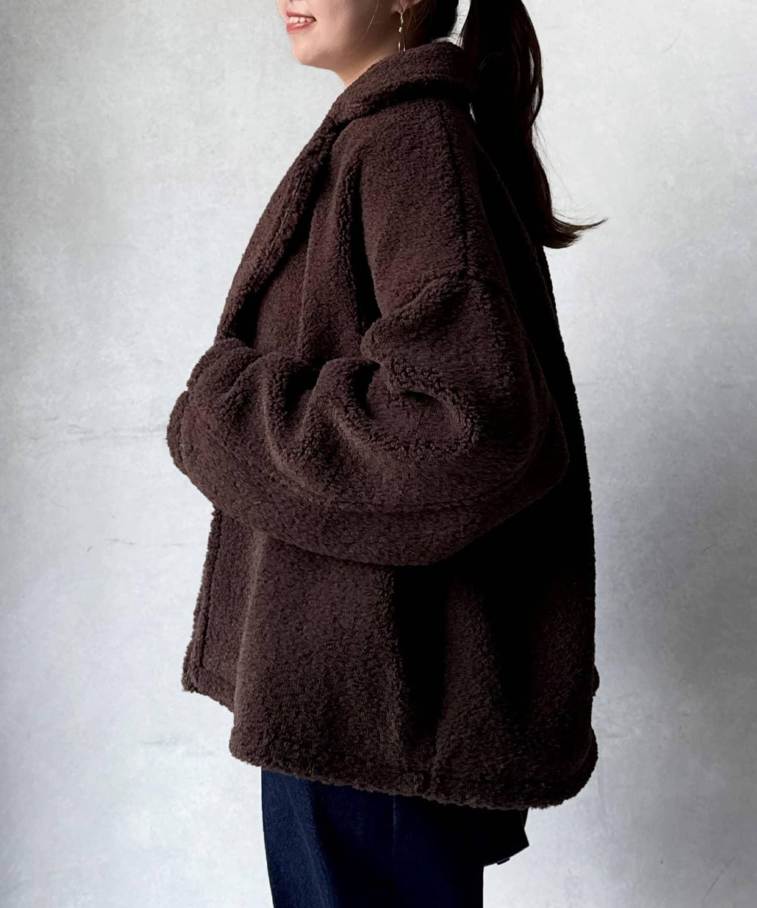 小臉效果突出的大領子和寬鬆的袖子營造出女性的柔美氣質。