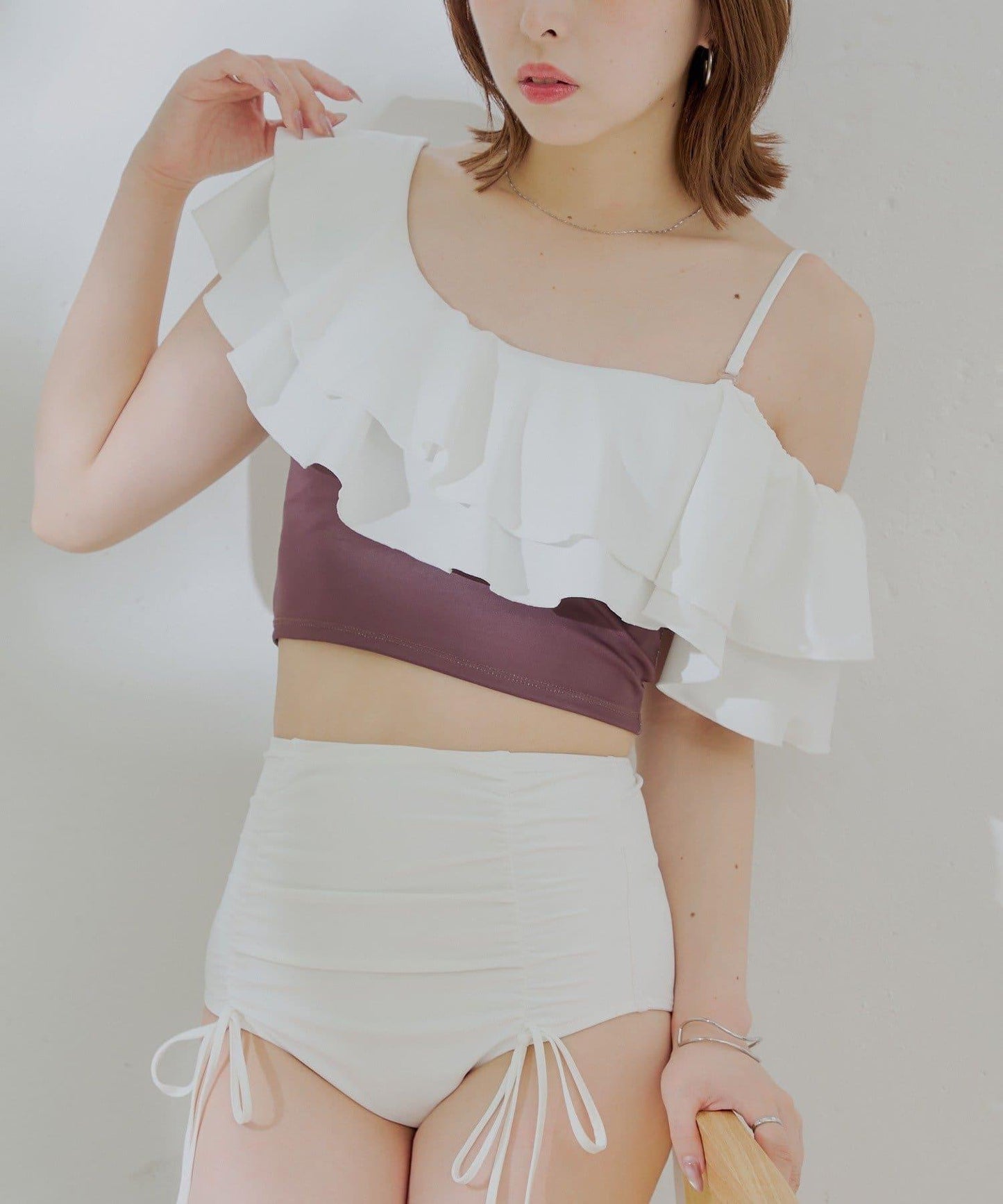 【泳裝/上衣】雙層荷葉邊單肩上衣