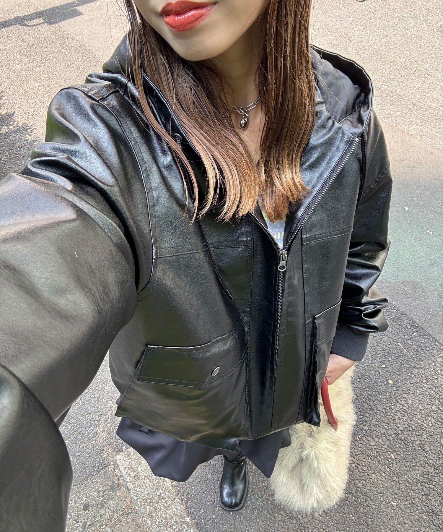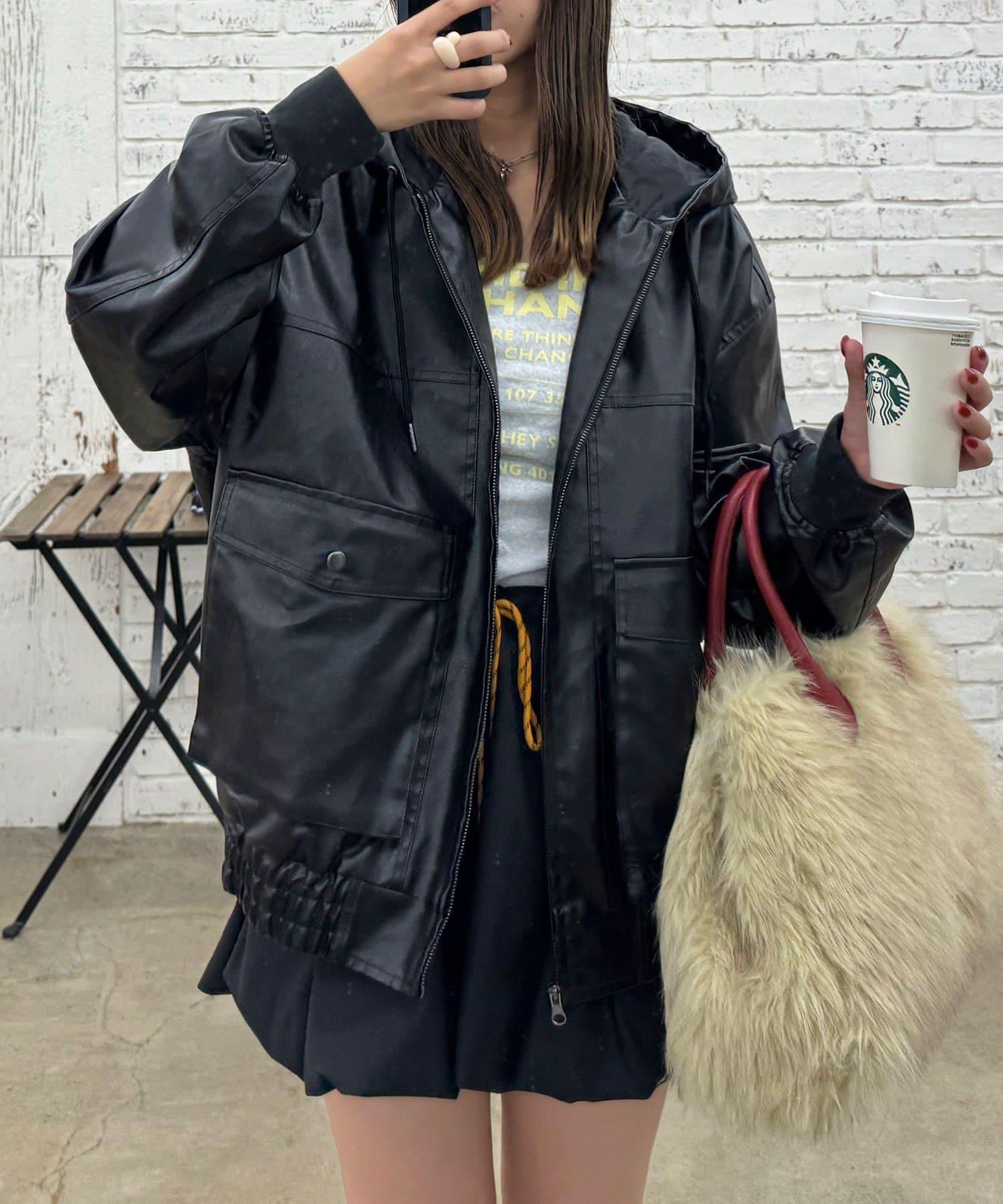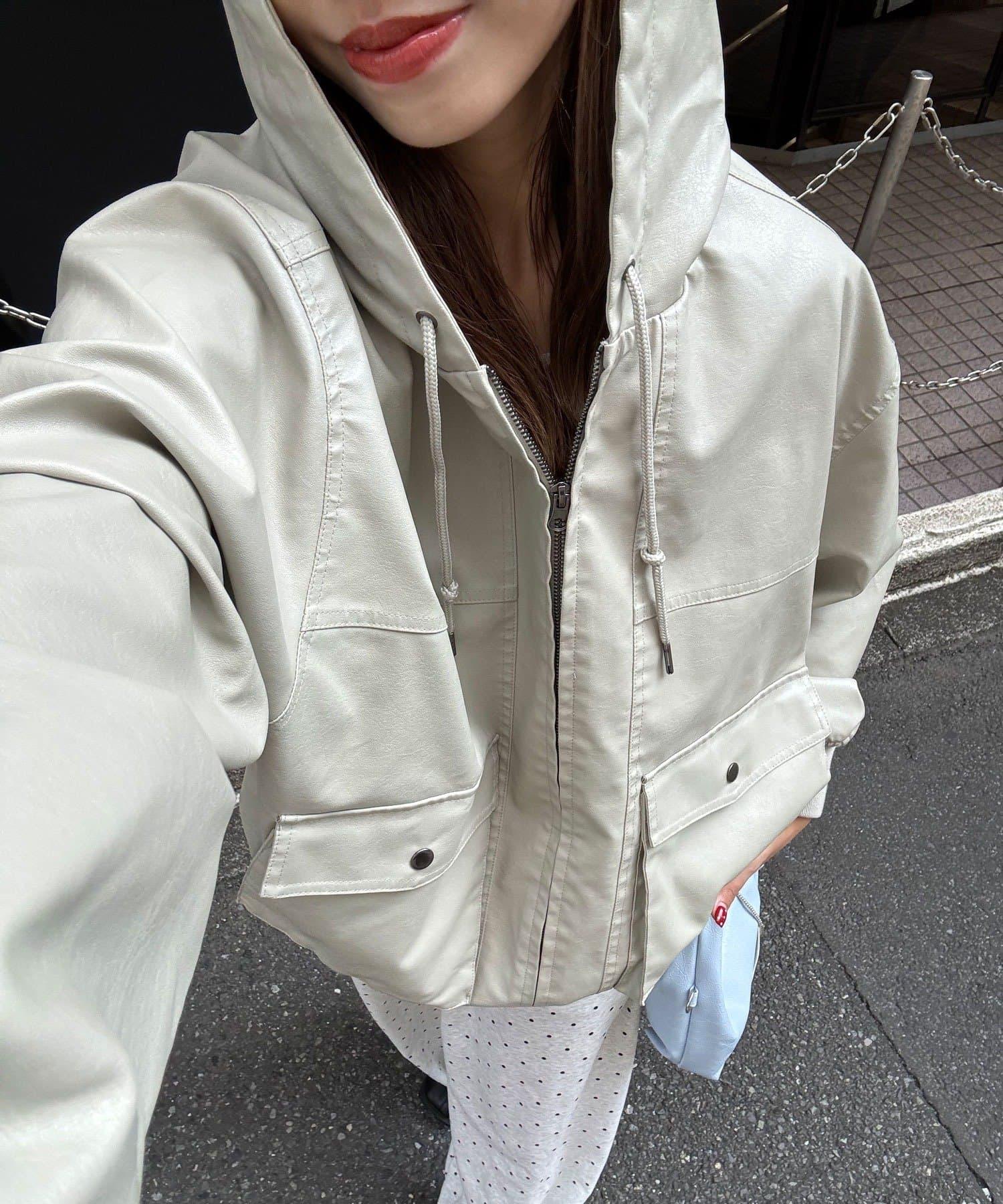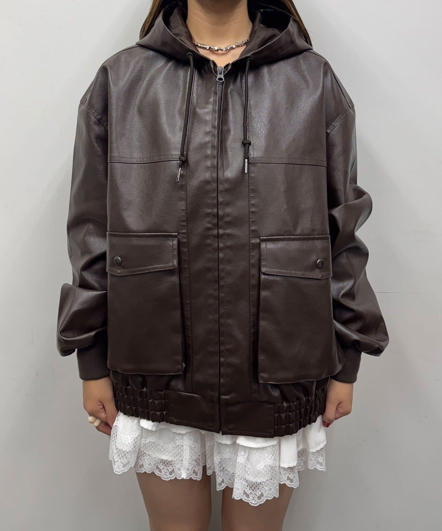 活力風格仿皮連帽外套