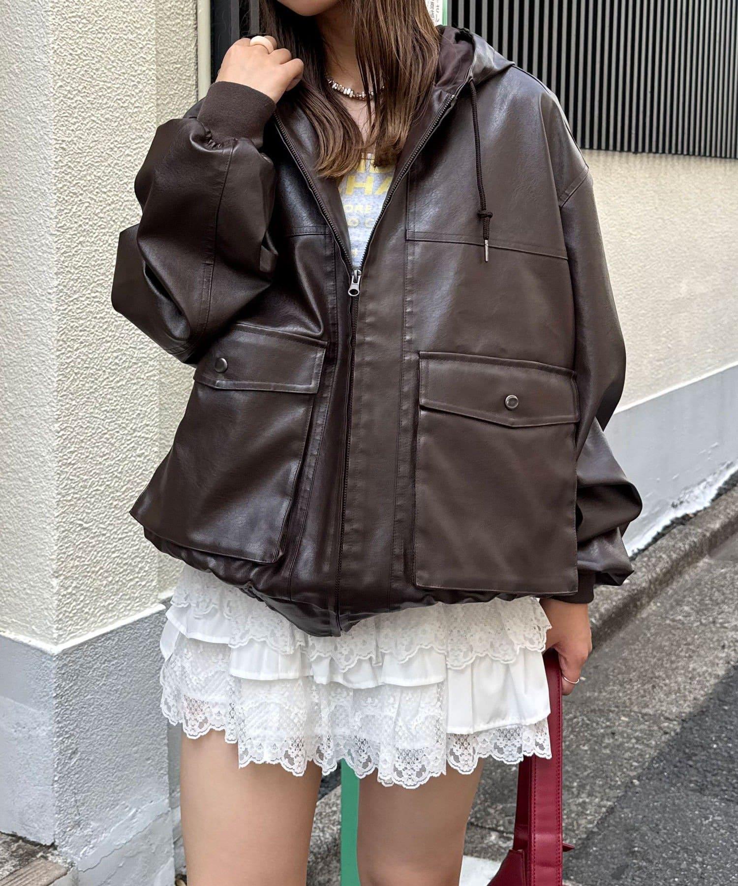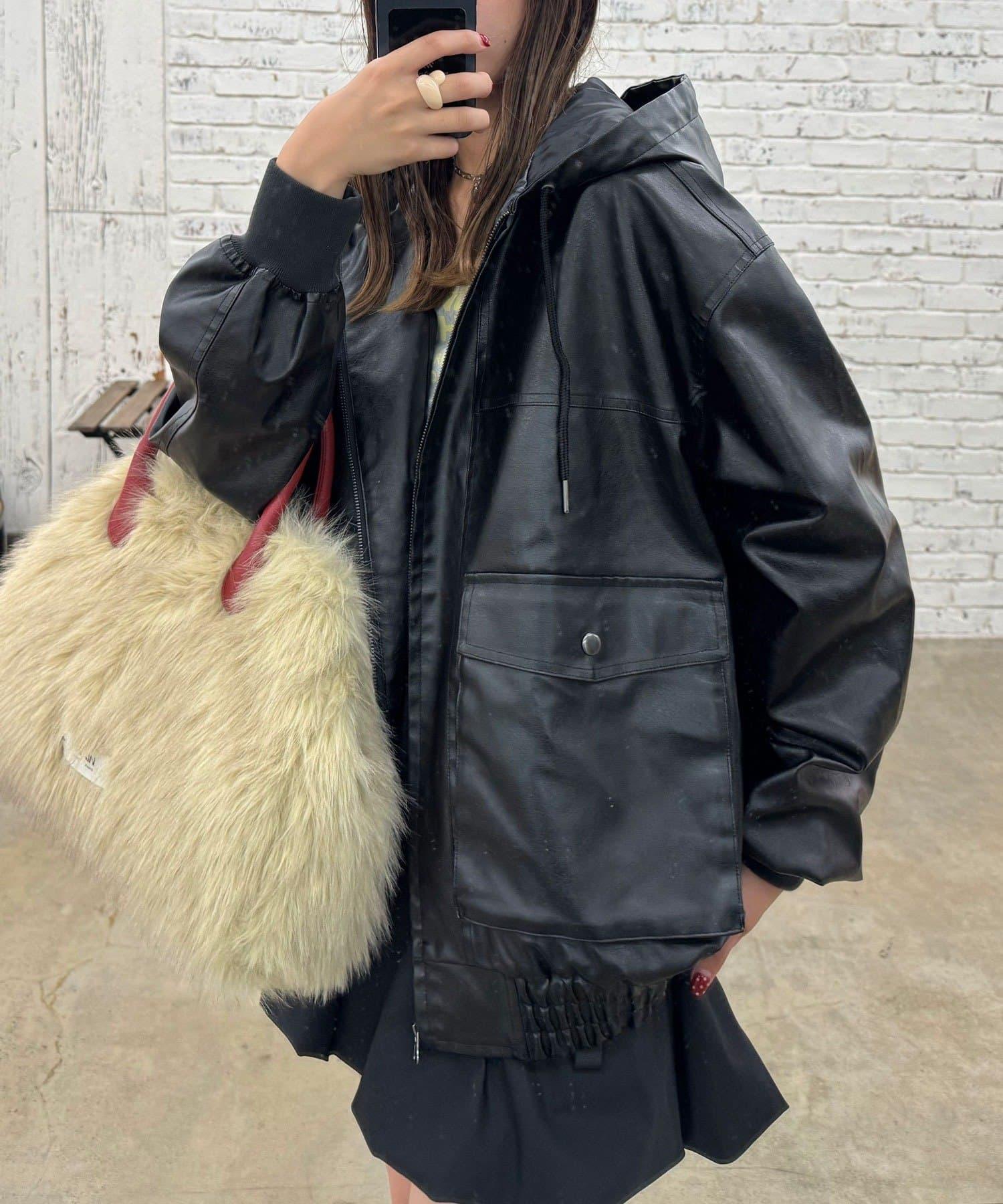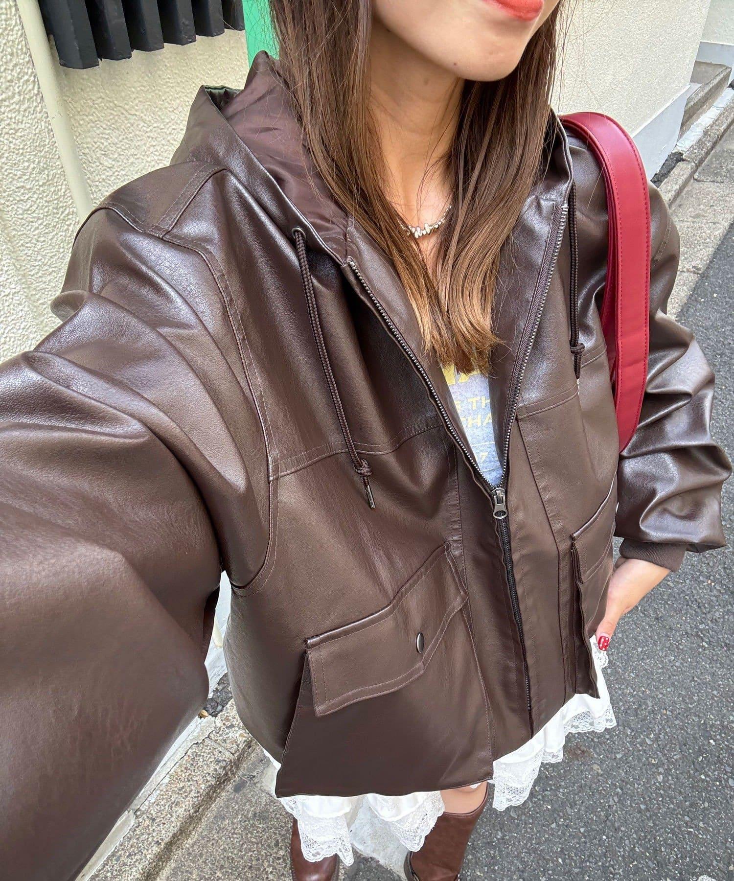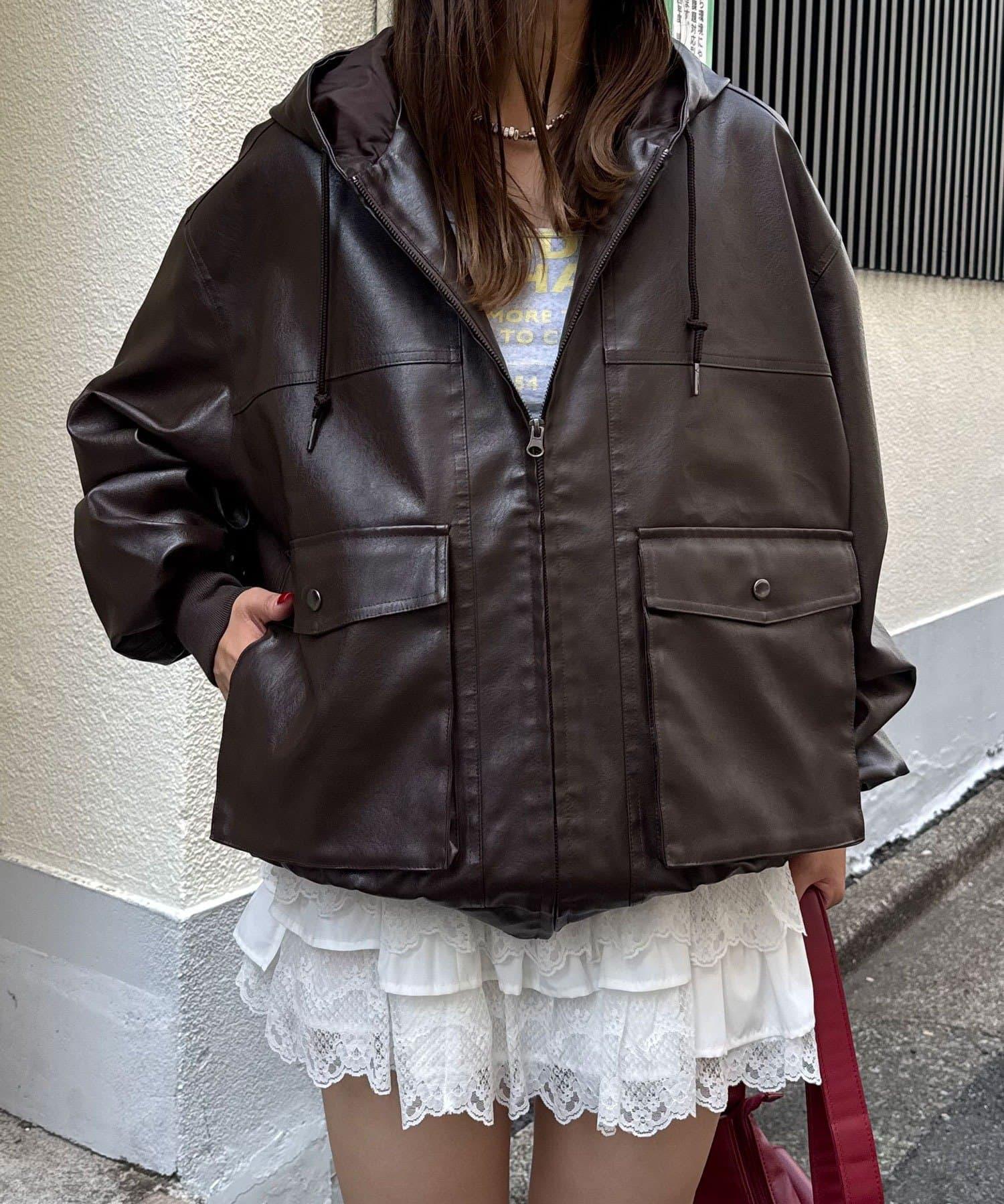 活力風格仿皮連帽外套