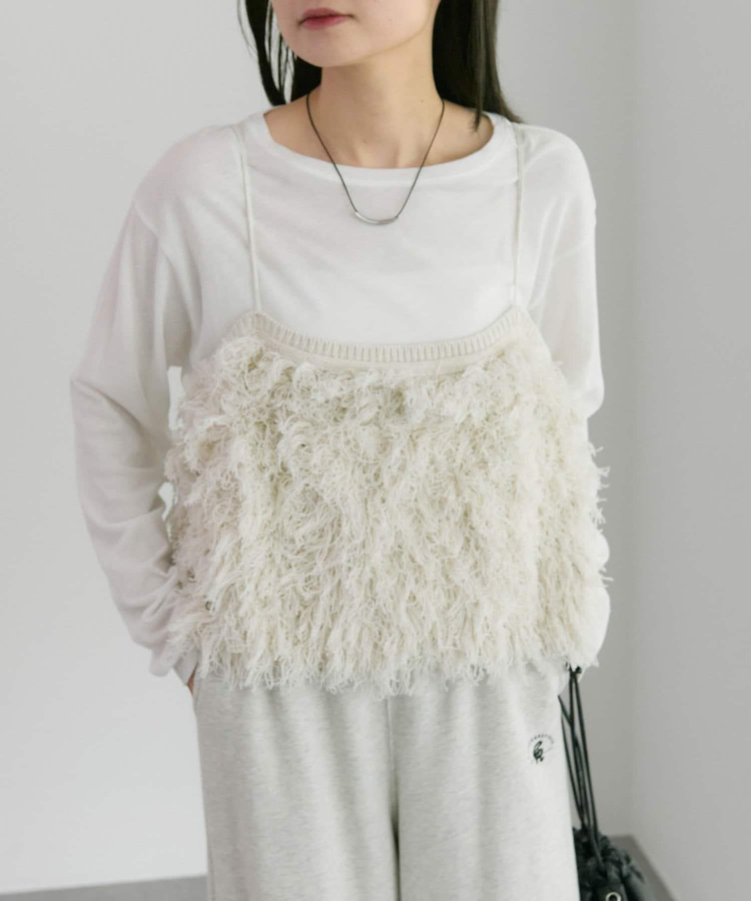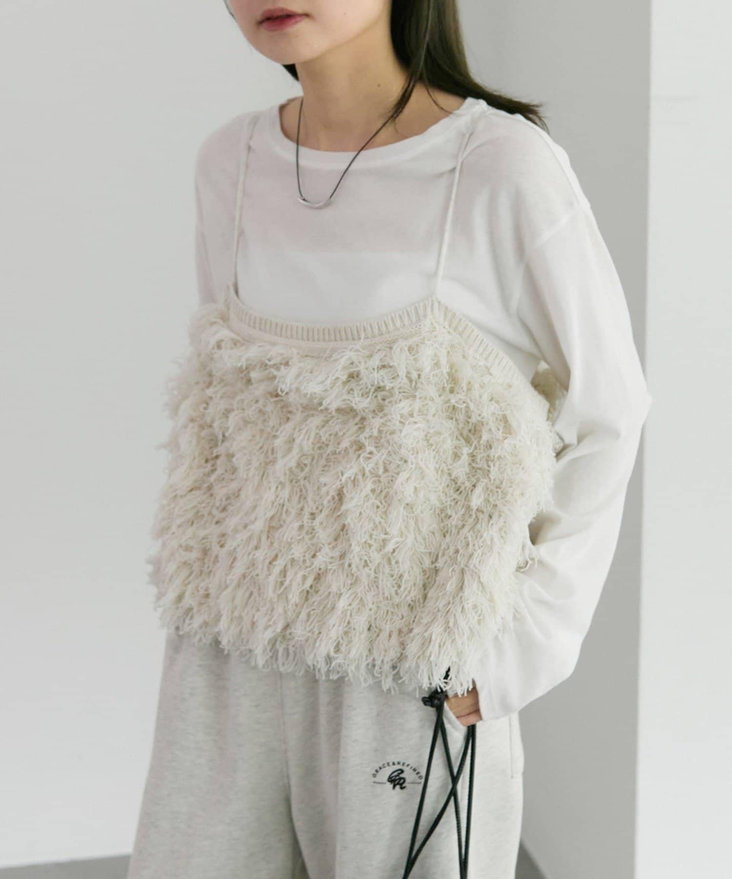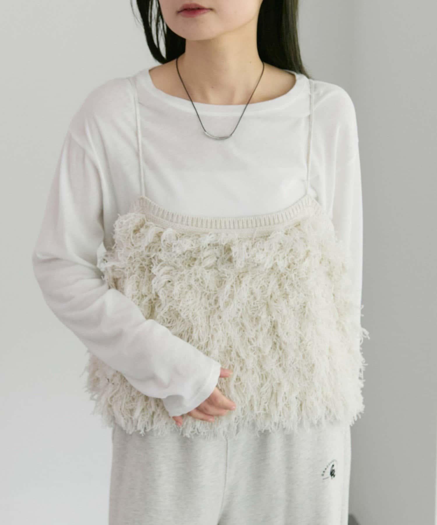 蓬鬆的面料讓人忍不住想摸一摸,而且不會太厚,所以也可以搭配外衣穿著。