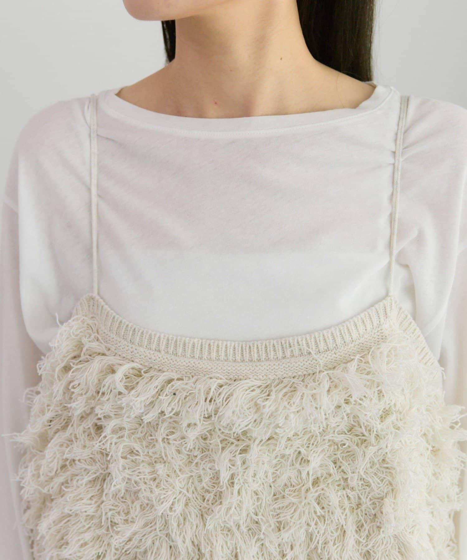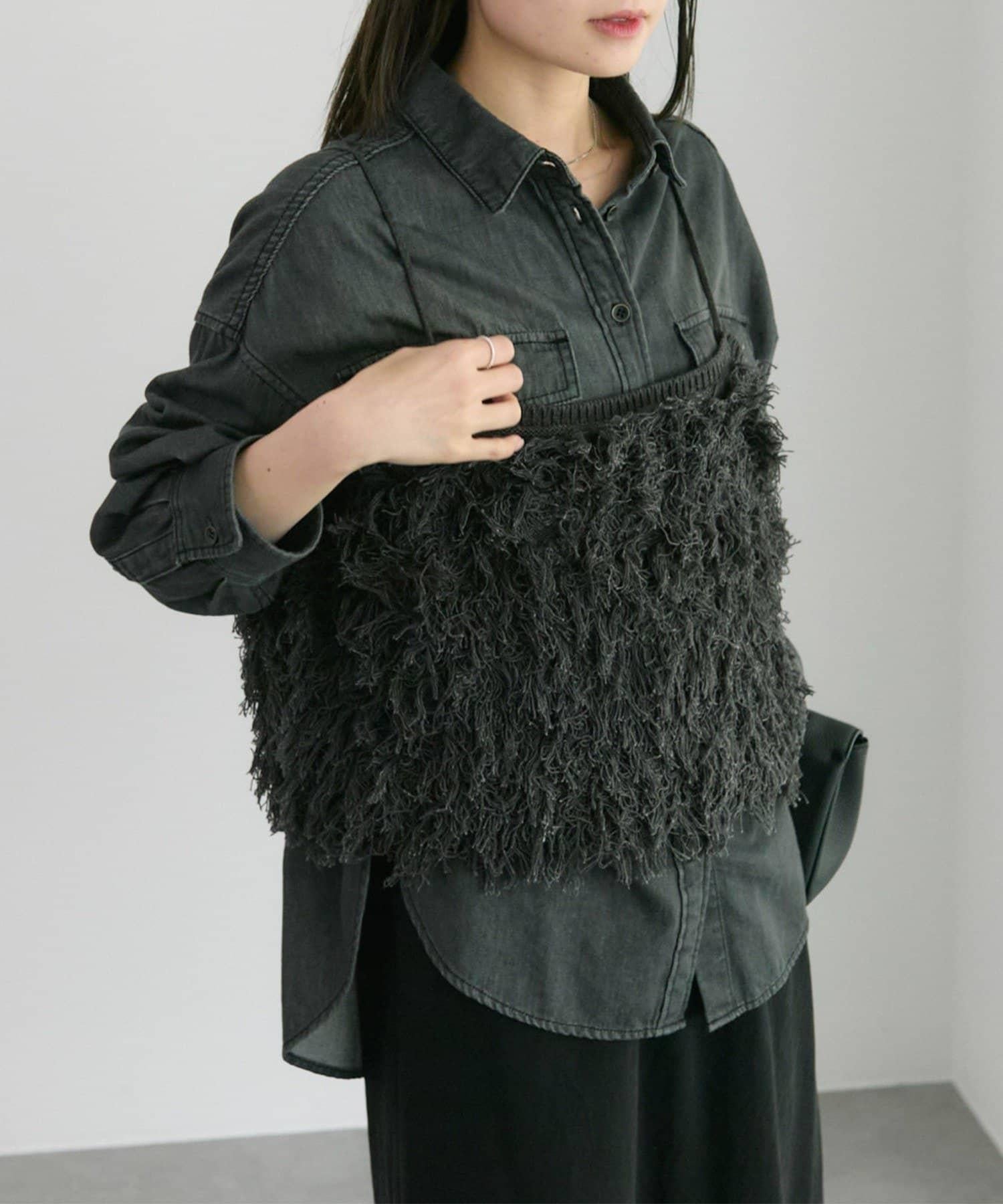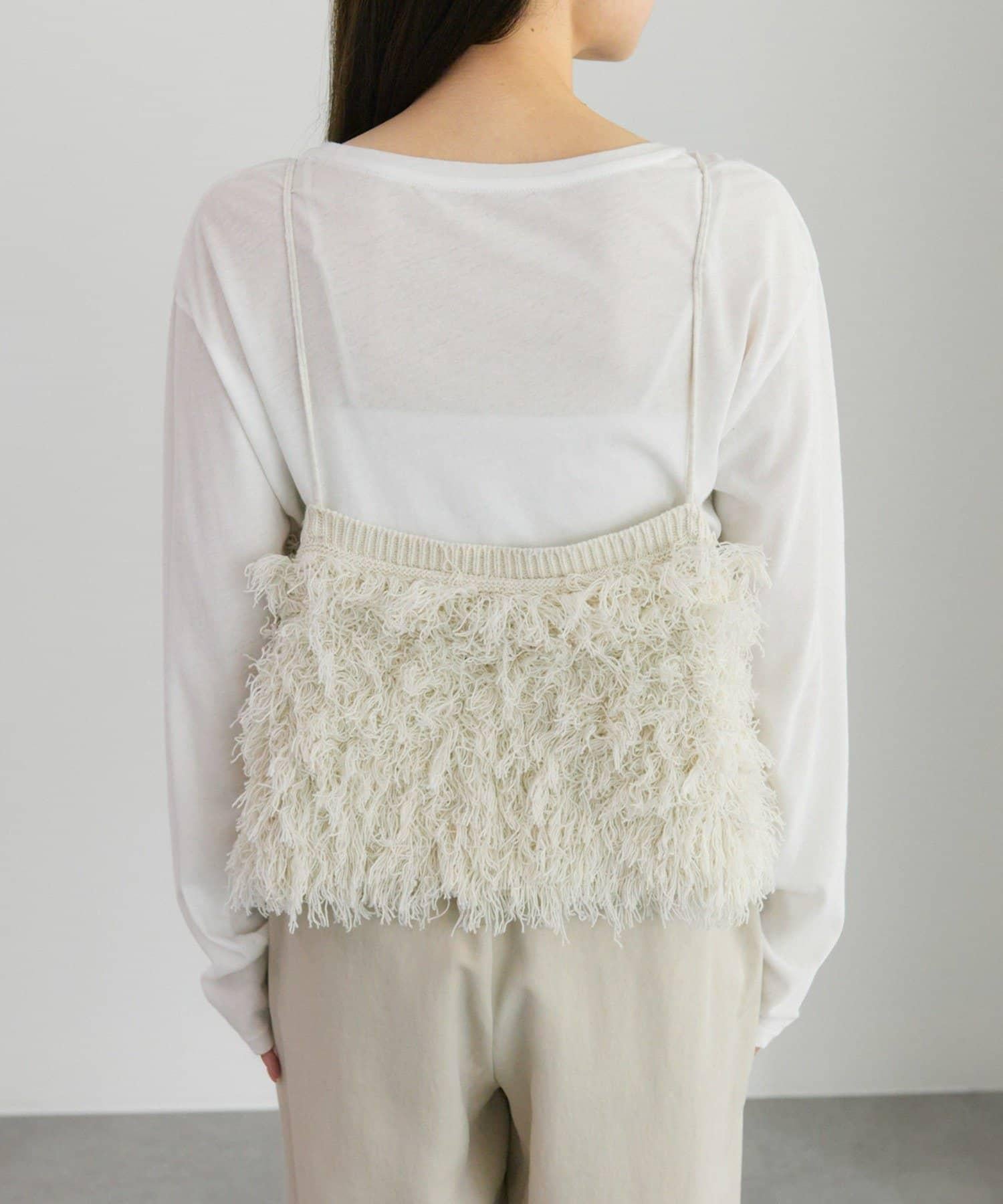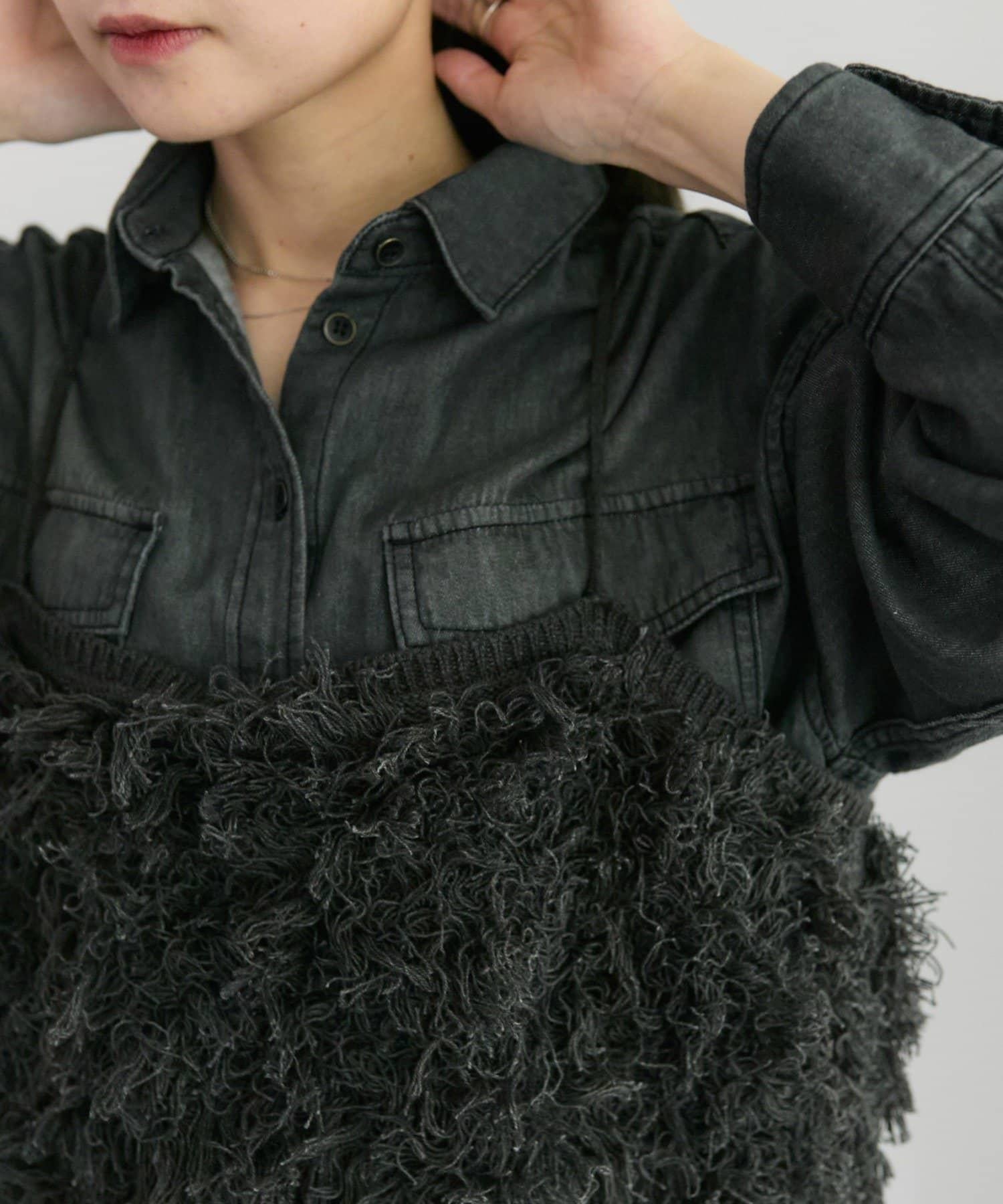採用流蘇設計的針織半身裙,長長的毛皮賦予其極富表現力的質感。
