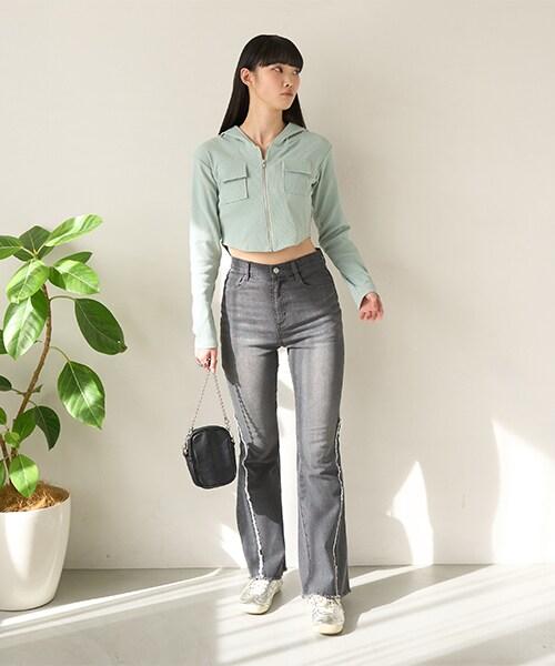 流蘇設計讓喇叭褲看起來與眾不同。