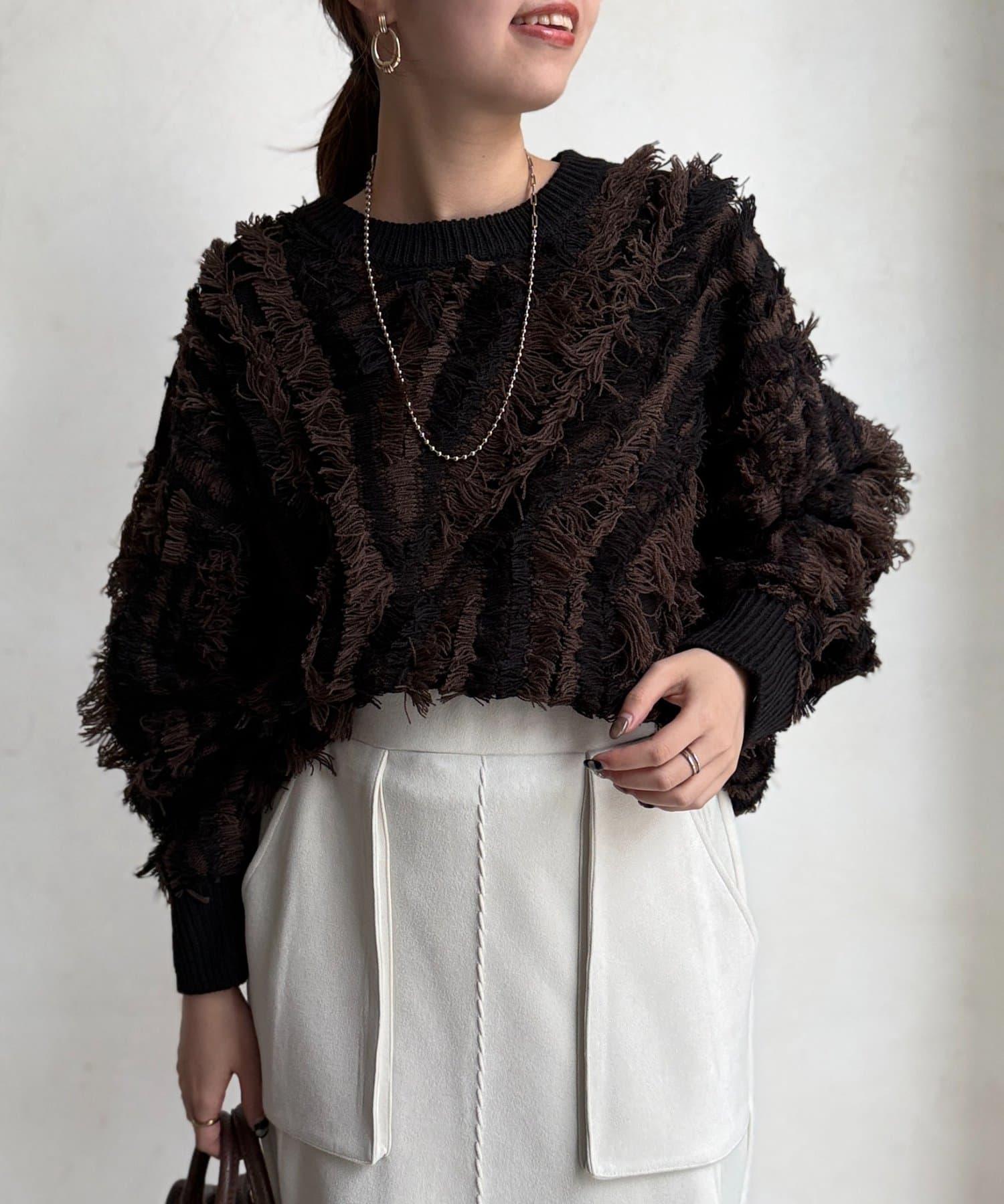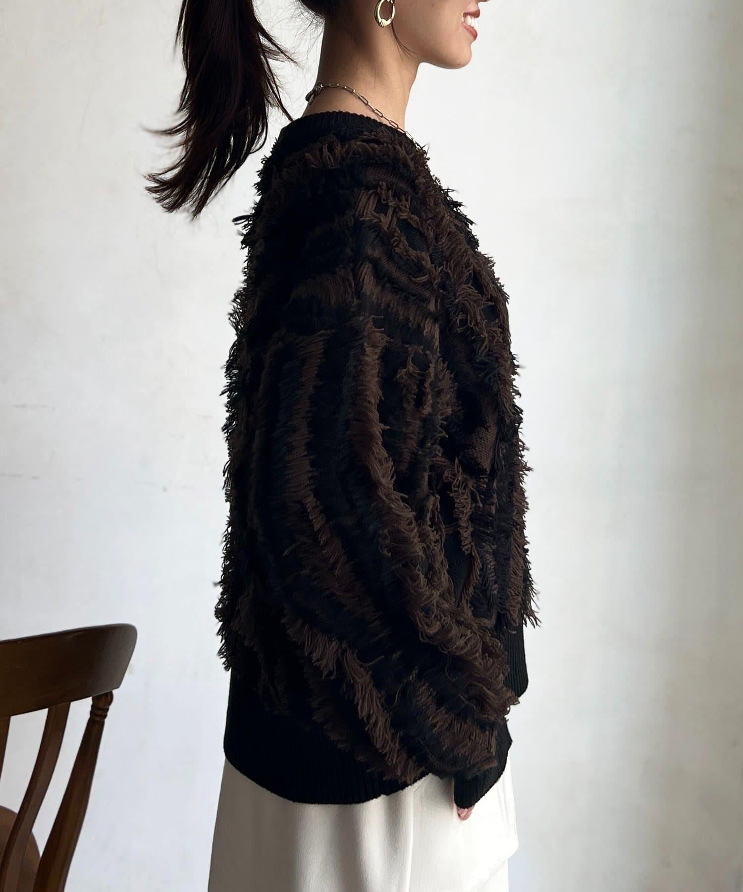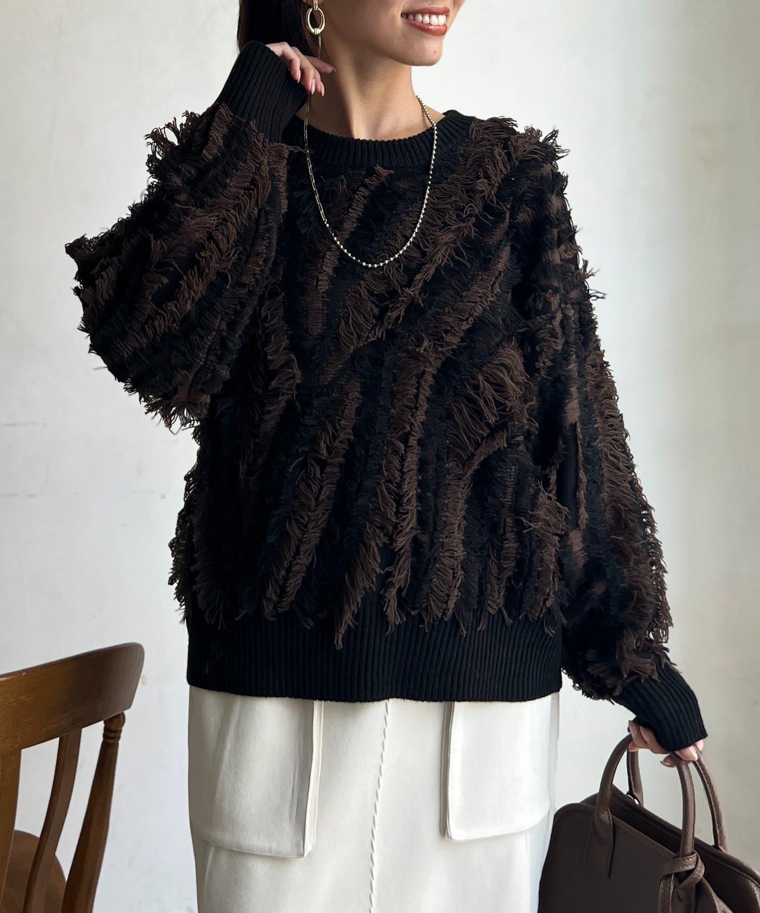 這款針織衫擁有令人印象深刻的流蘇蓬鬆設計,引人遐想。