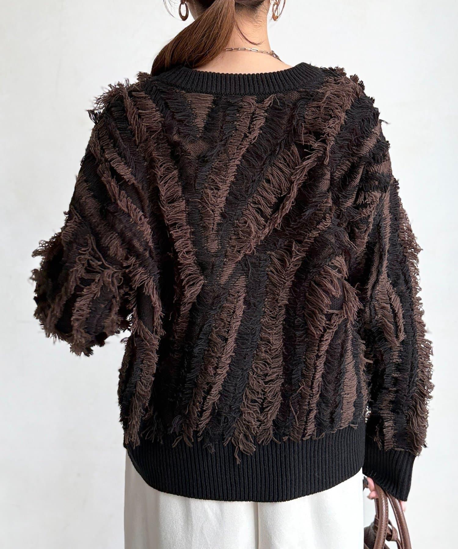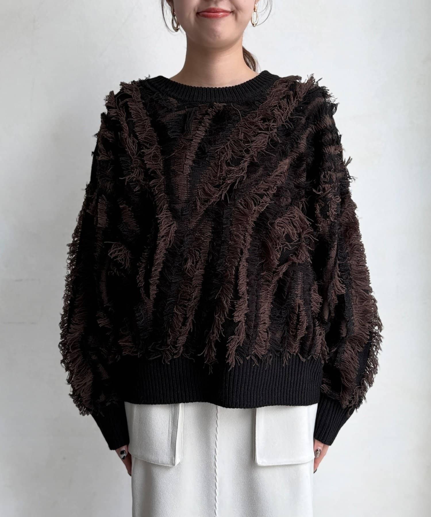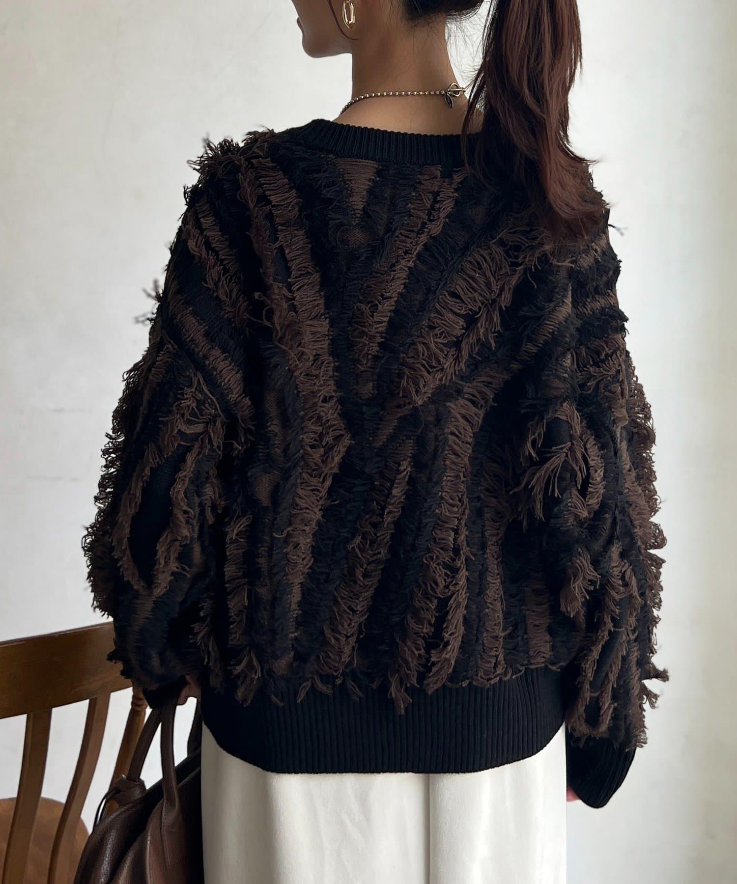 這款針織衫擁有令人印象深刻的流蘇蓬鬆設計,引人遐想。