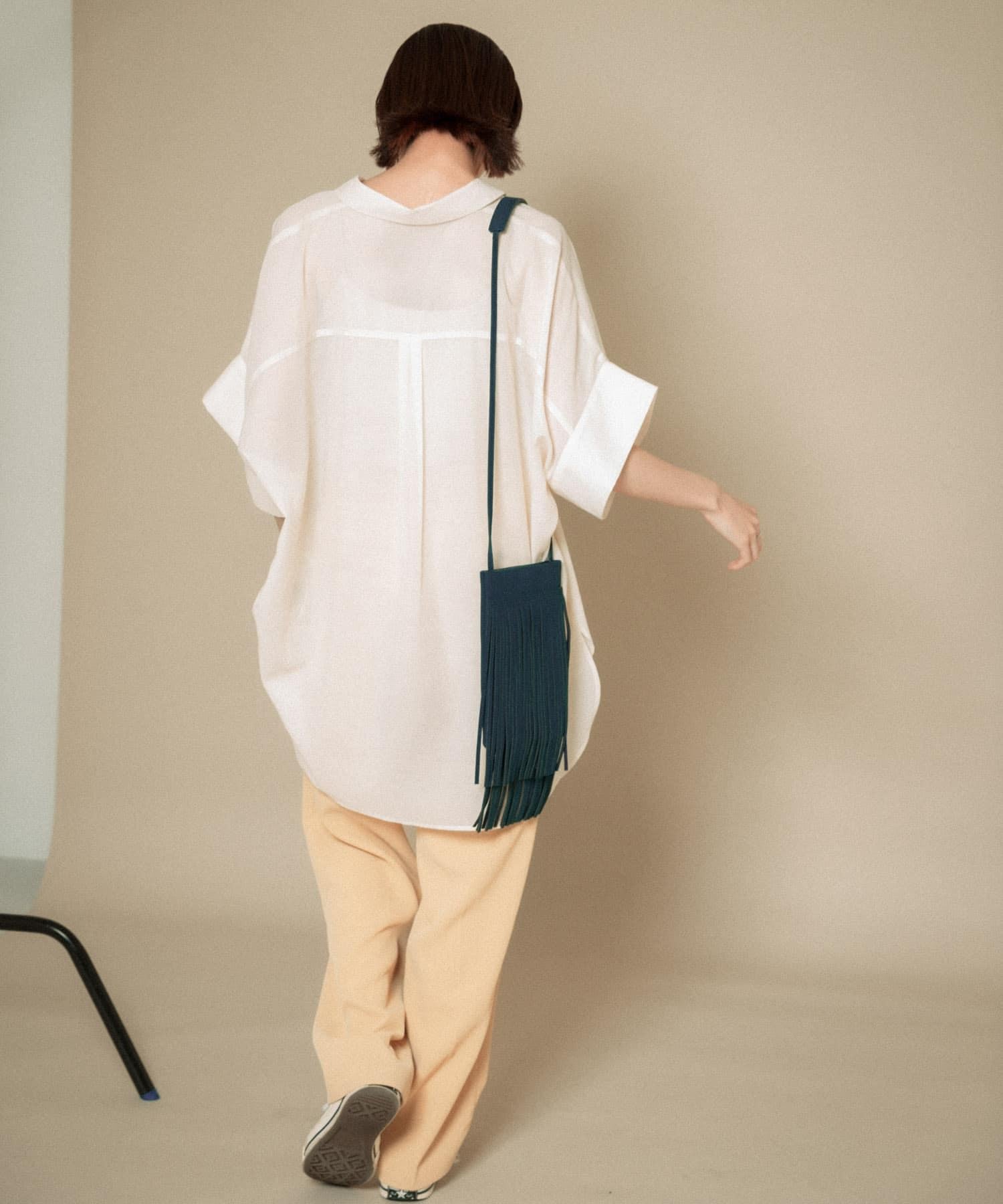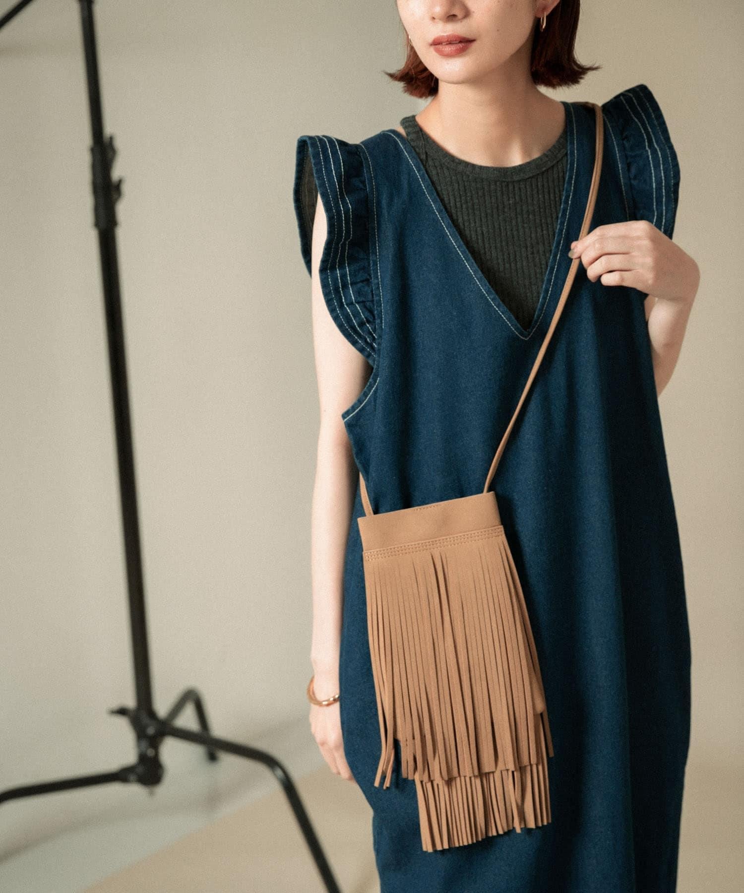 肩包上的大量流蘇引人注目。肩部長度舒適,便於斜背。絨面革面料增添了成熟的印象。內側設有口袋,儲物能力超乎想象。