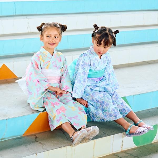 夏日祭典煙火大會 夏日祭典煙火大會 可愛外出活動 復古兒童服裝 兒童 天竺裝 夏季服裝 夏季姐妹浴衣 日式服裝 總圖案 花朵圖案 分體式