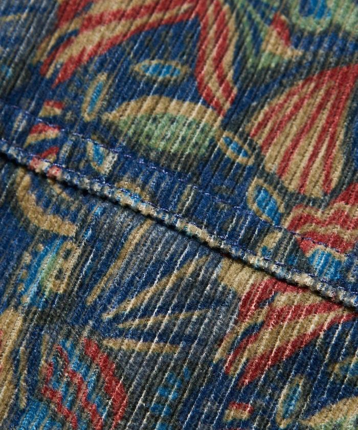 修身燈芯絨面料上印有全身印花圖案的貝克口袋短褲。