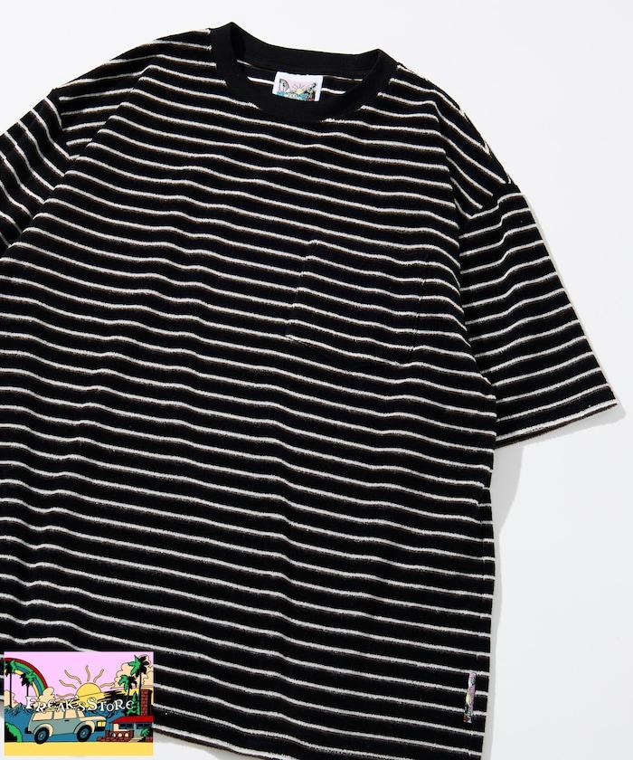 【海灘&節日】多色條紋毛巾 圓領 帶口袋T恤 短袖