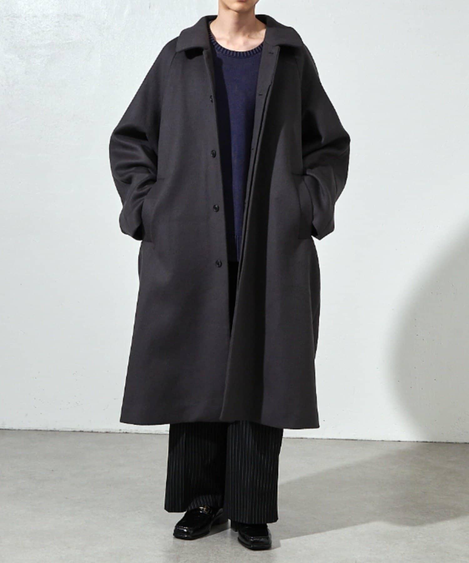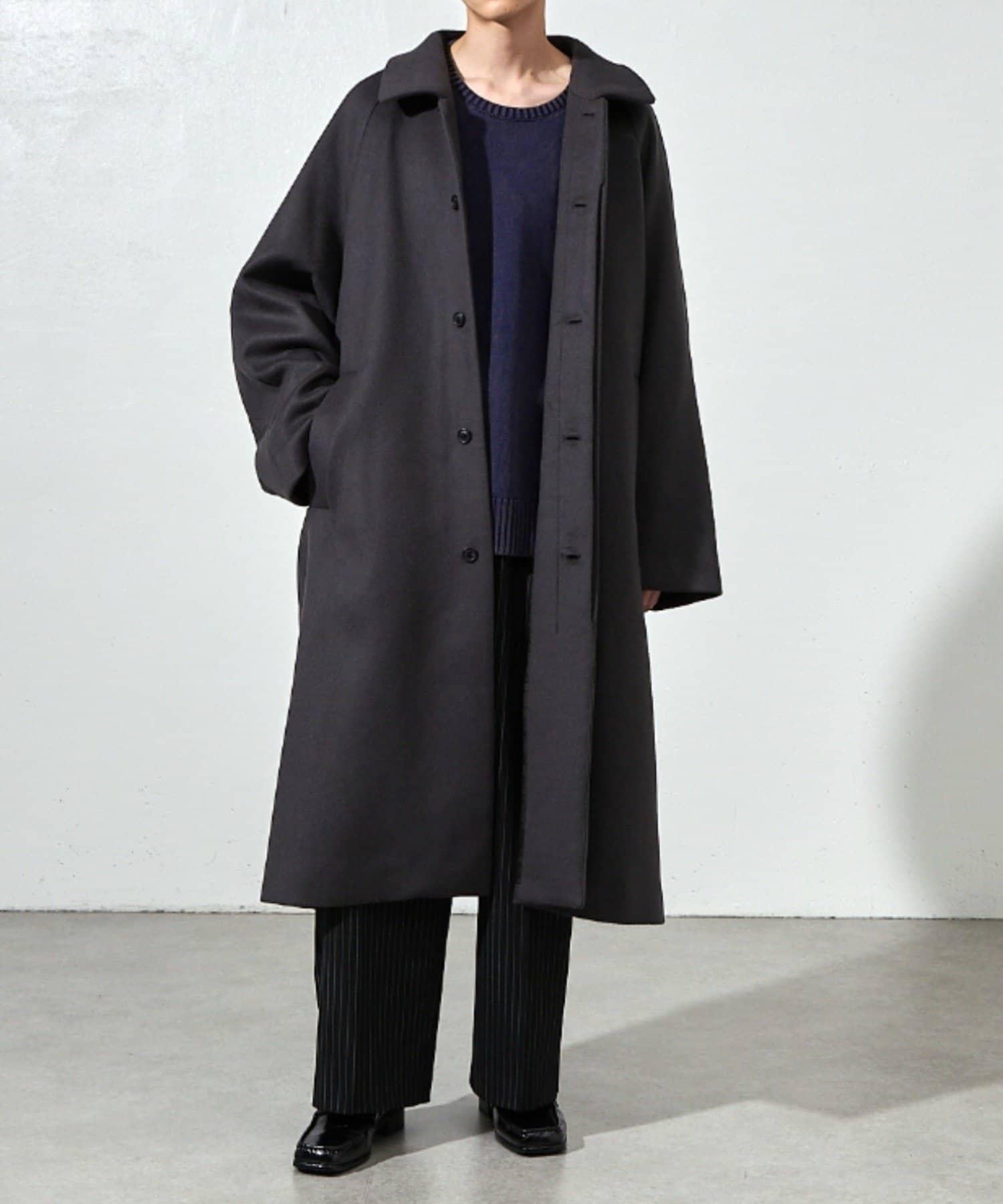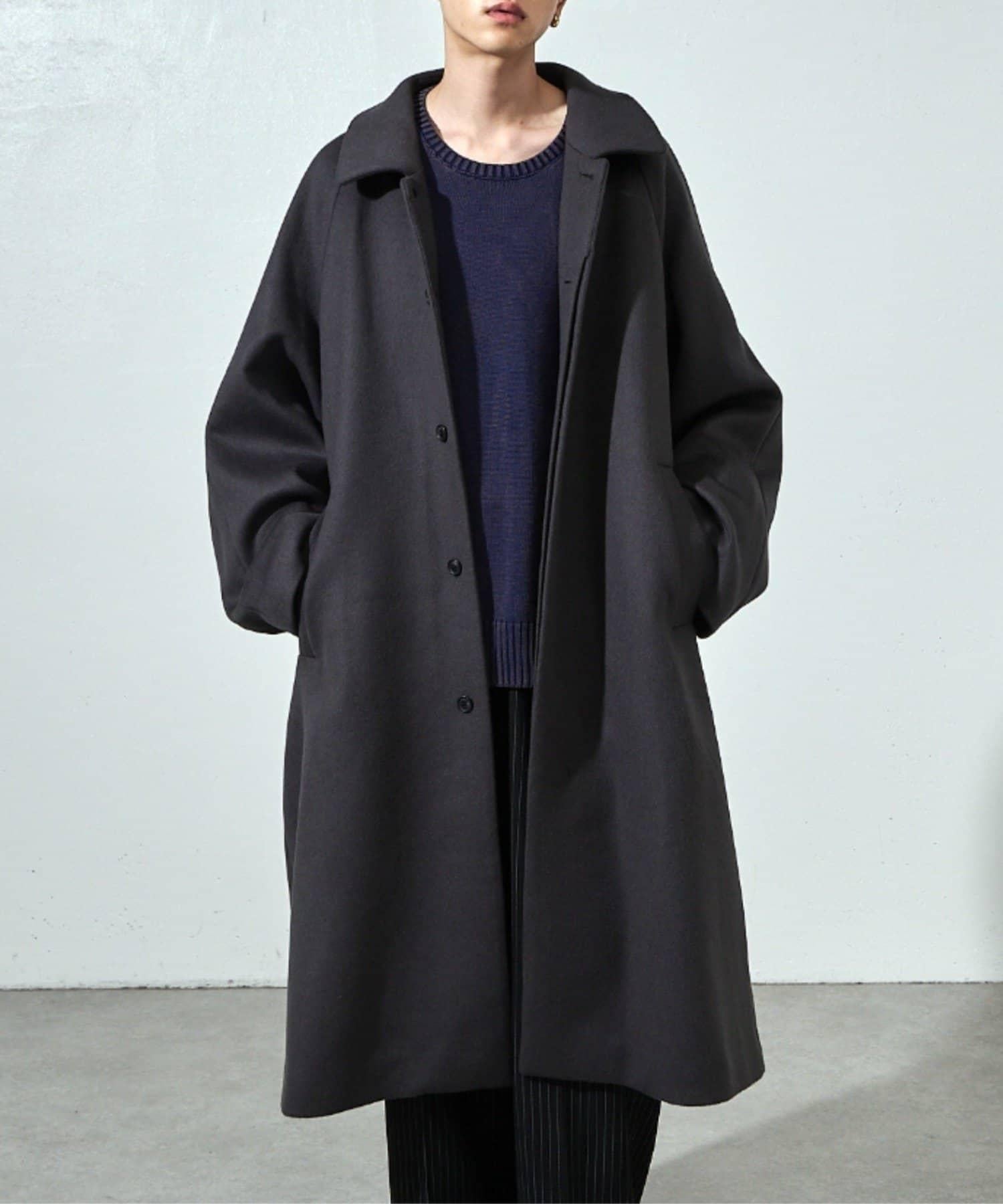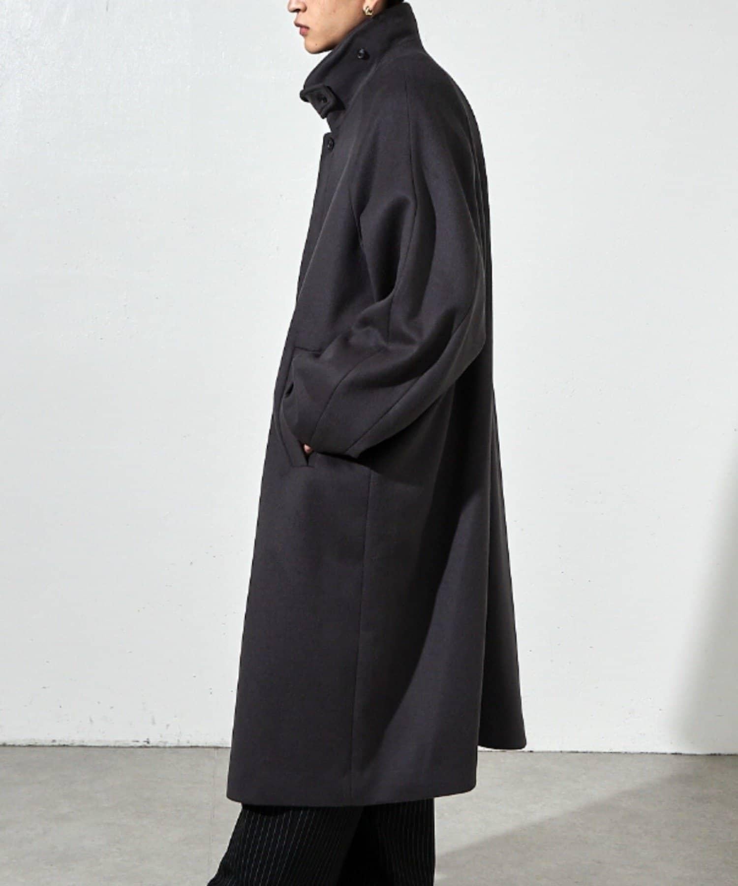 在不鏽鋼領大衣的基礎上,從臂孔到肘部的溝槽(寬度)被加寬,並向袖口逐漸變細,從而營造出豐滿的外觀。