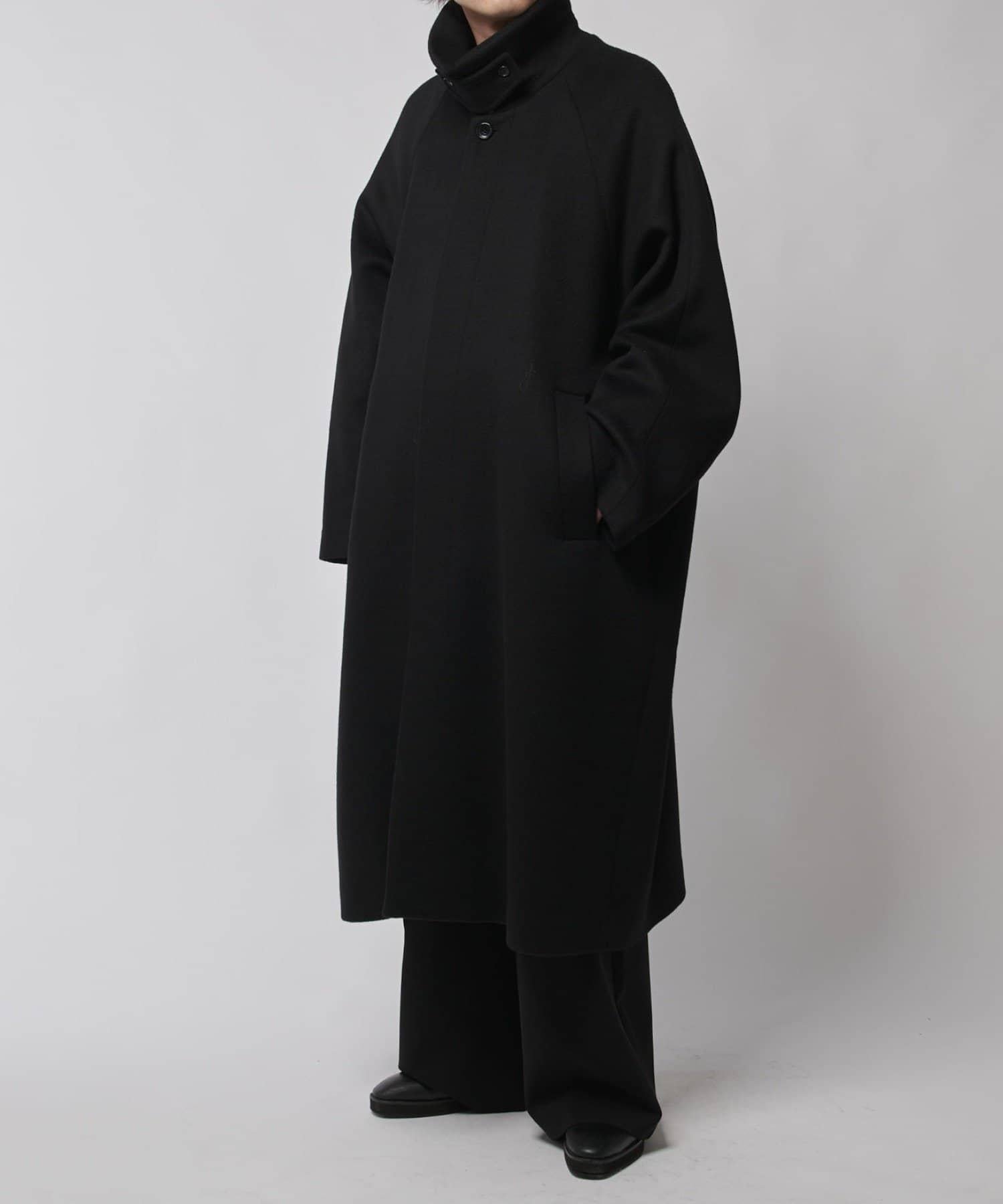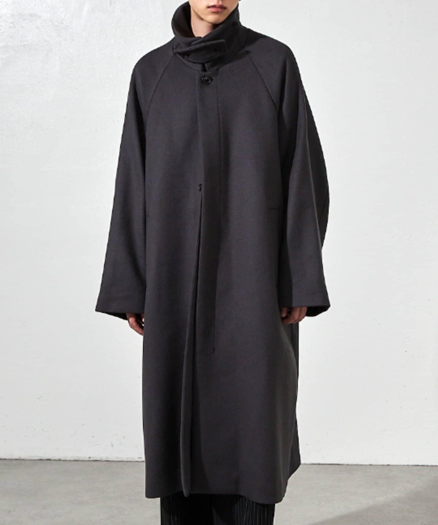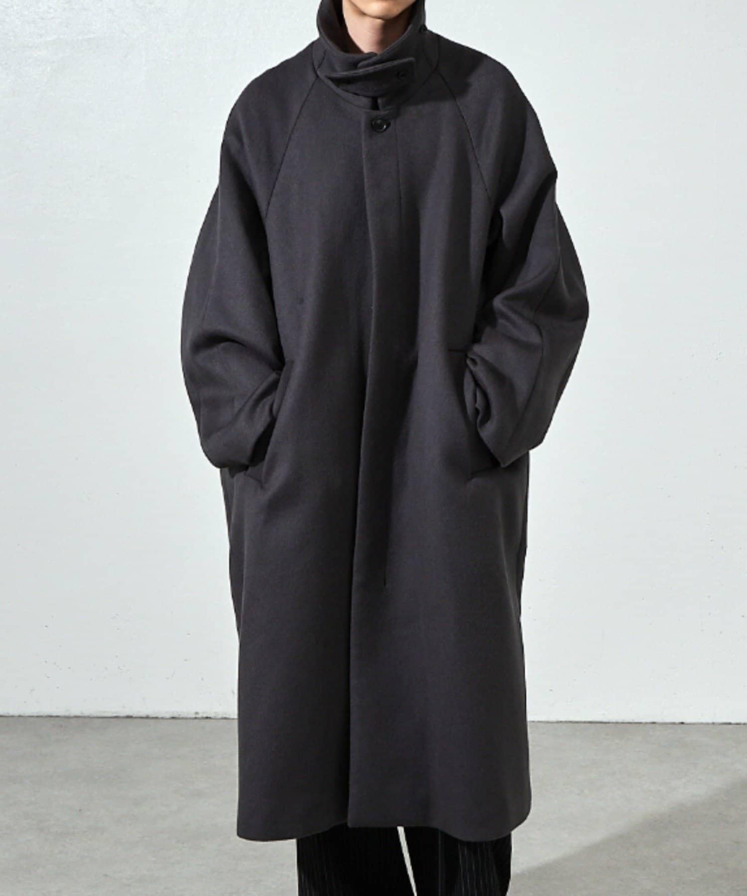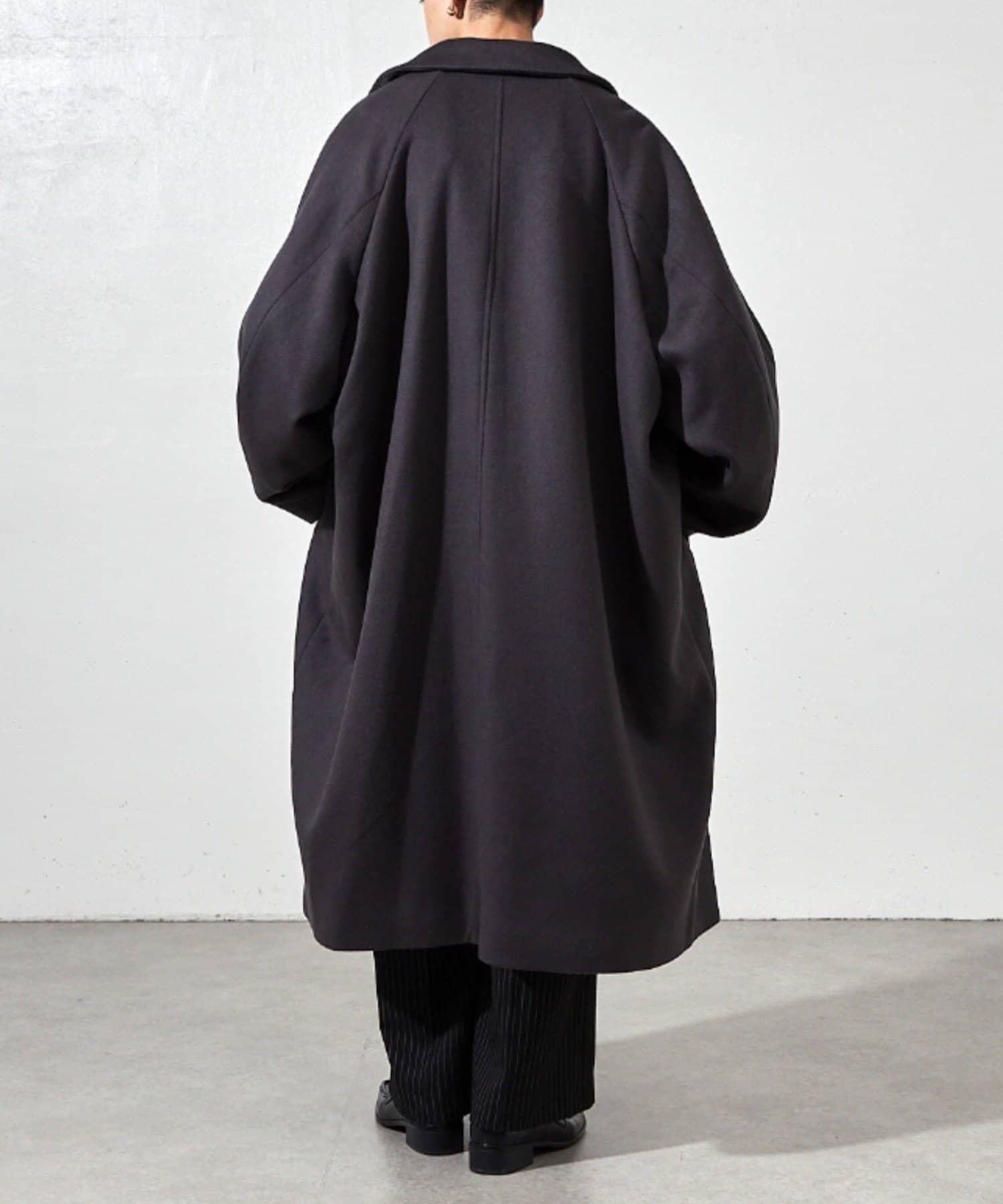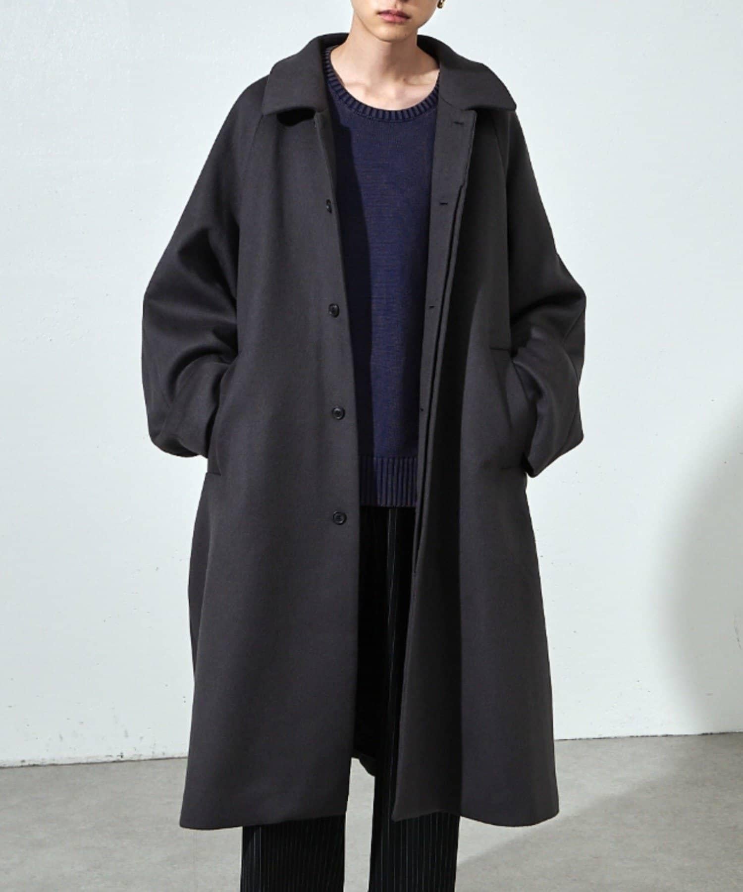 在不鏽鋼領大衣的基礎上,從臂孔到肘部的溝槽(寬度)被加寬,並向袖口逐漸變細,從而營造出豐滿的外觀。