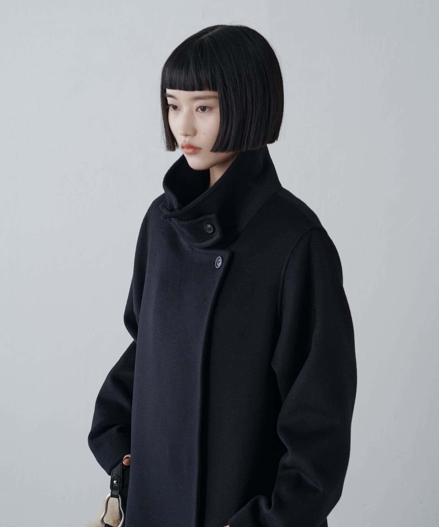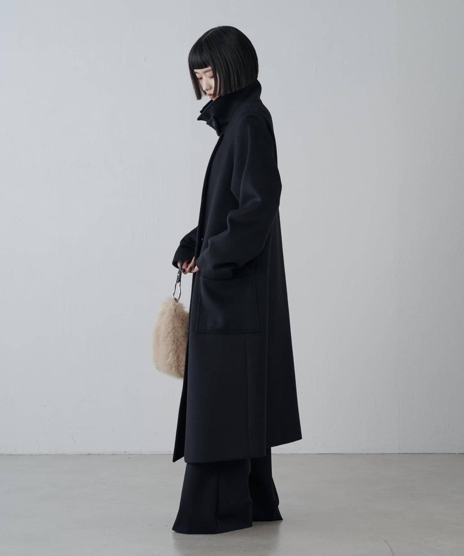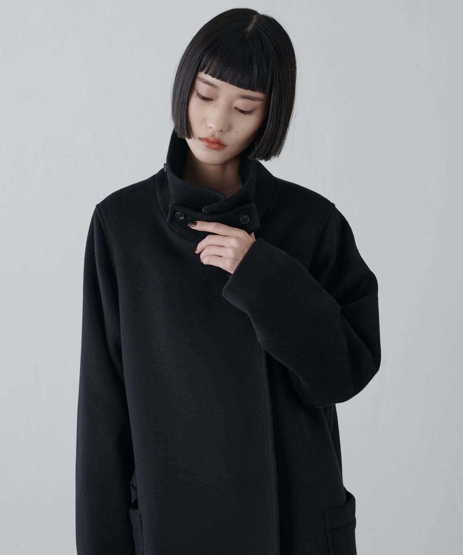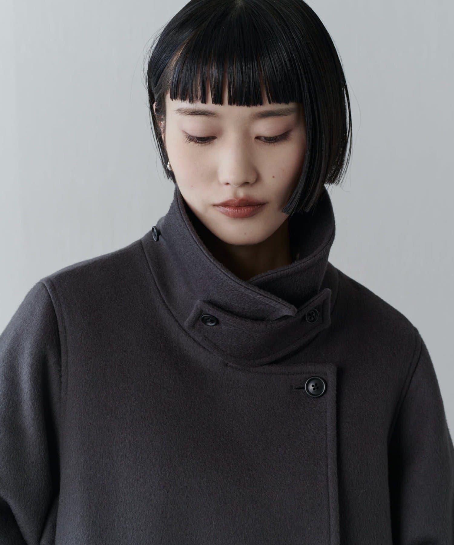 將領子部分豎起,繫上下巴帶,還可以當做高領大衣使用。