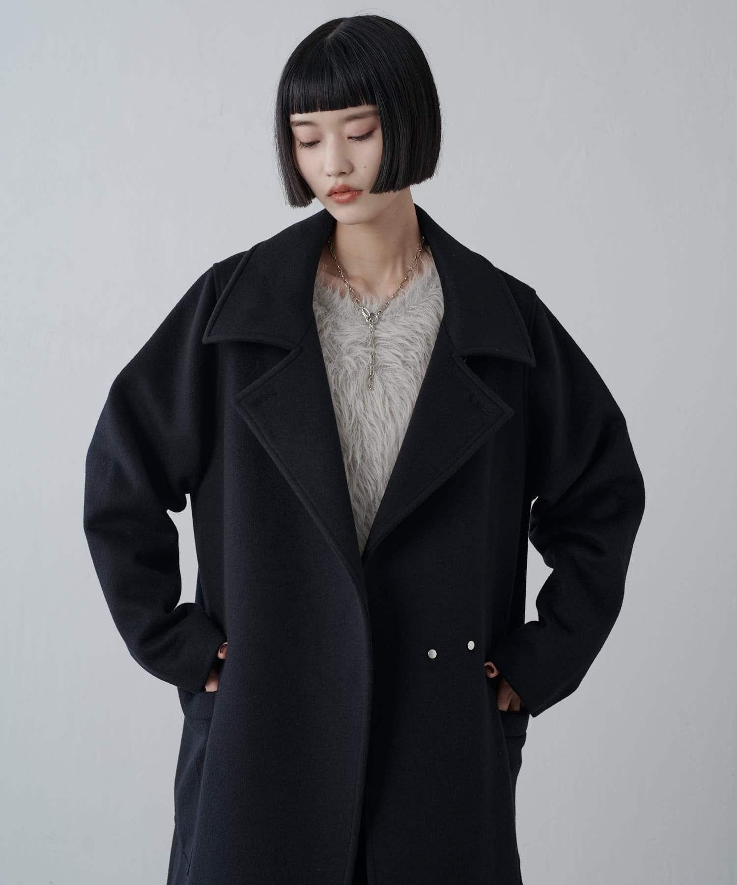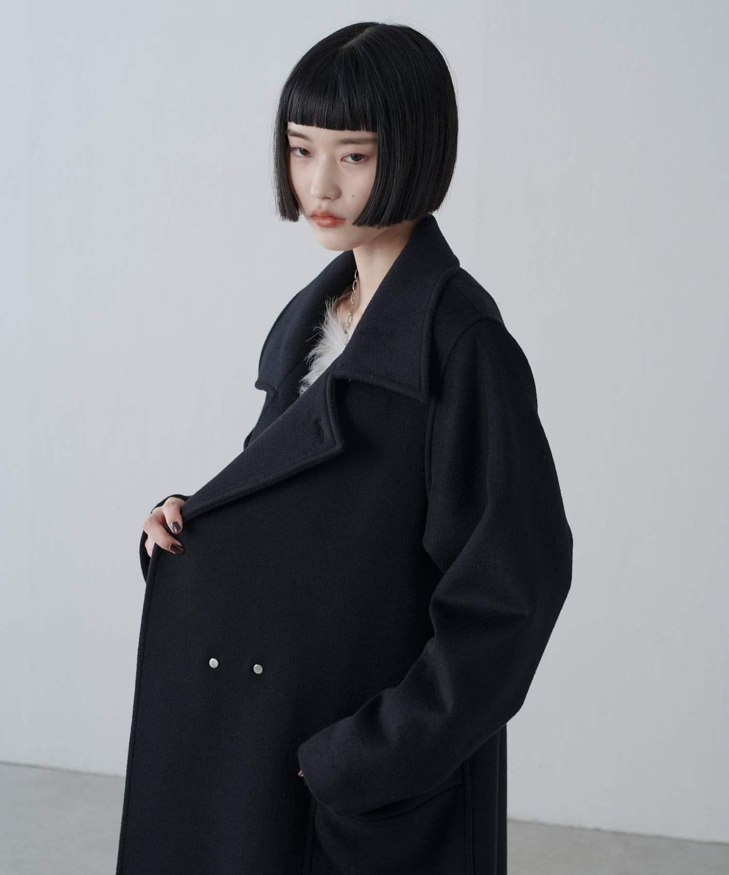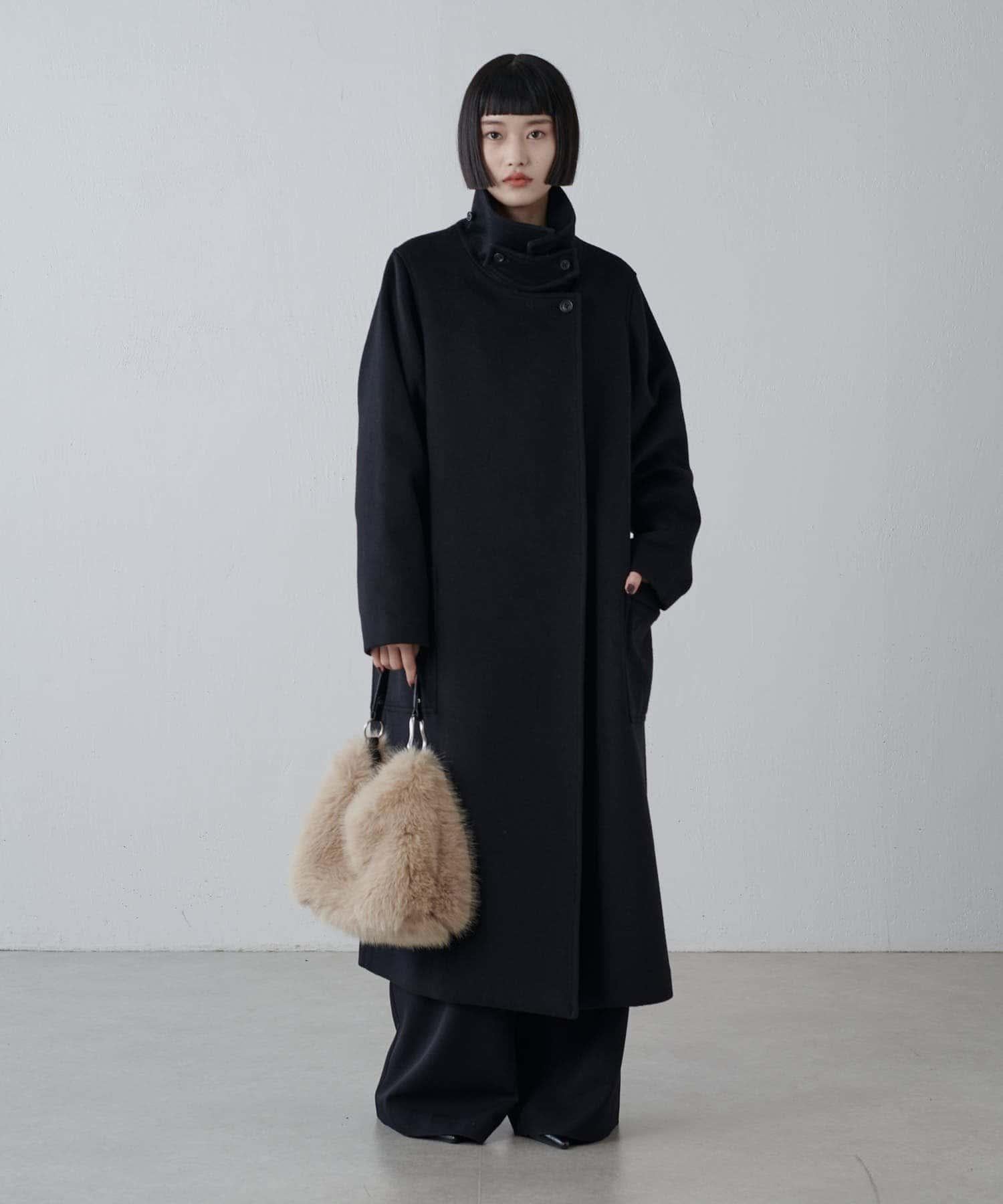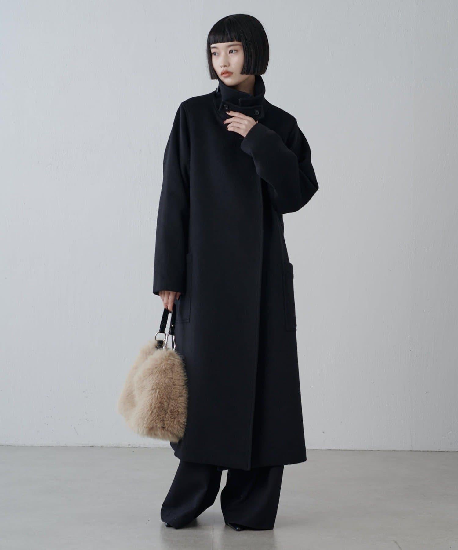 將領子部分豎起,繫上下巴帶,還可以當做高領大衣使用。
