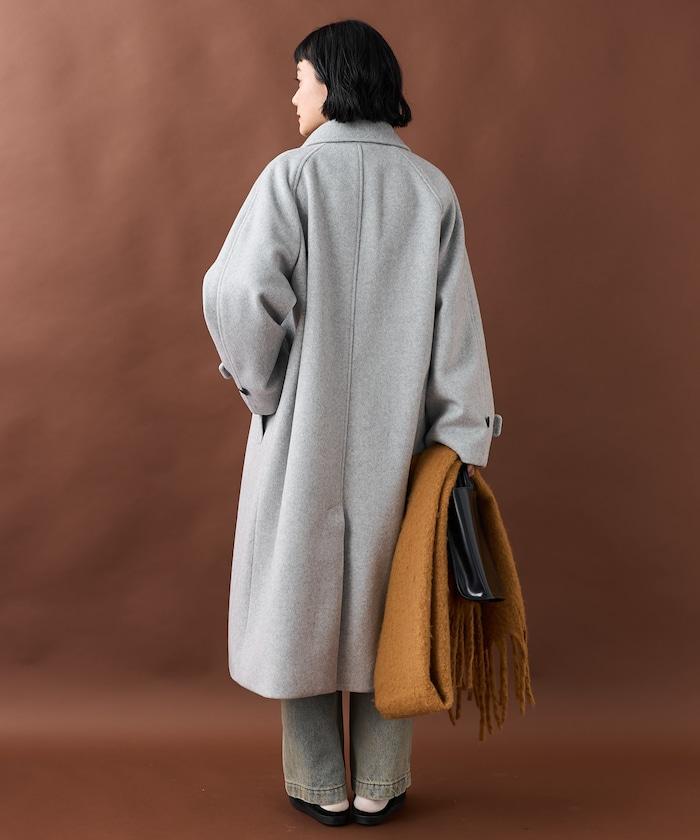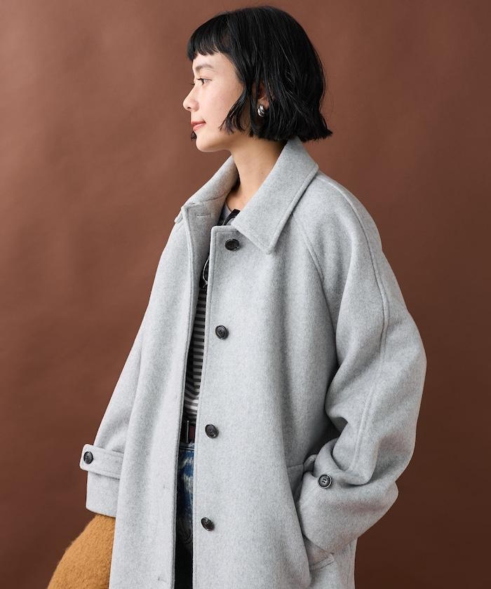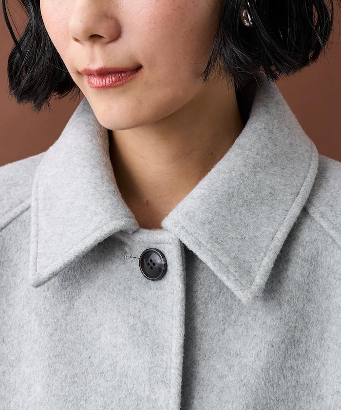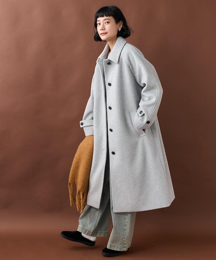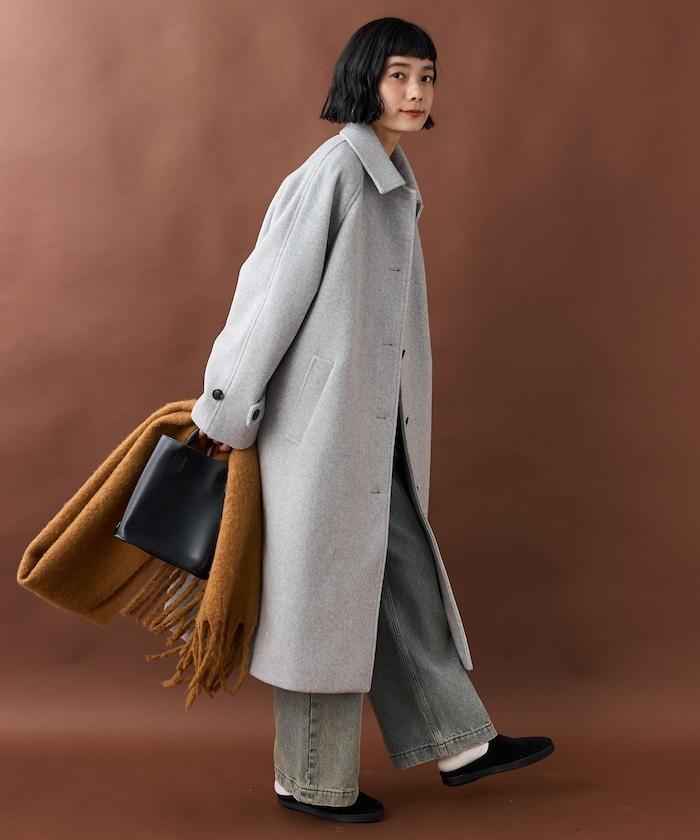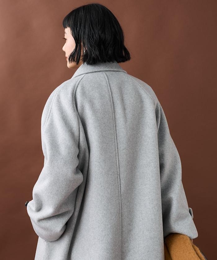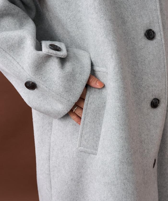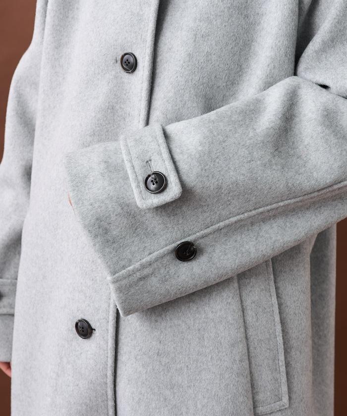 不鏽鋼領長款大衣,設計簡潔,上班下班均可穿著。