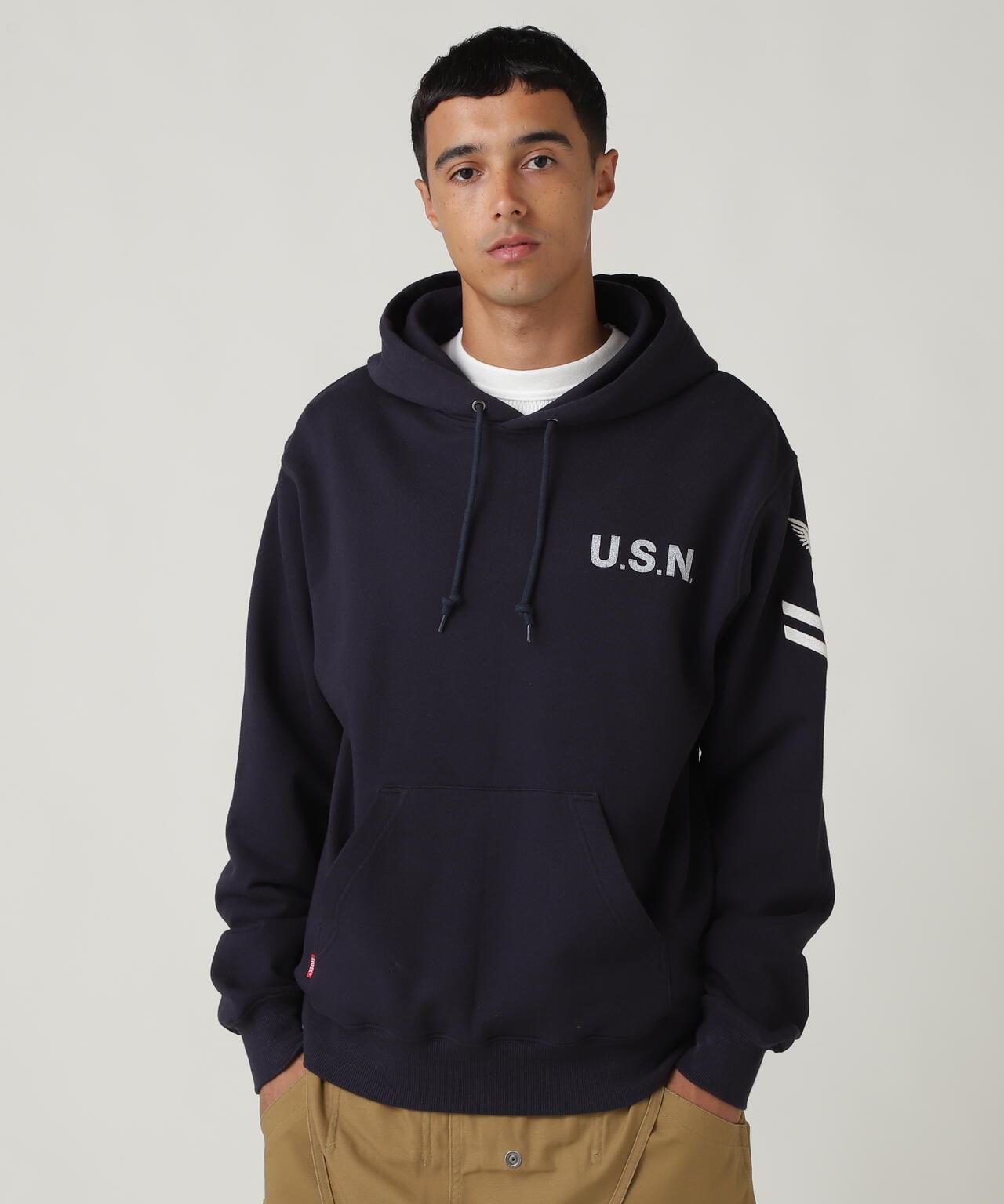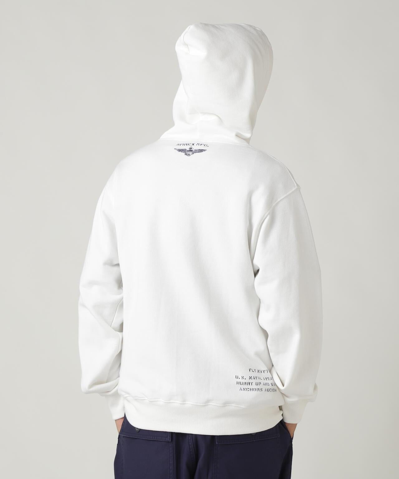 NAVAL PULLOVER PARKER / AVIREX / AVIREX 產品詳情 - 套頭連帽外套,採用舒適的100%純棉面料 - 在AVIREX中廣受歡迎的美國海軍圖案 - 白色、深藍色、灰色。連帽外套有白色、深藍色和灰色三種基本色可供選擇,厚度適中,既可單穿,也可作為外衣的內層。Avirex 起源於軍事領域,以功能性設計所散發出的獨特美感為基礎。其獨特的外觀曾出現在電影《印第安人》中。