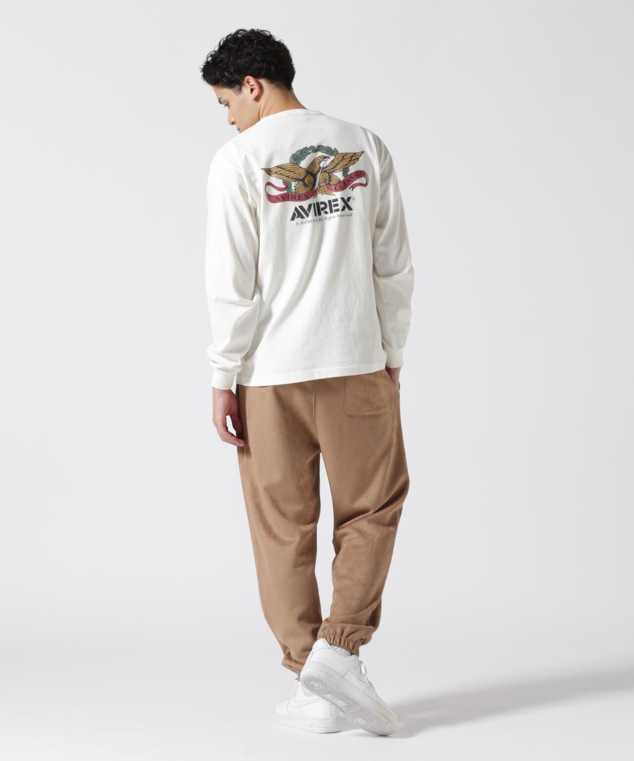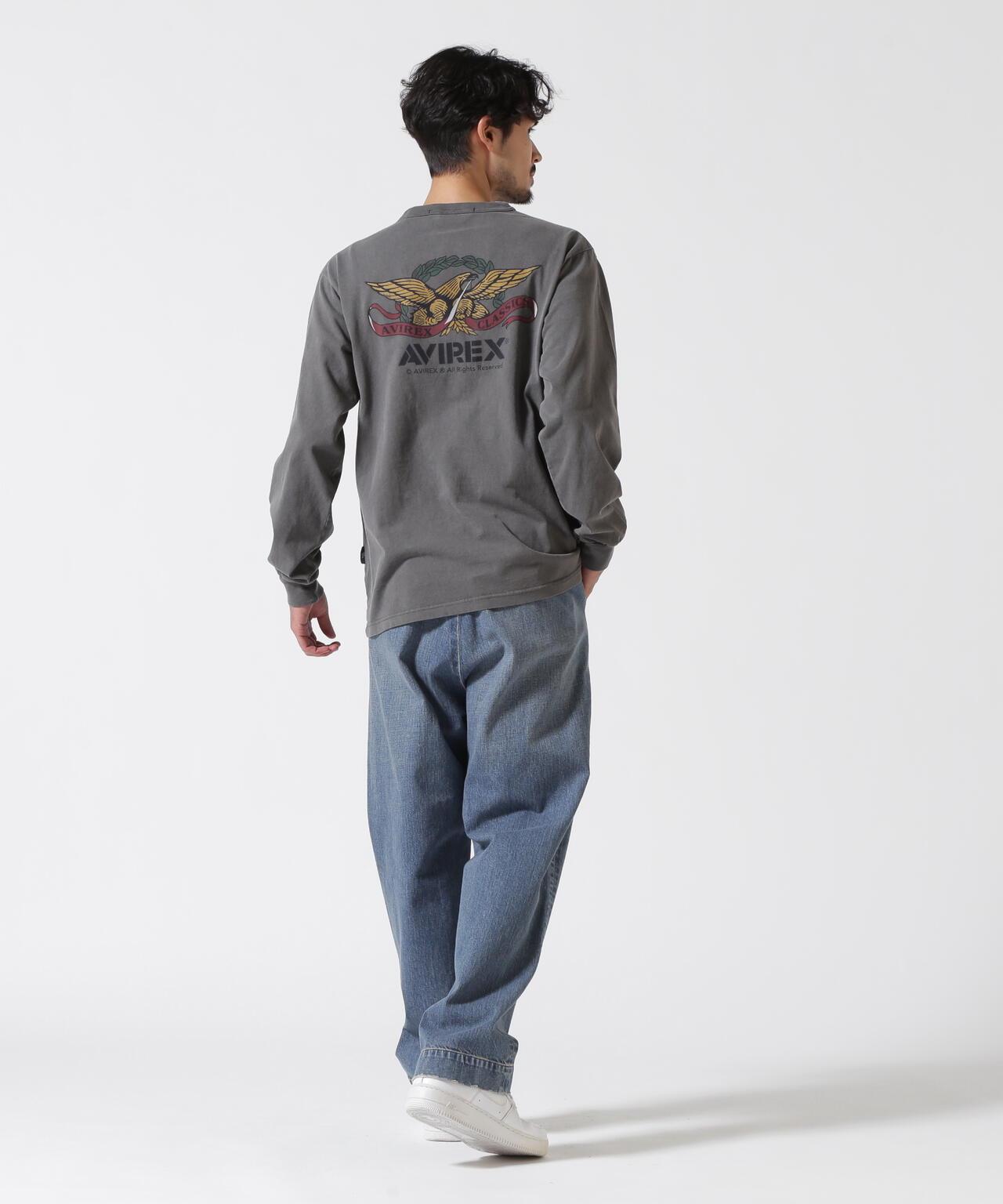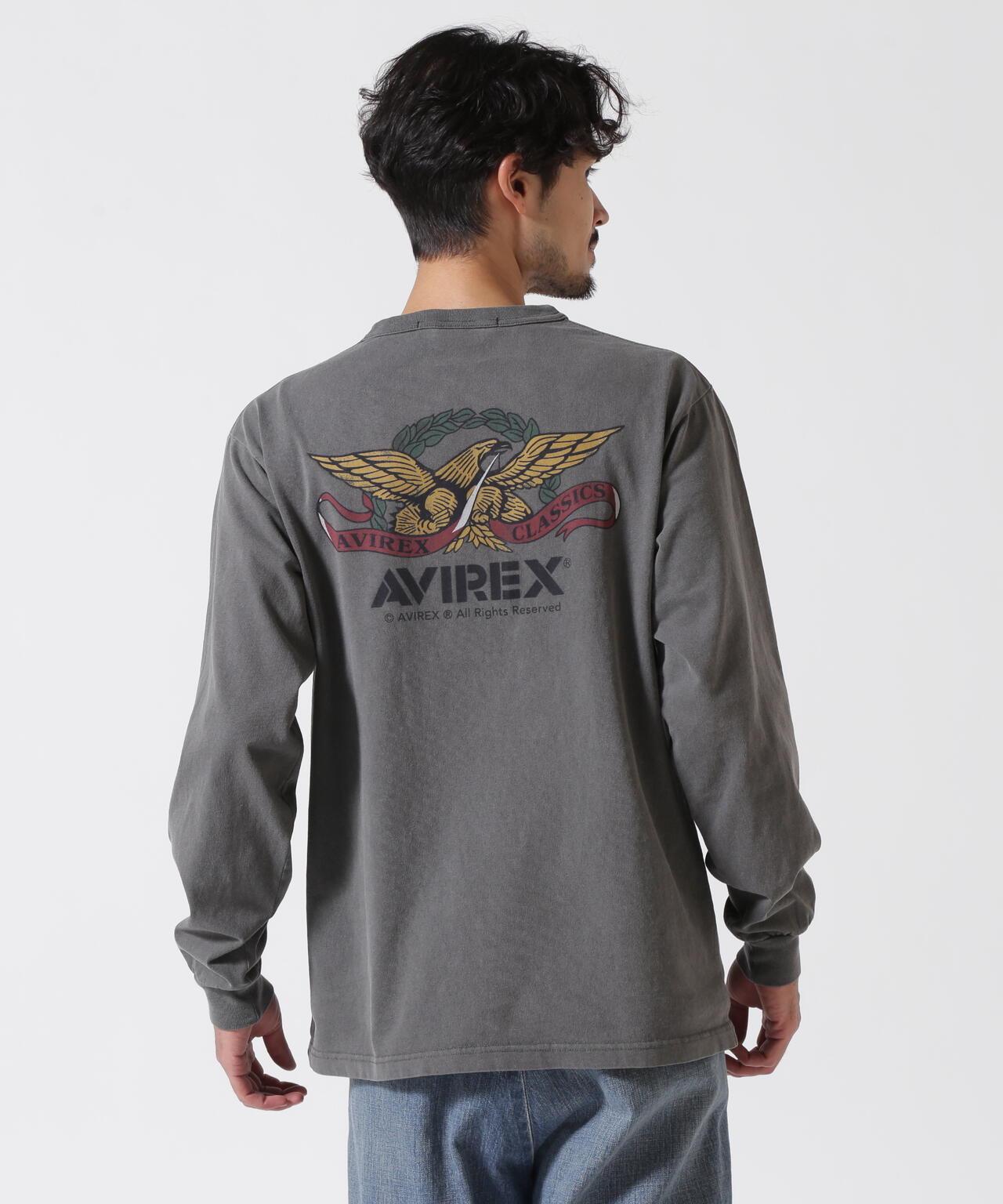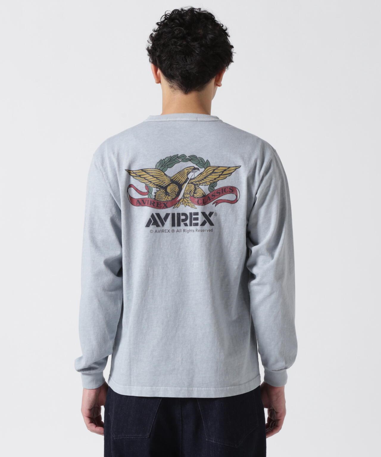 AVIREX官方旗艦店] 產品名稱:褪色水洗復古標籤鷹圖案T恤 產品詳情 - 具有AVIREX典型褪色感的長袖T恤 - 印有80、90年代使用的鷹圖案標籤設計 - 添加顏料的特殊染色工藝採用面料特有的色澤和獨特的手感,勻稱的輪廓 [AVIREX] 成立於 1975 年,當時是美國空軍的承包商,通過供應飛行夾克,其知名度大幅提升。Avirex 源自軍事領域,以功能性設計所散發出的獨特美感為基礎。其獨特的外觀曾出現在電影《奪寶奇兵》、《蝙蝠俠:大破天幕殺機》、《諜影重重》等中。