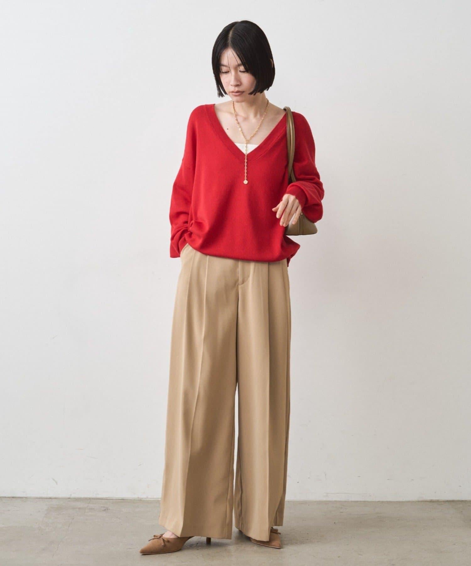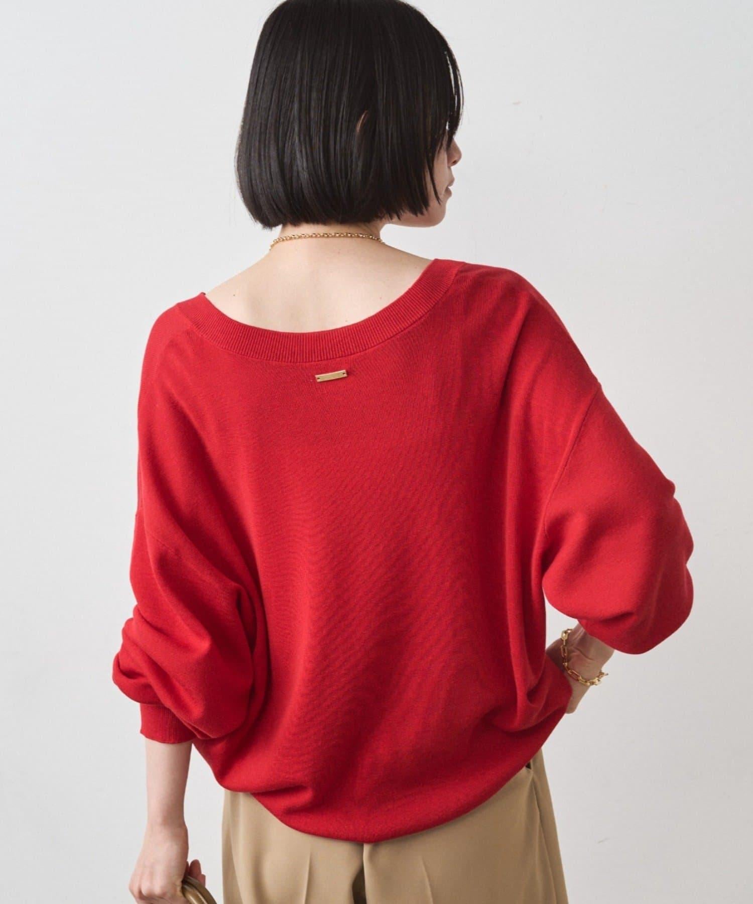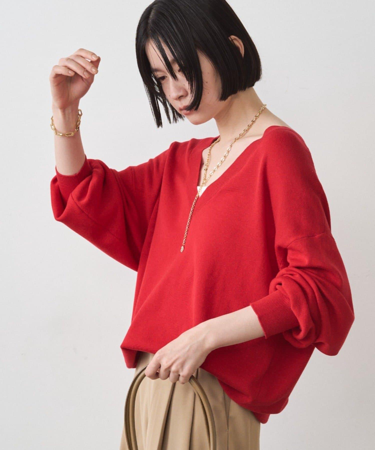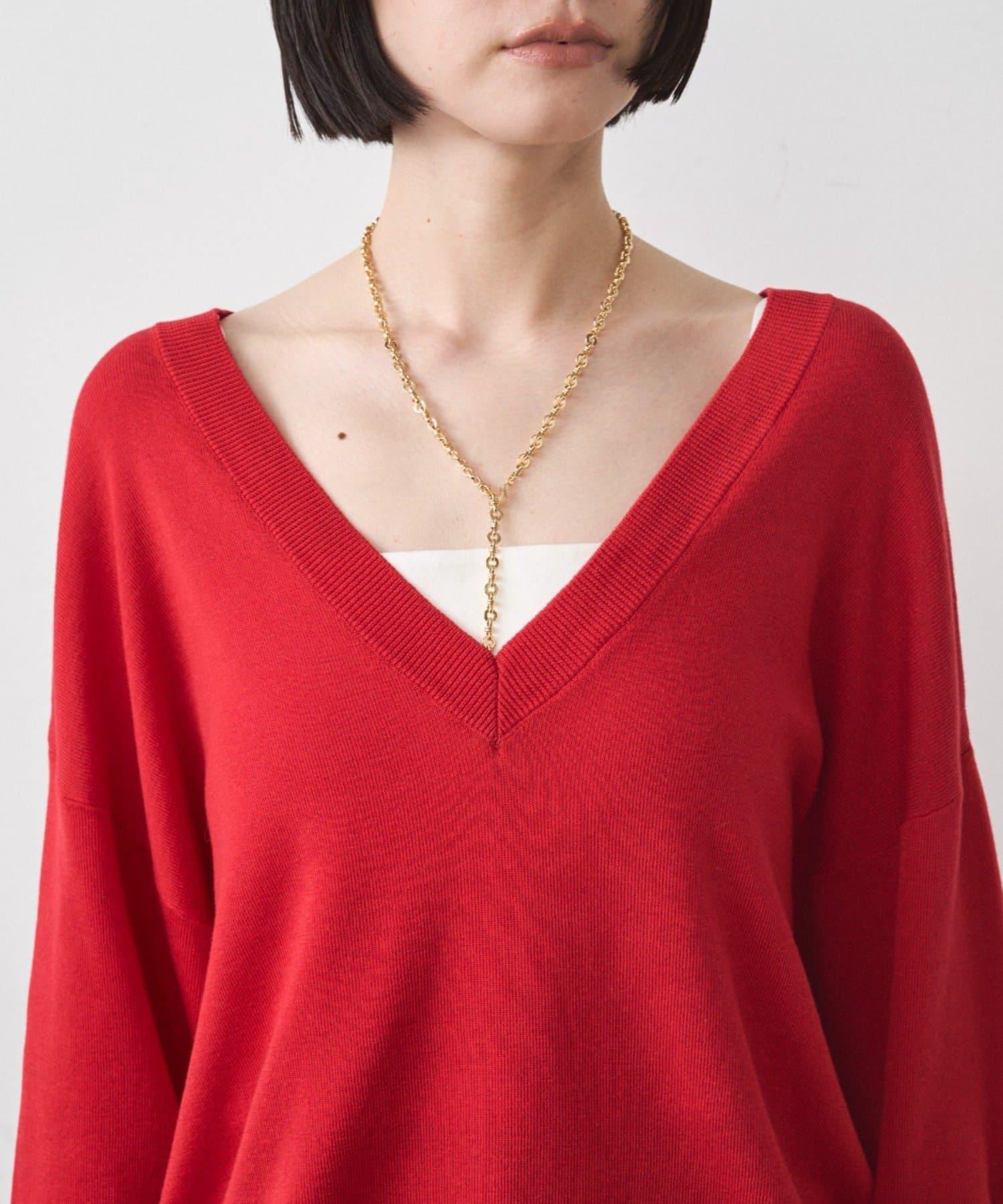 這款針織上衣採用深 V 領設計,能很好地突出肩部線條。