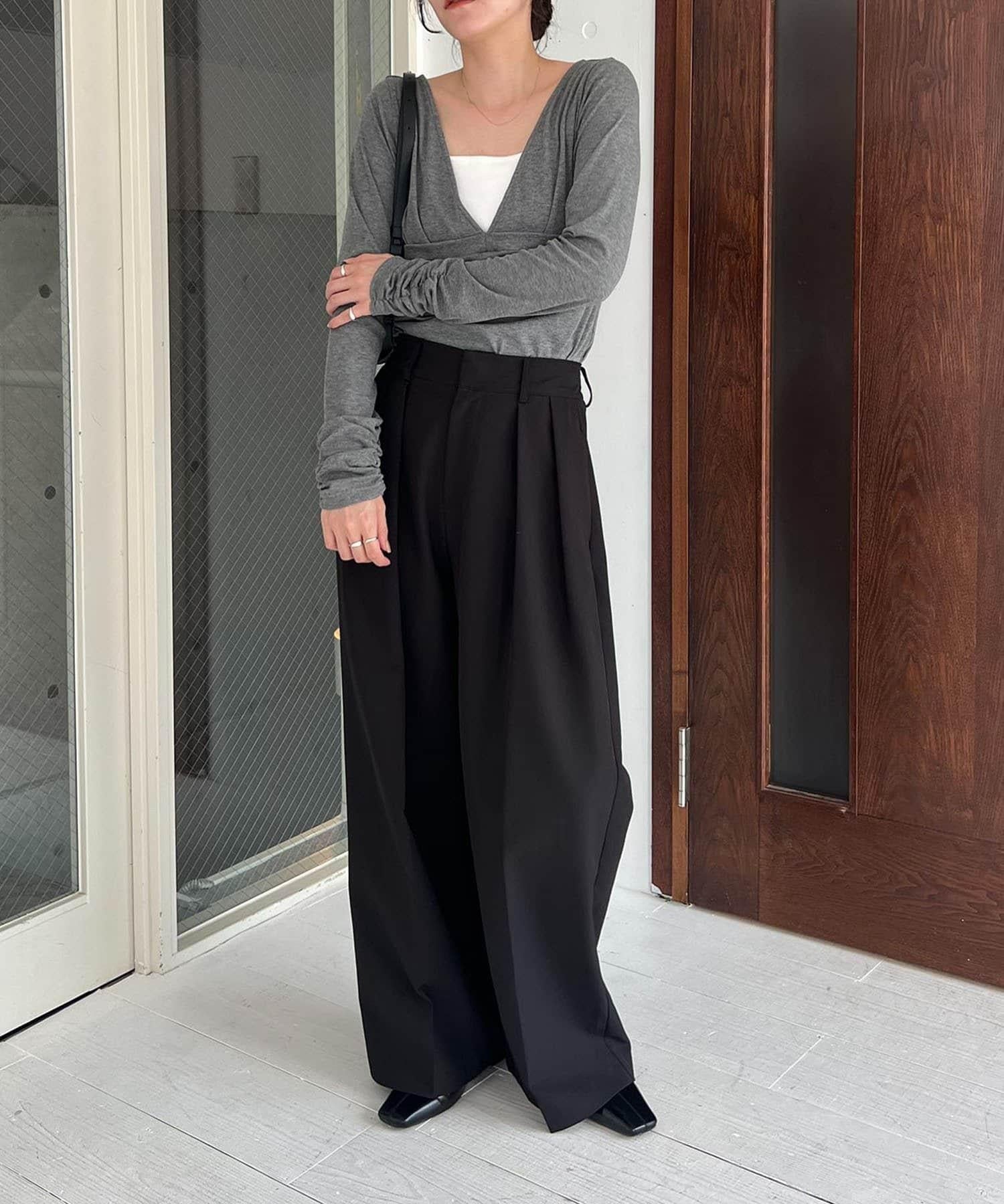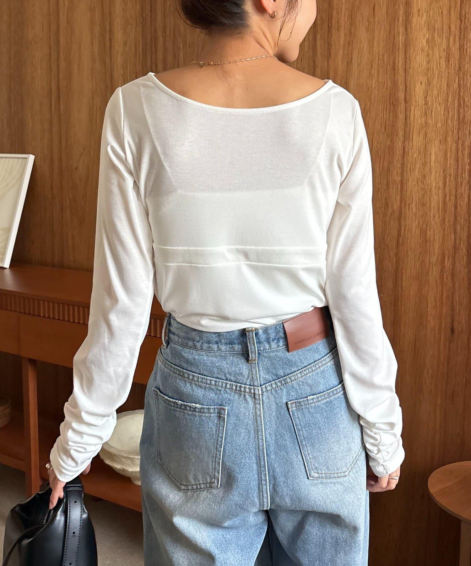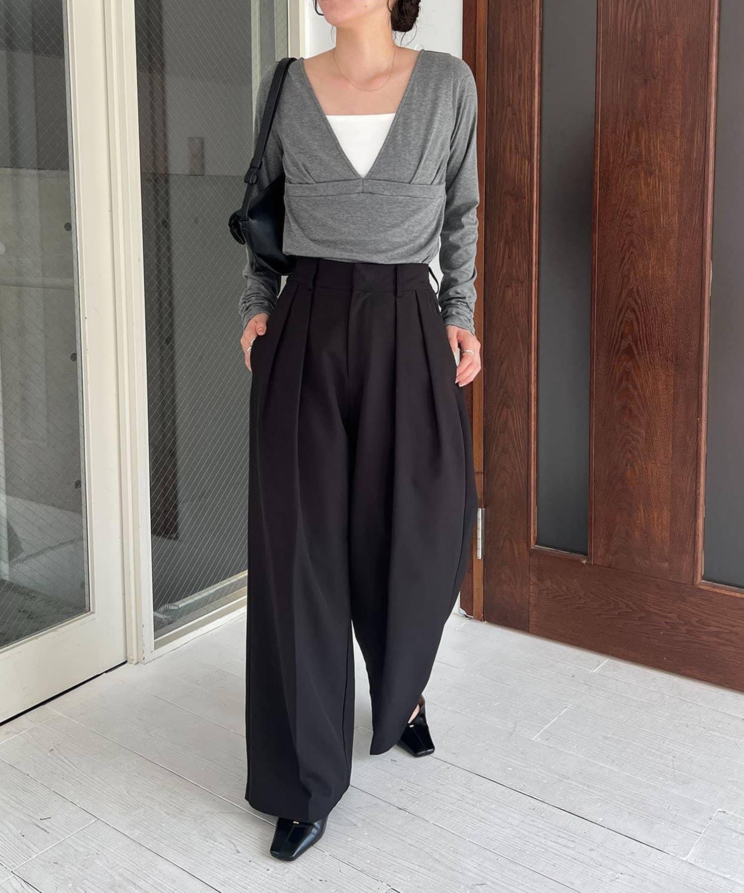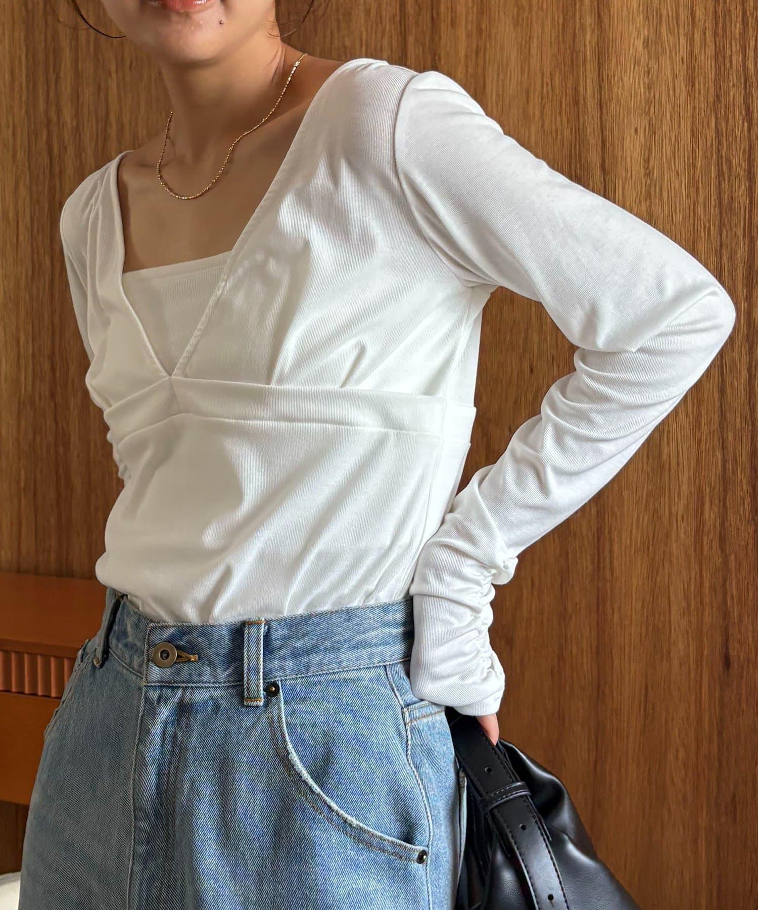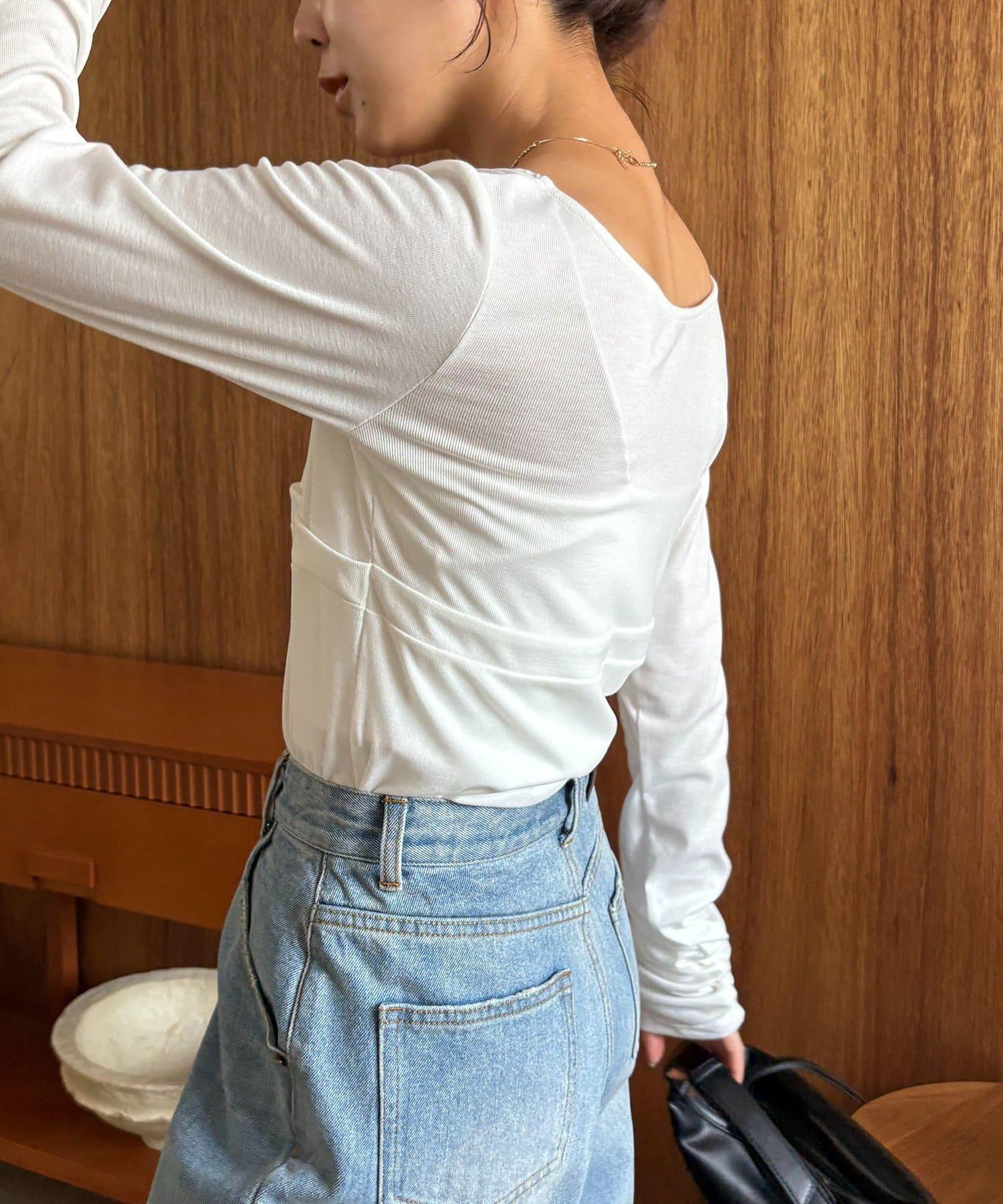 胸前下方的剪裁將視線上移,營造出時尚效果。