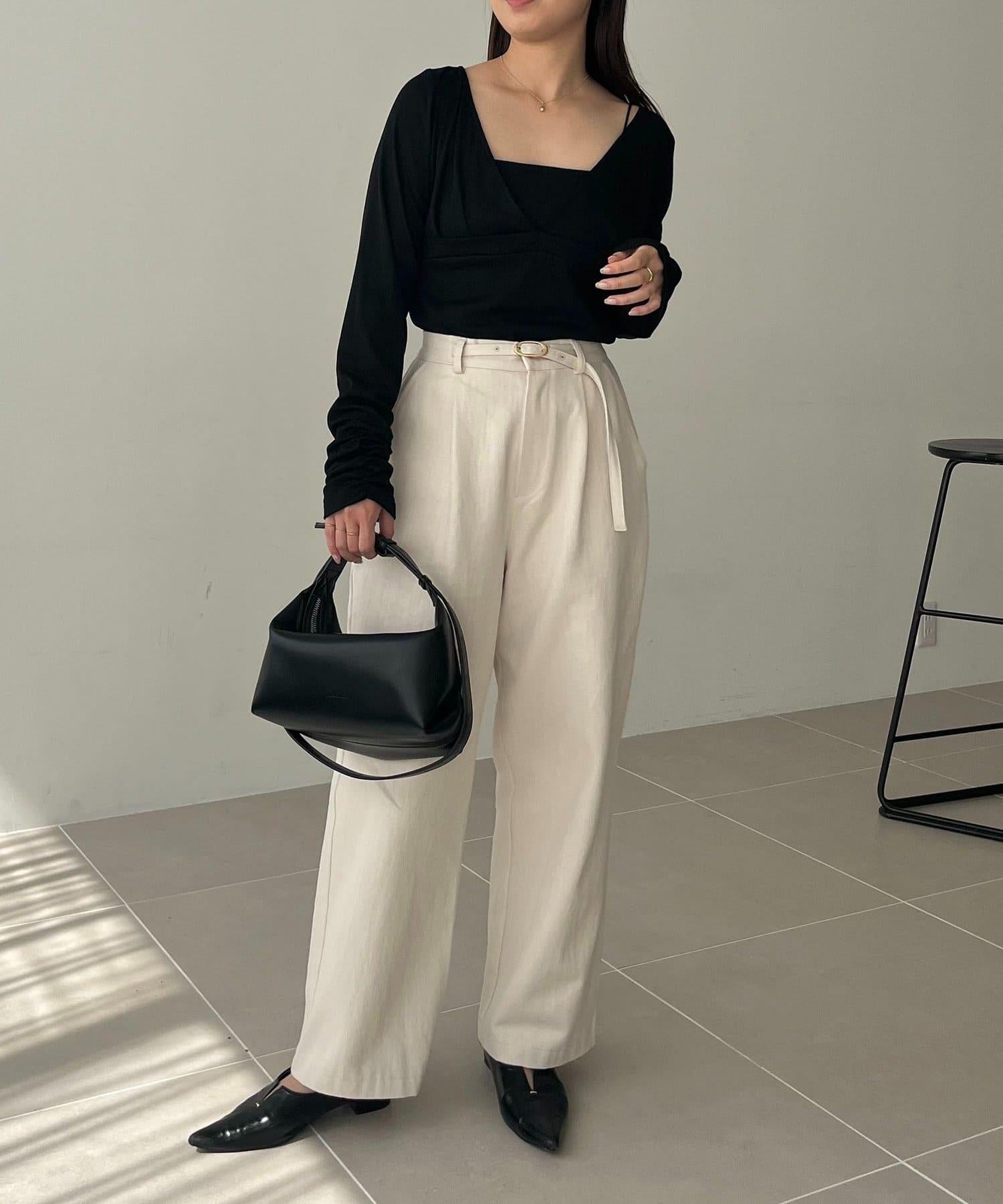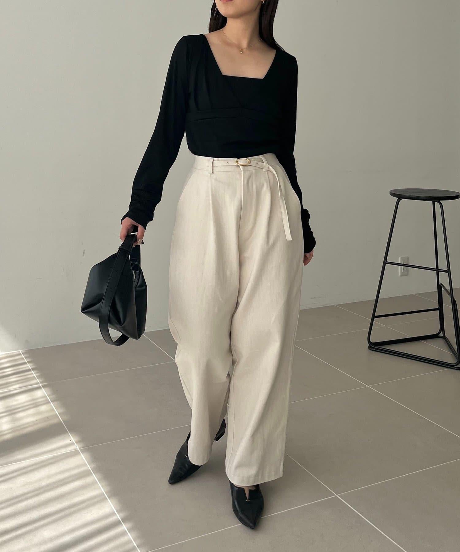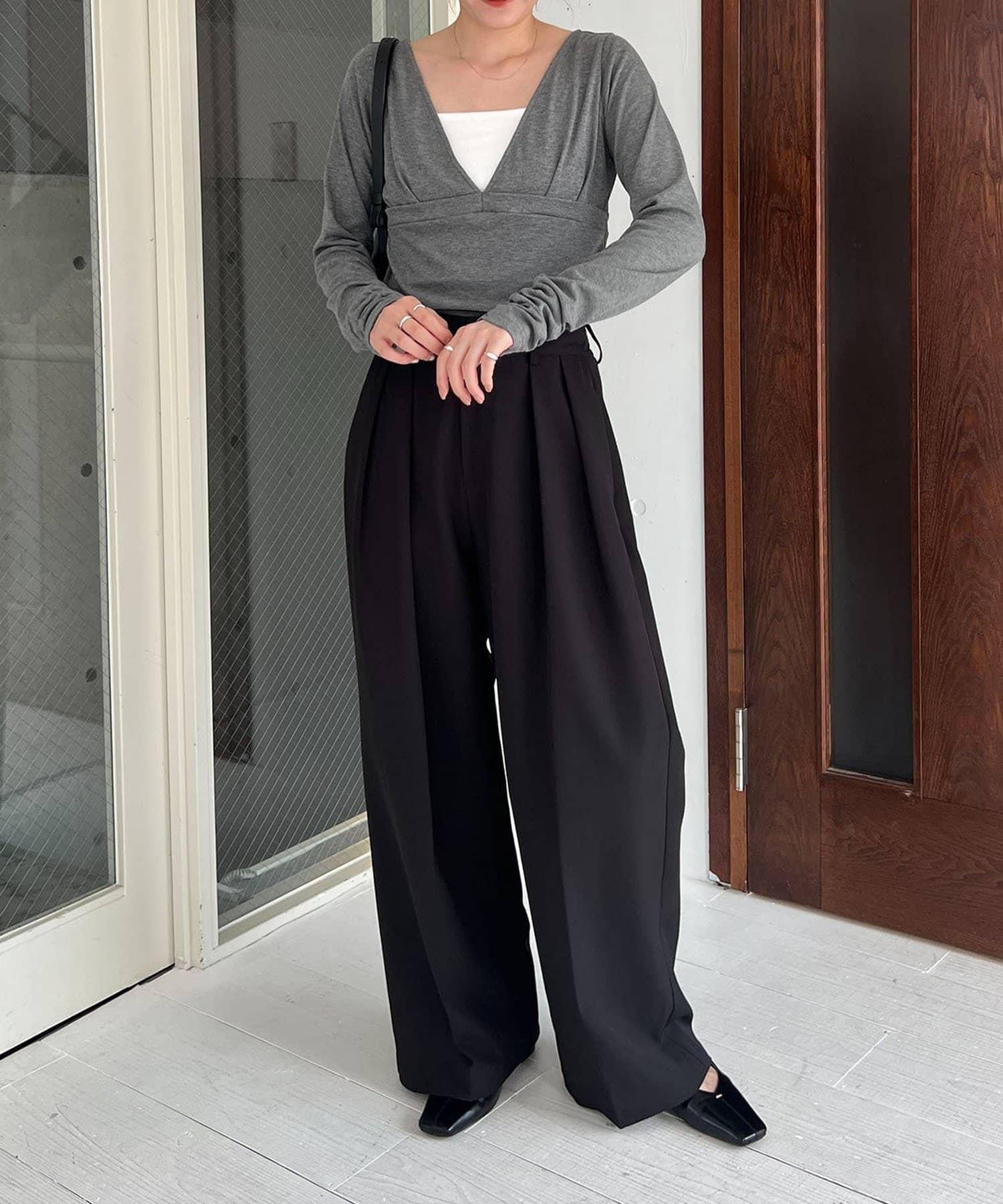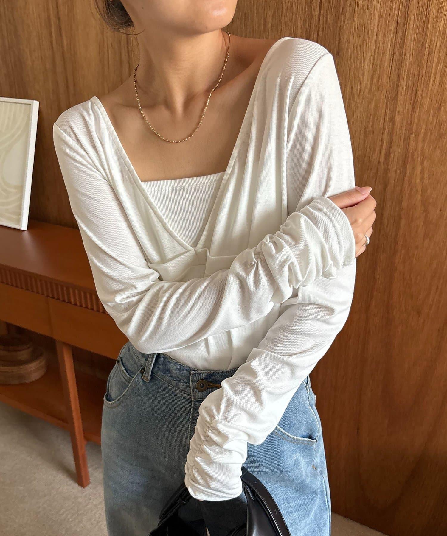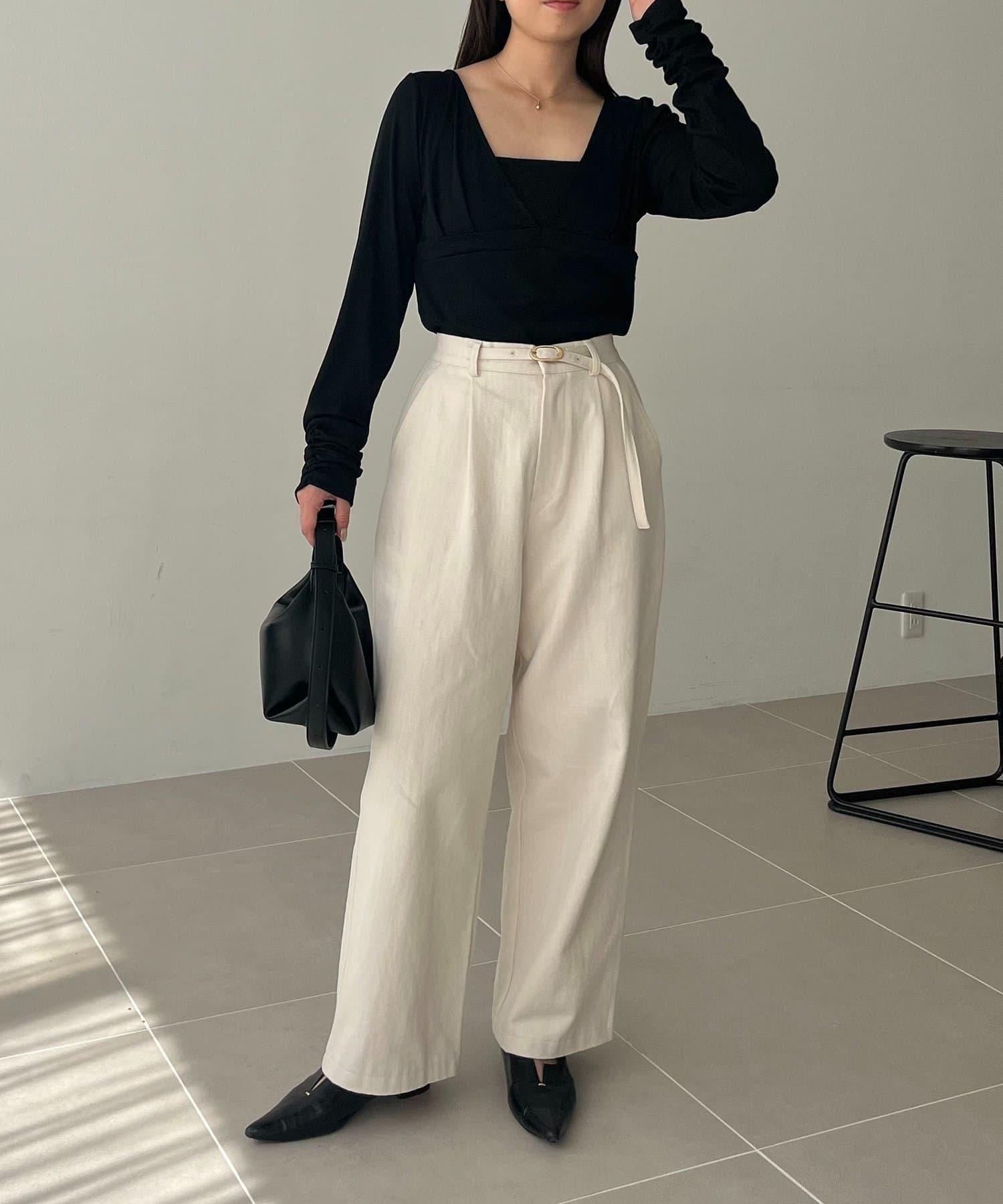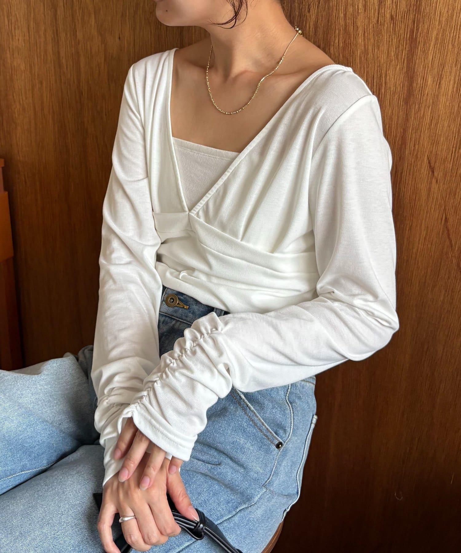 胸前下方的剪裁將視線上移,營造出時尚效果。