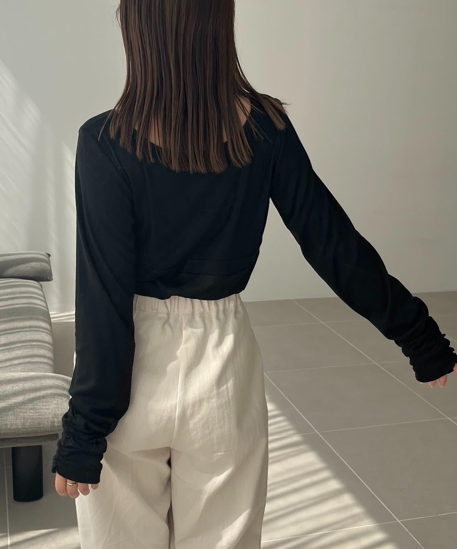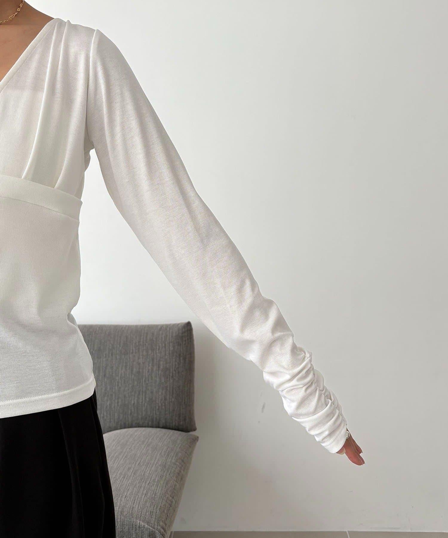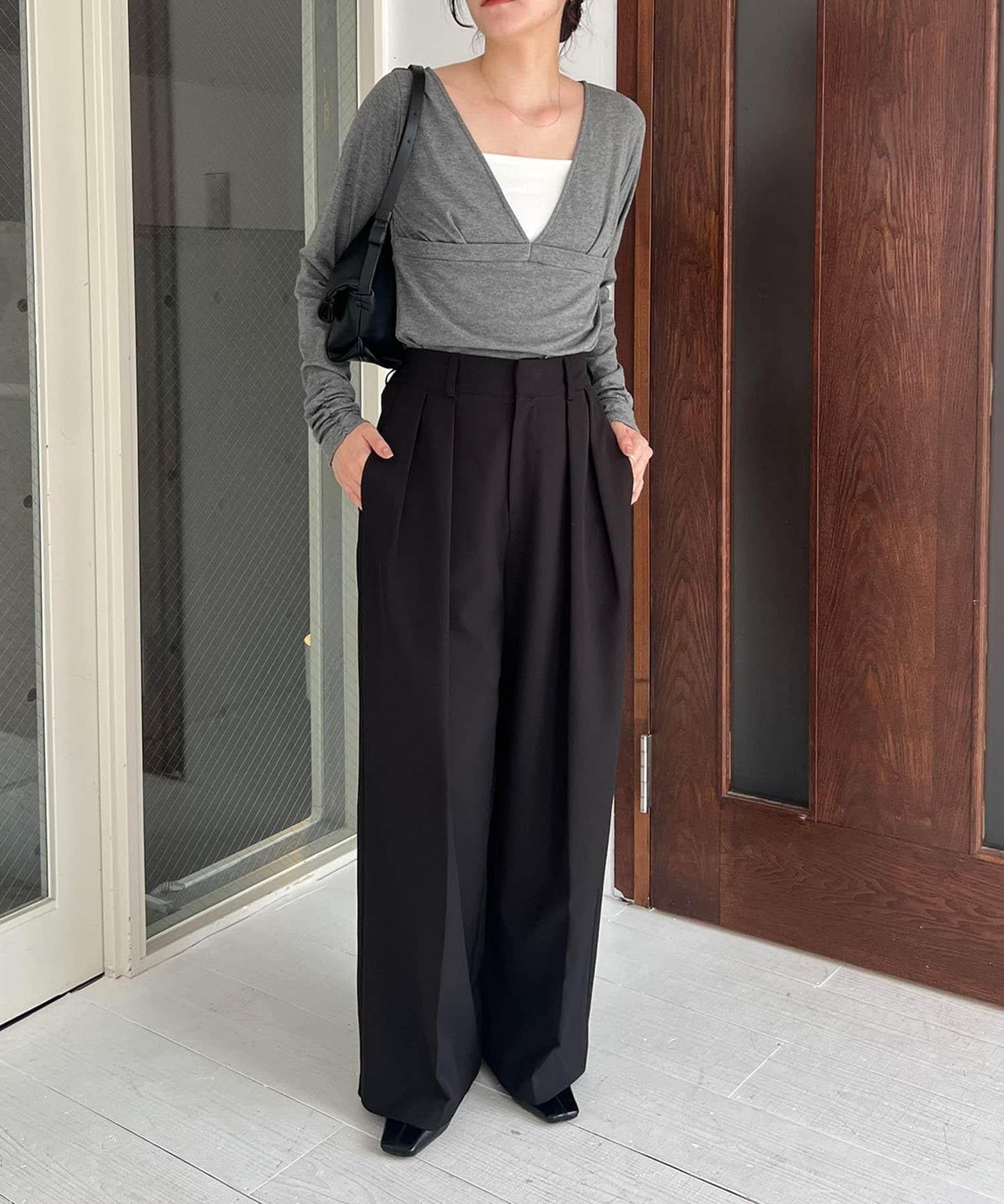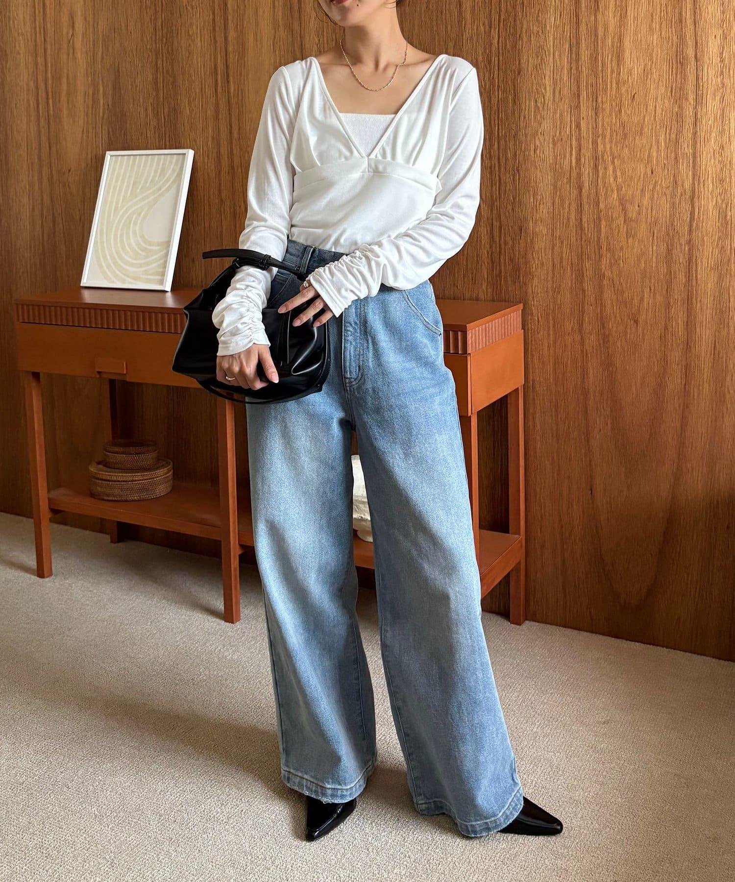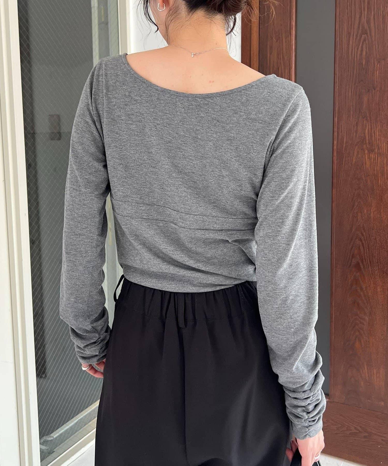 胸前下方的剪裁將視線上移,營造出時尚效果。