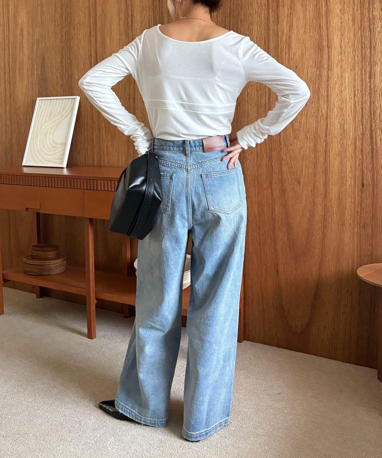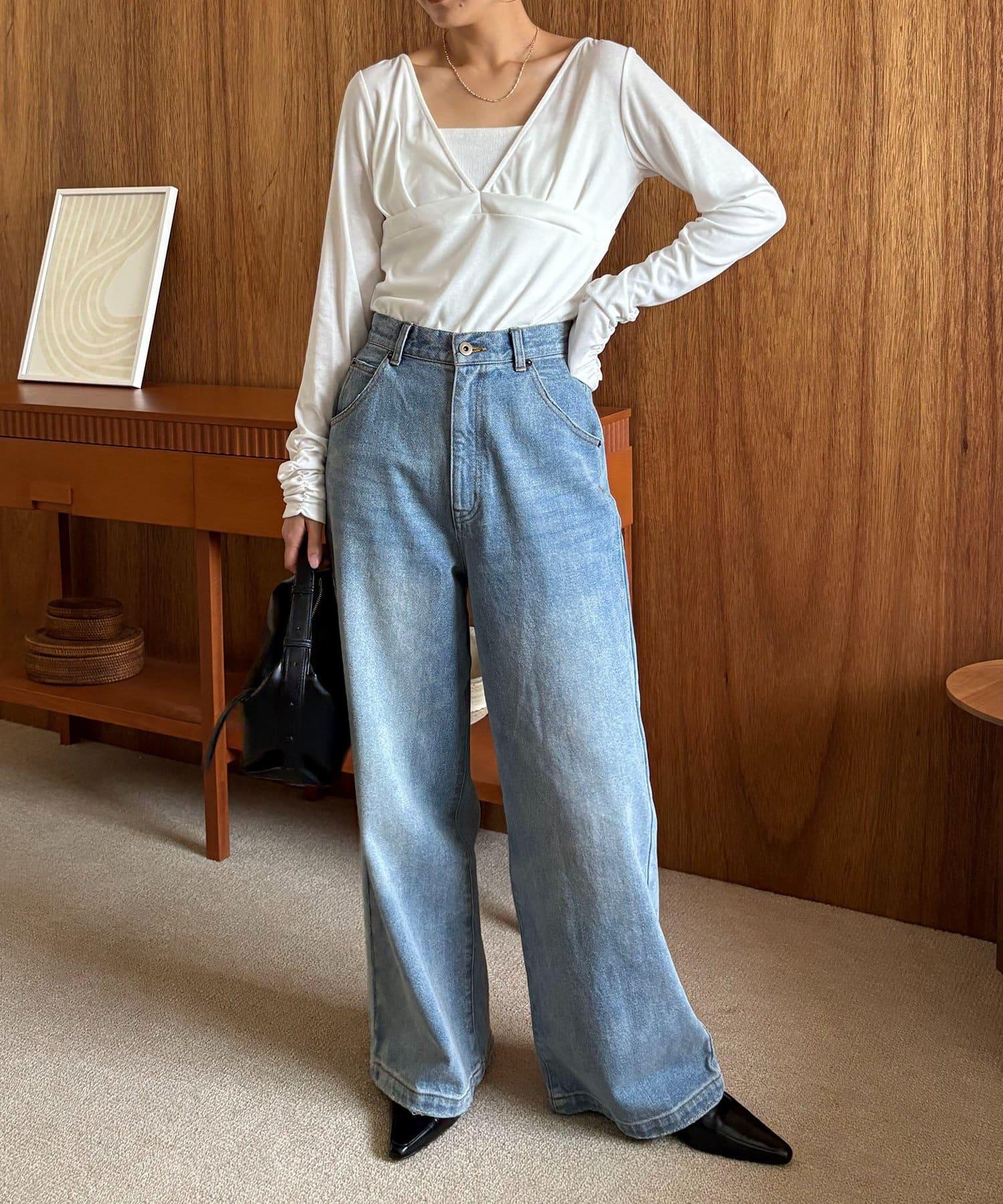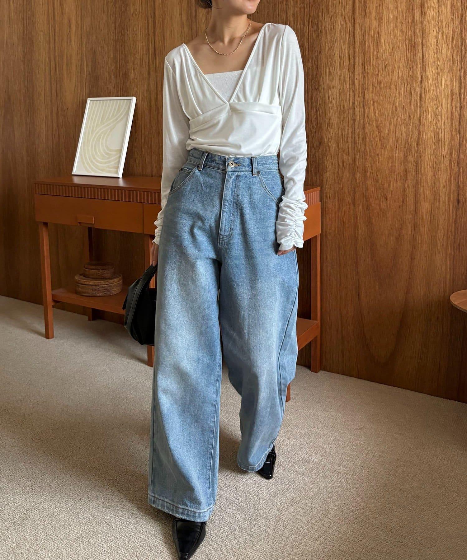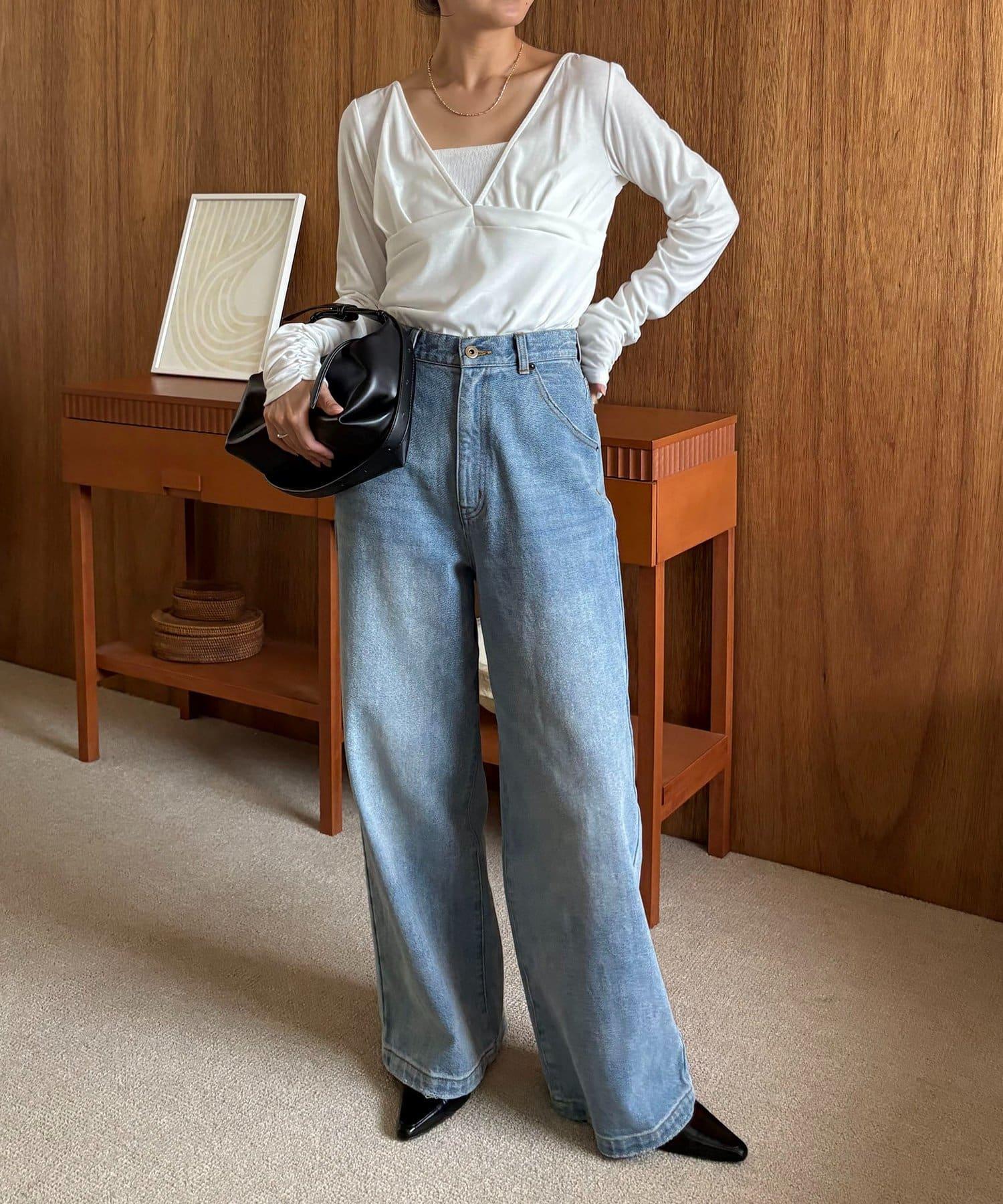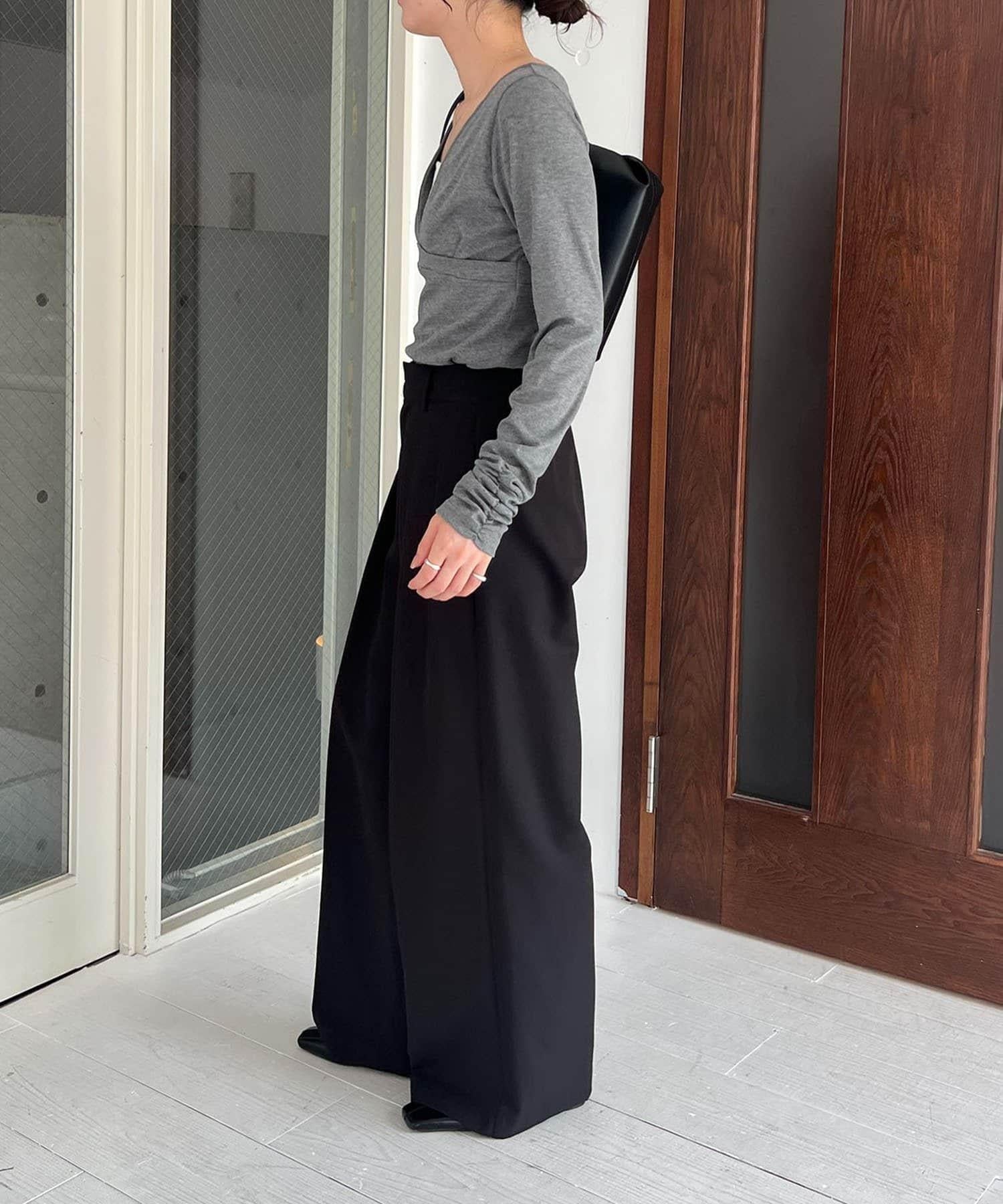 胸前下方的剪裁將視線上移,營造出時尚效果。