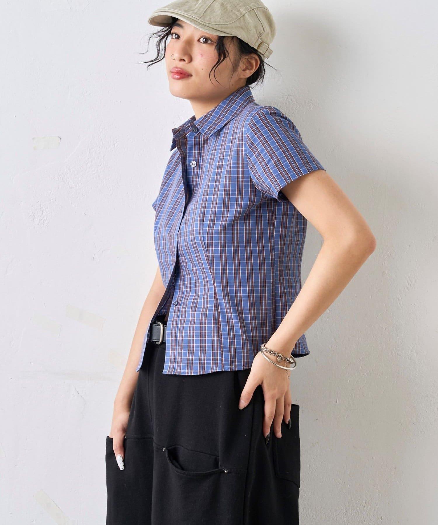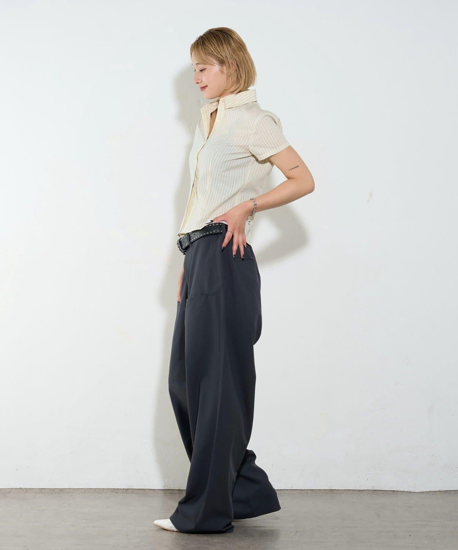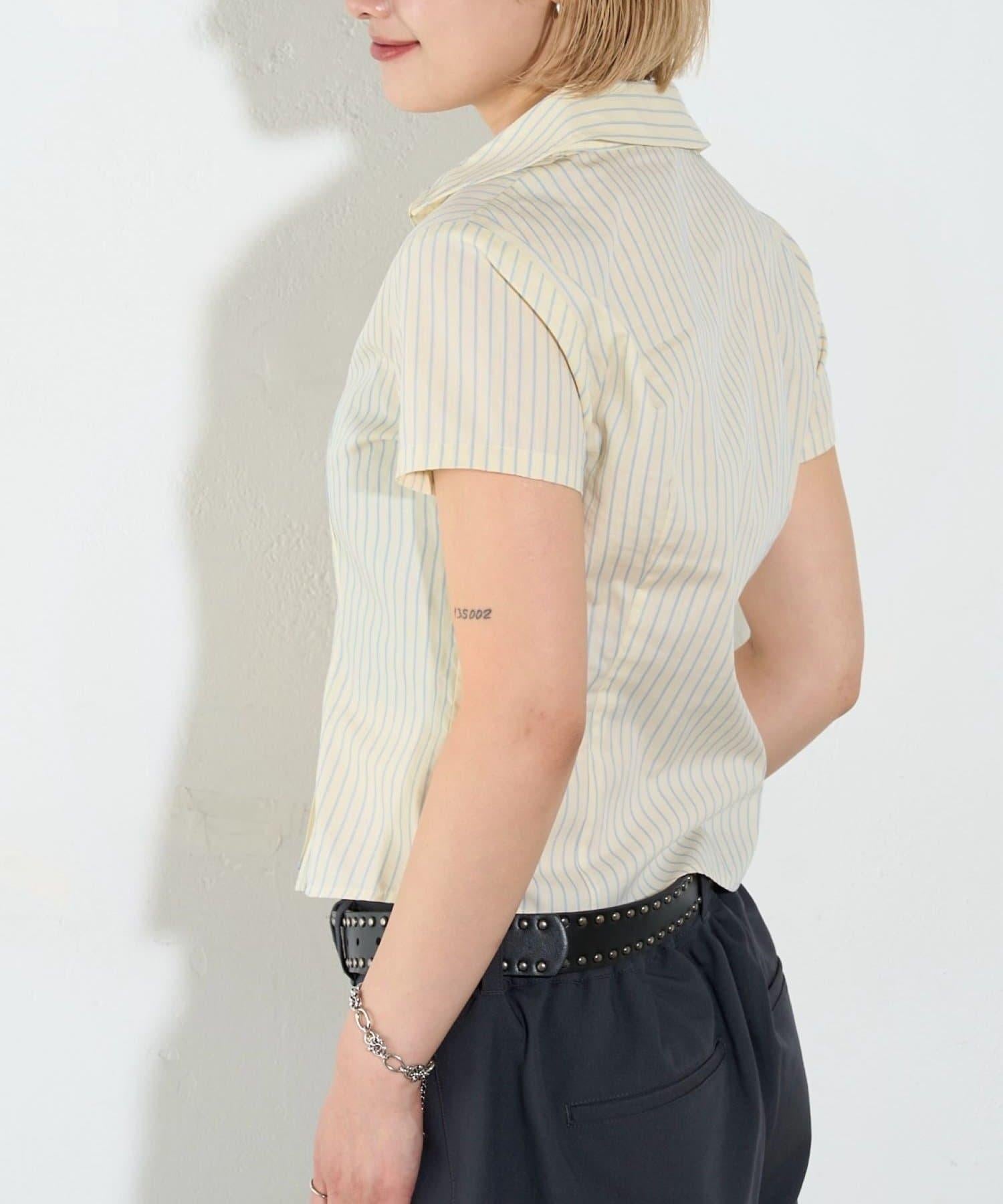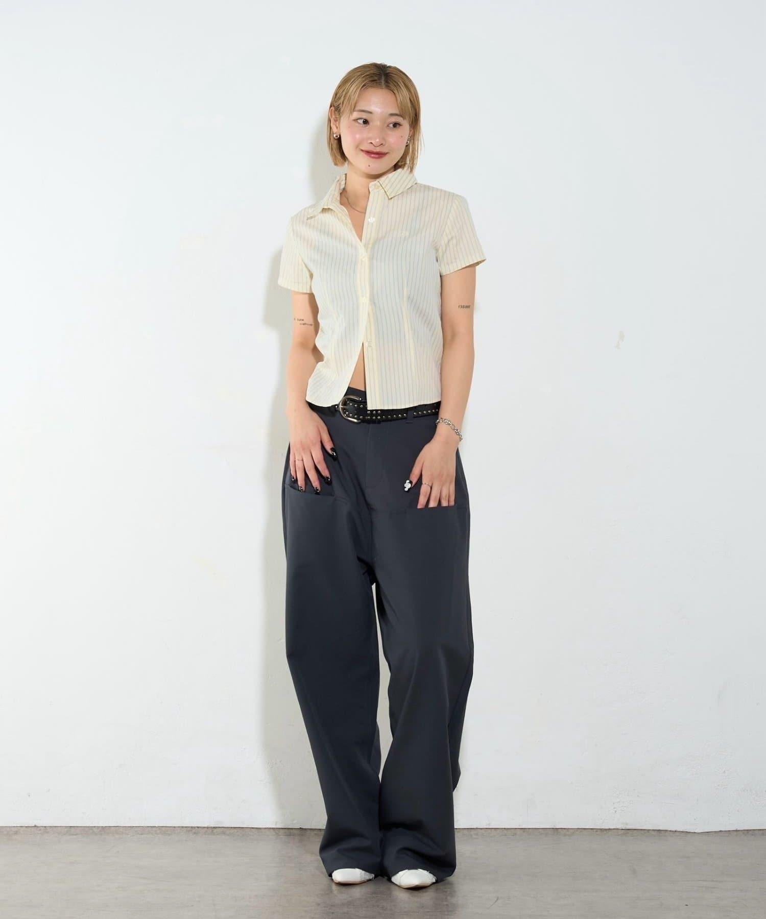襯衫側面有褶襉,並沿腰部設計,時尚感十足。