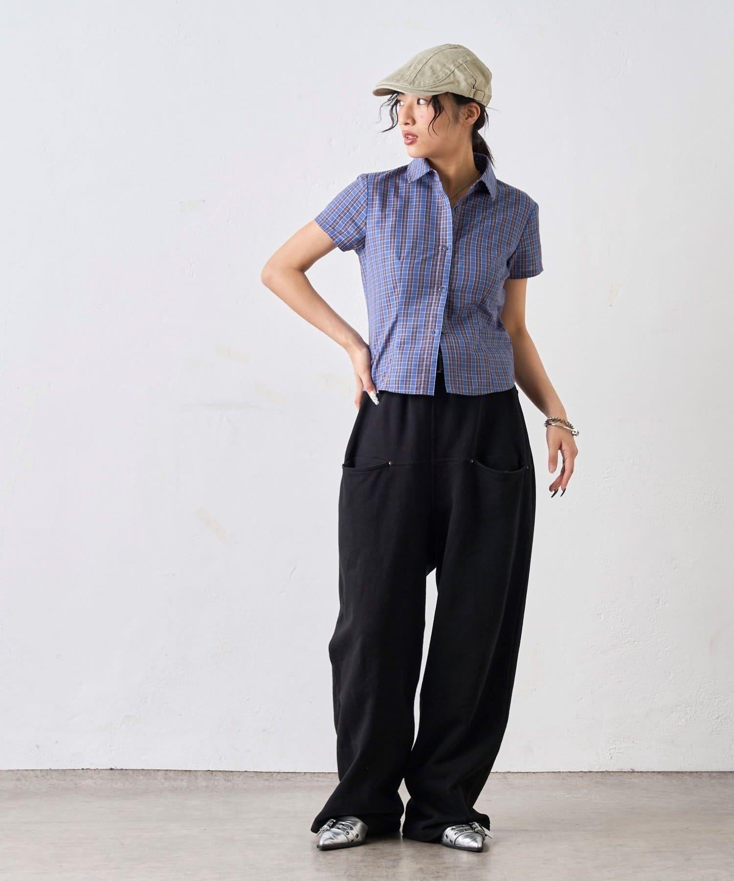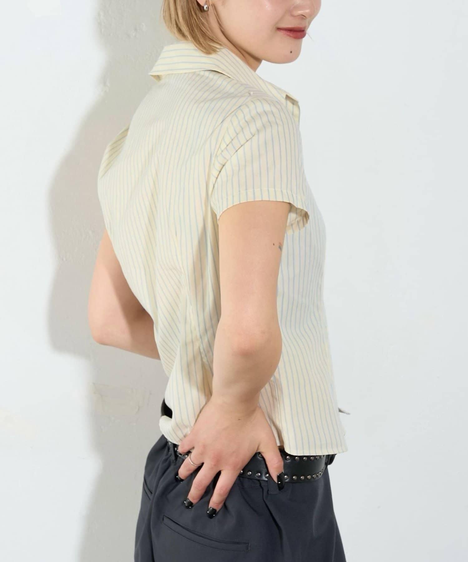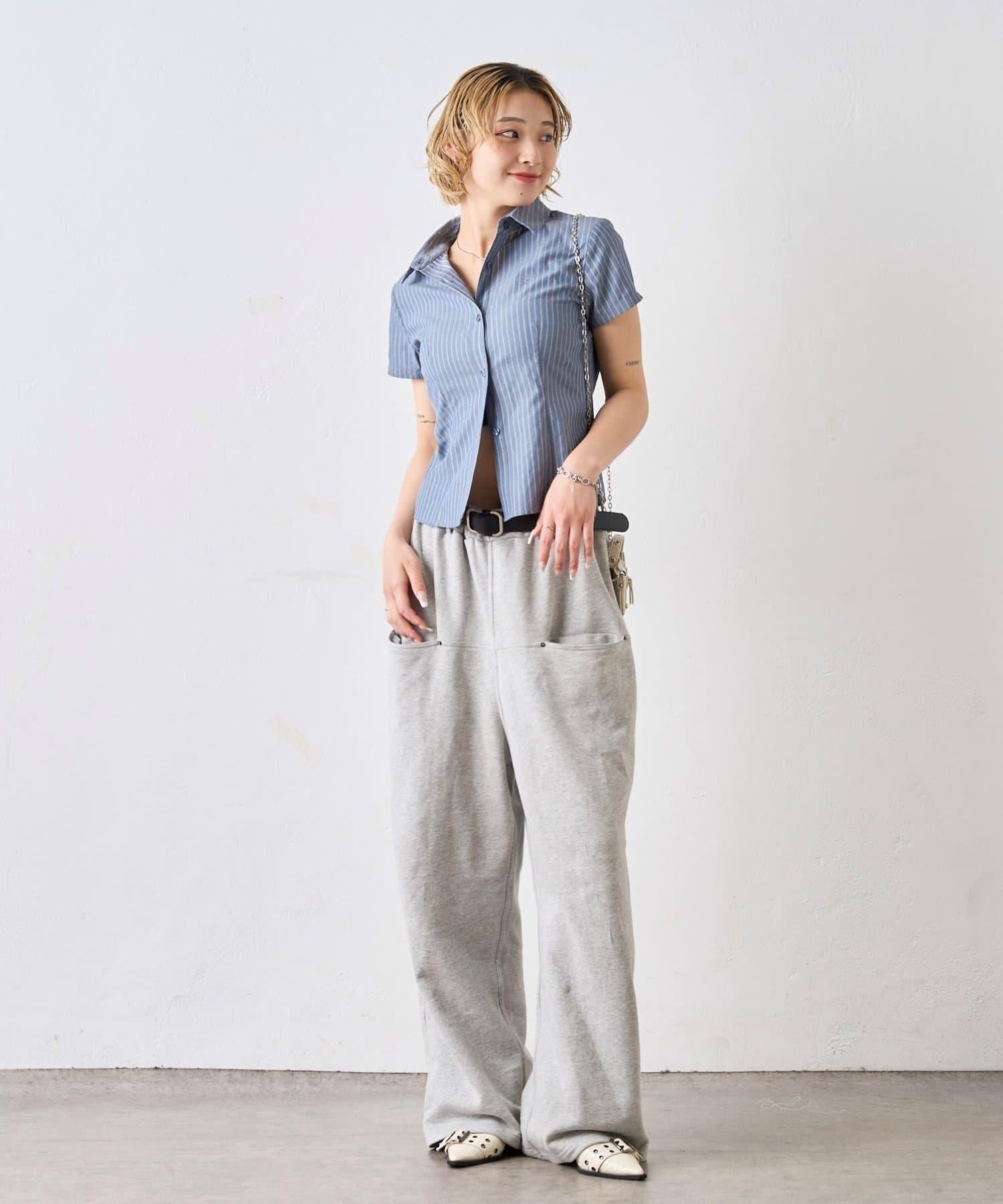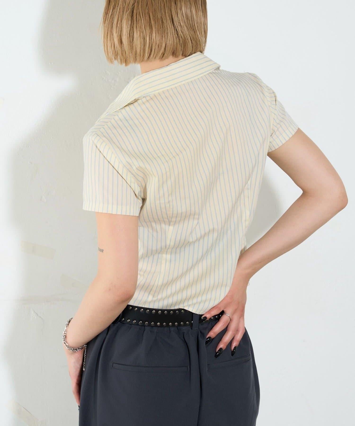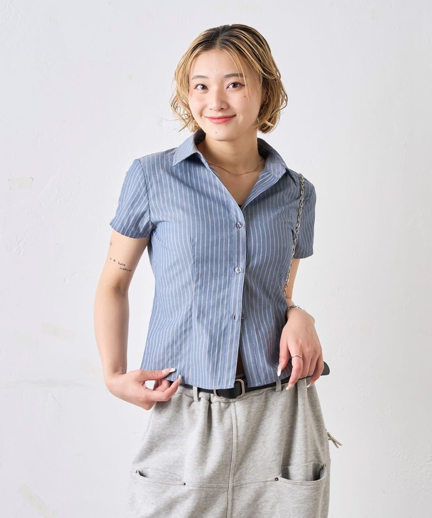 襯衫側面有褶襉,並沿腰部設計,時尚感十足。