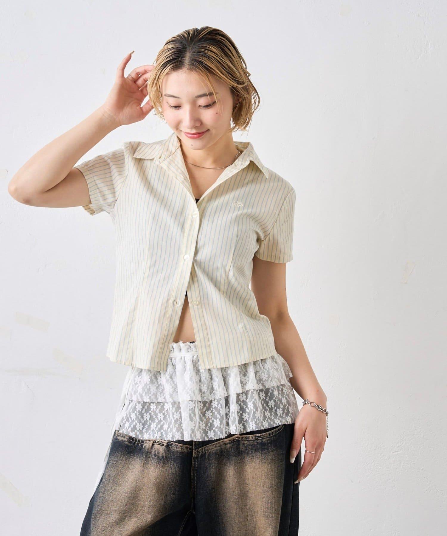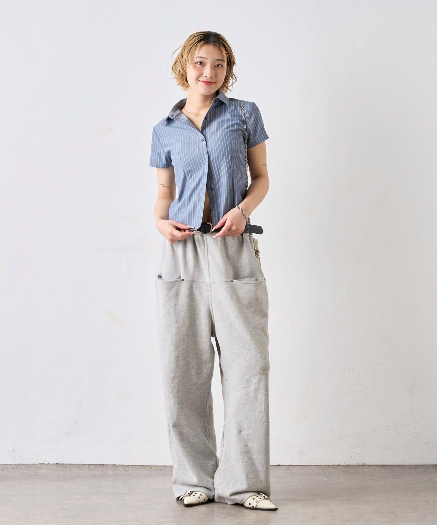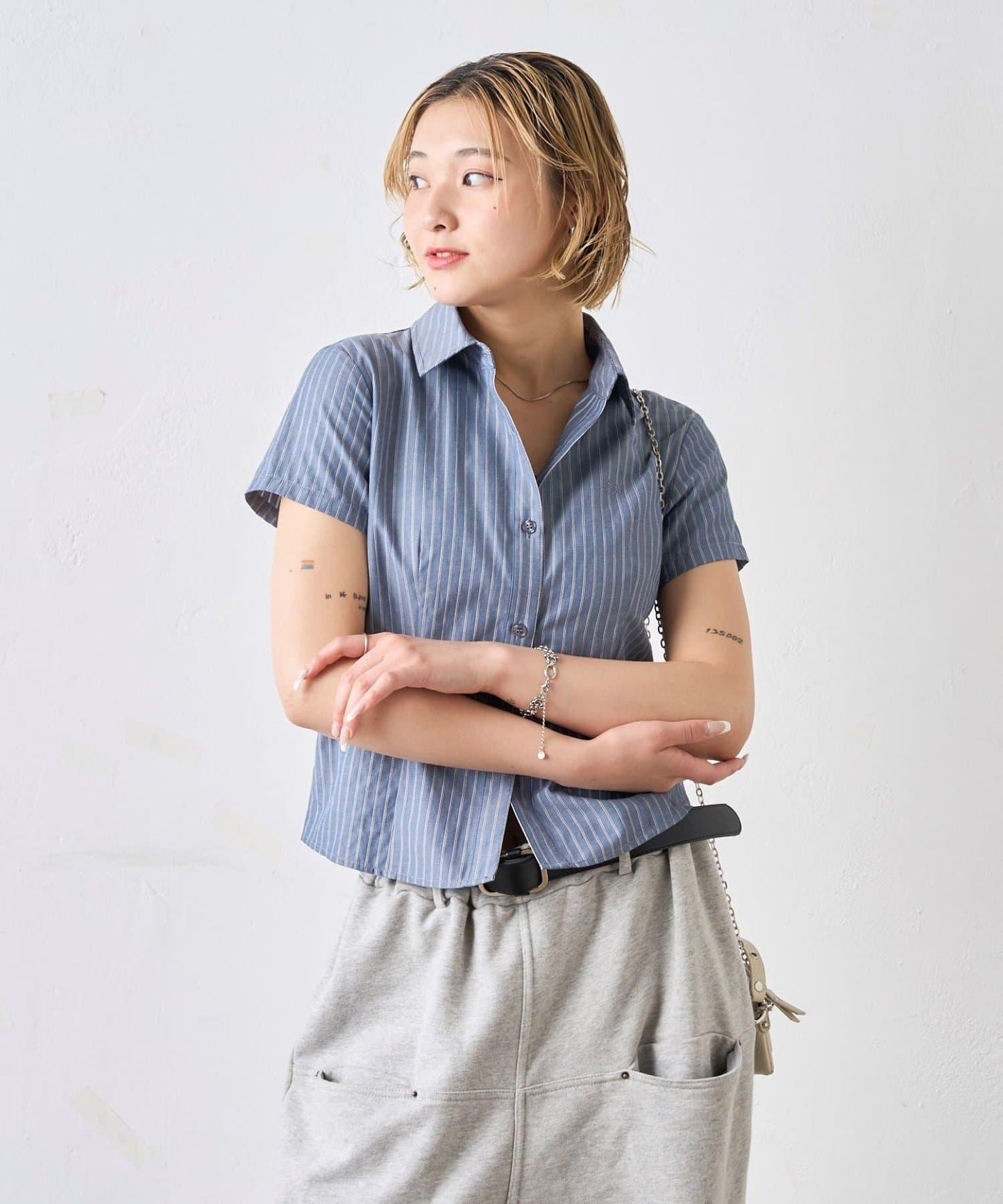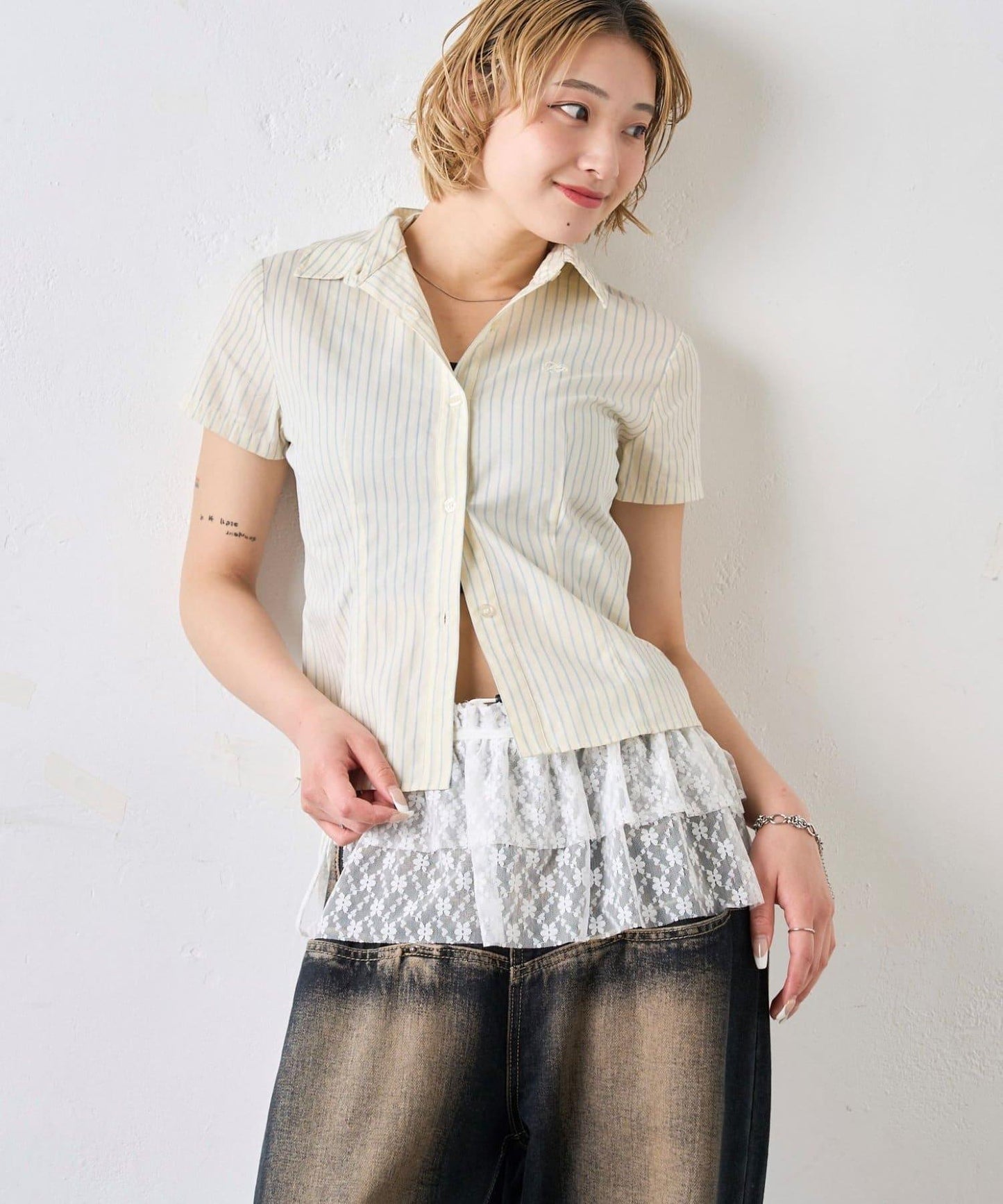 襯衫側面有褶襉,並沿腰部設計,時尚感十足。