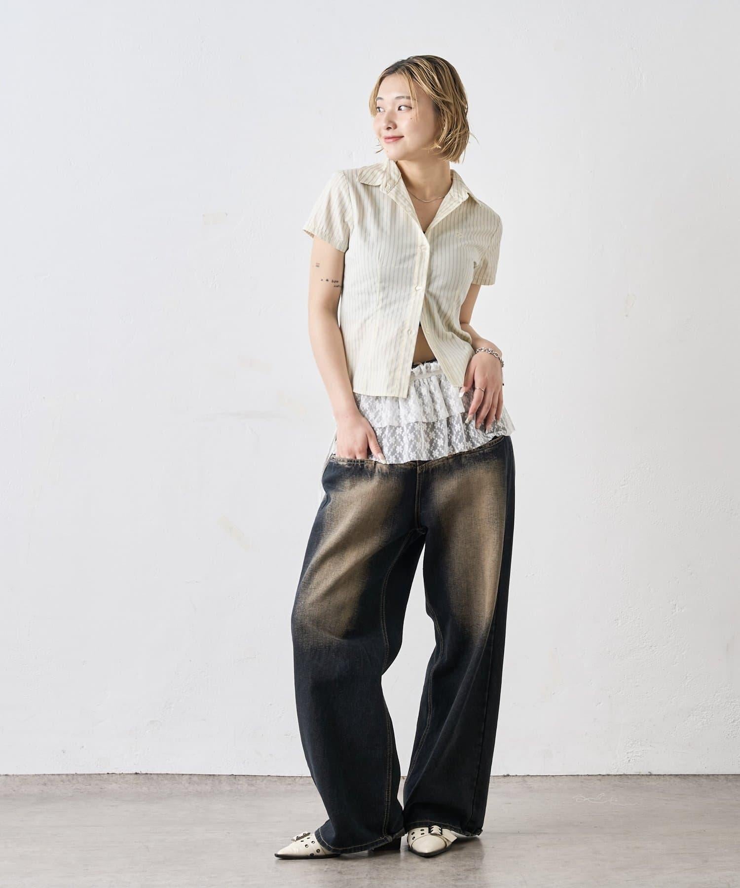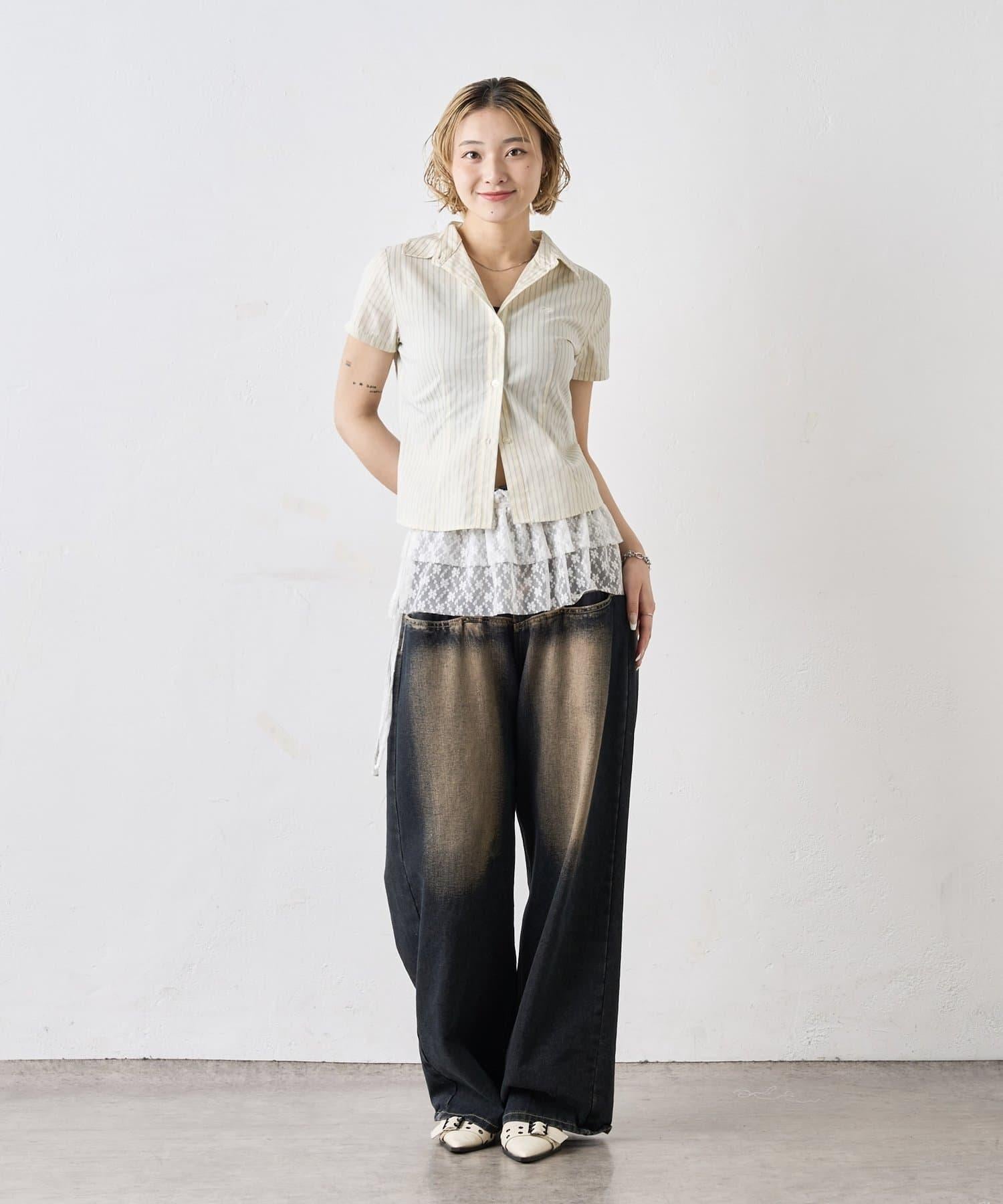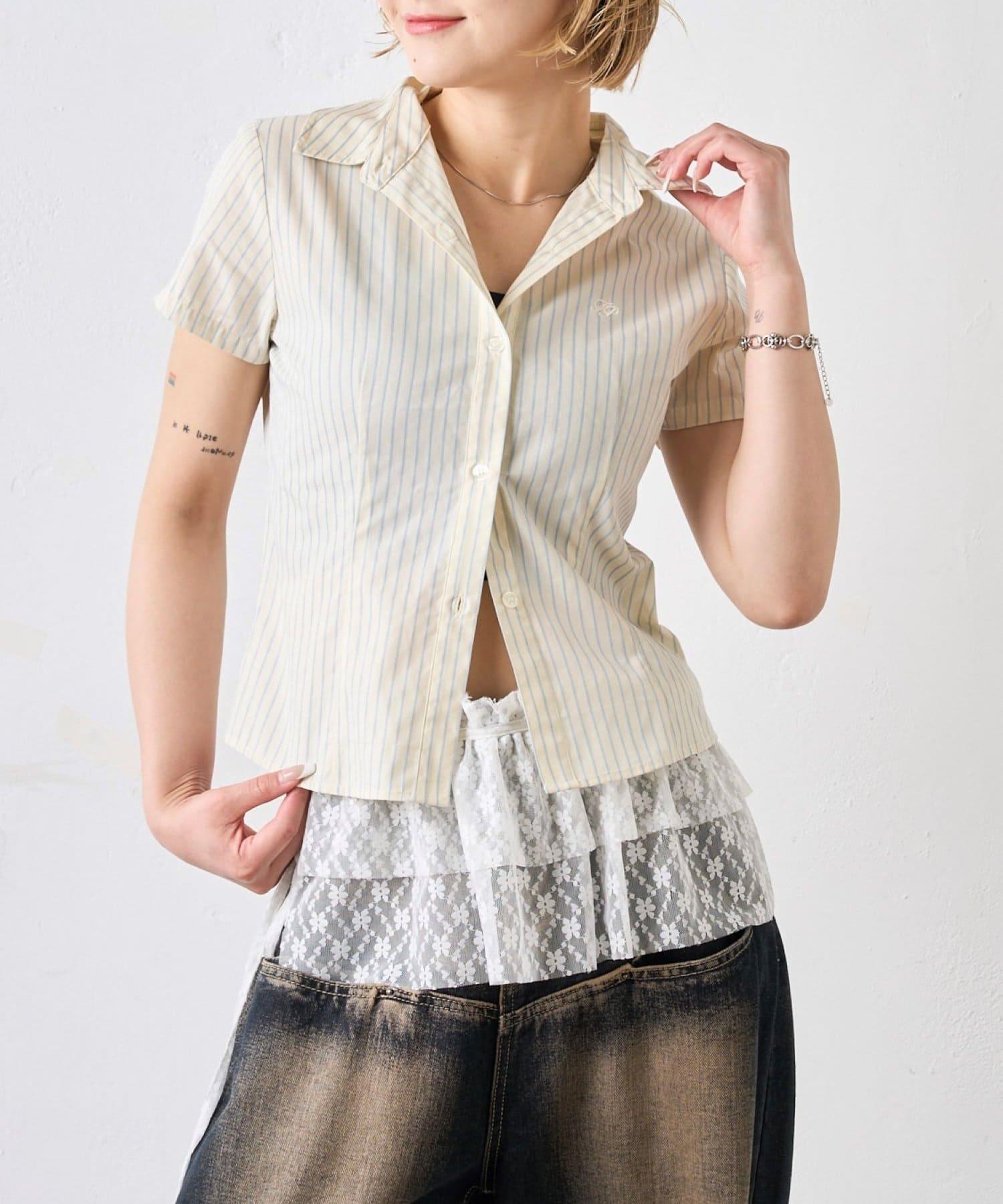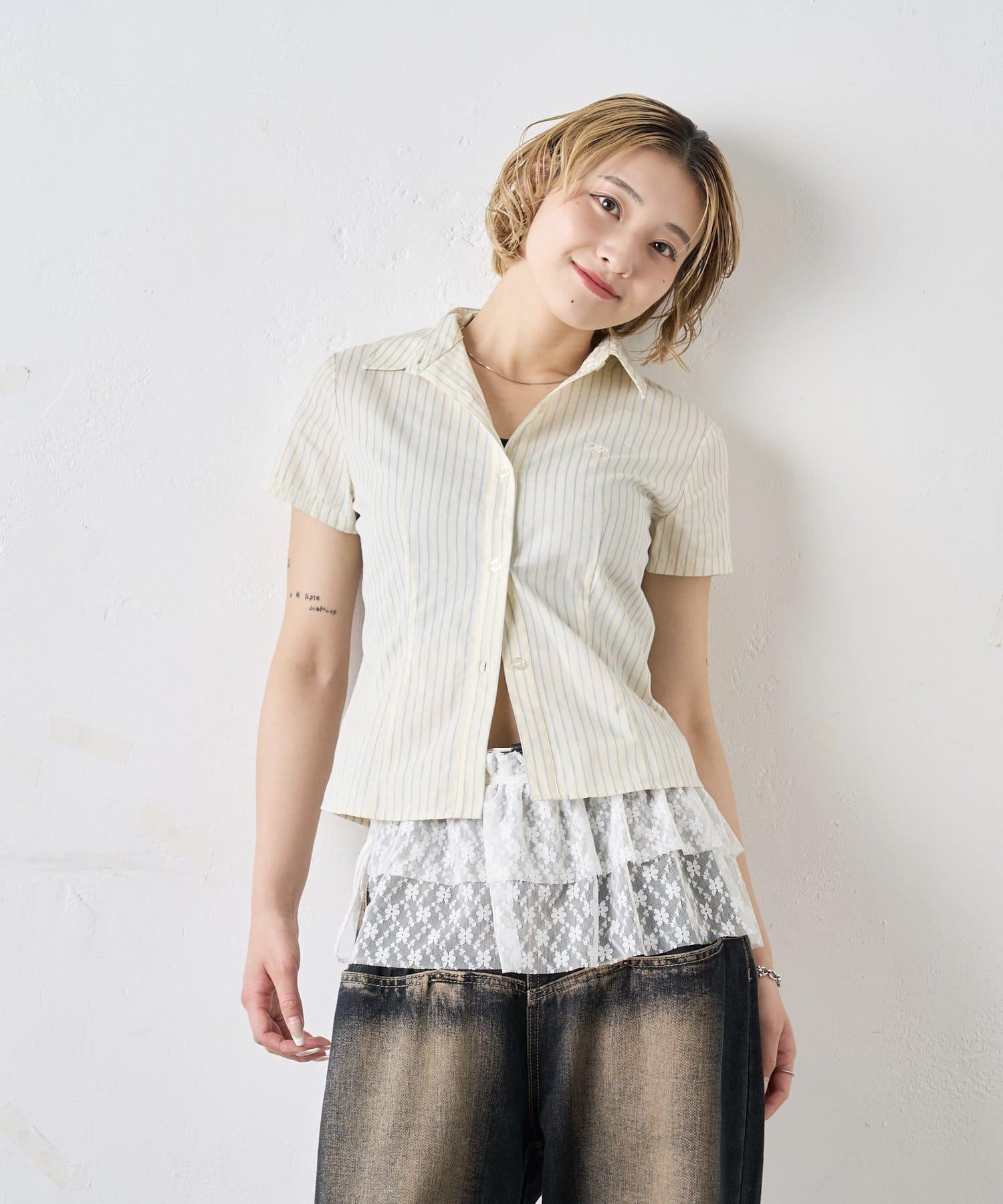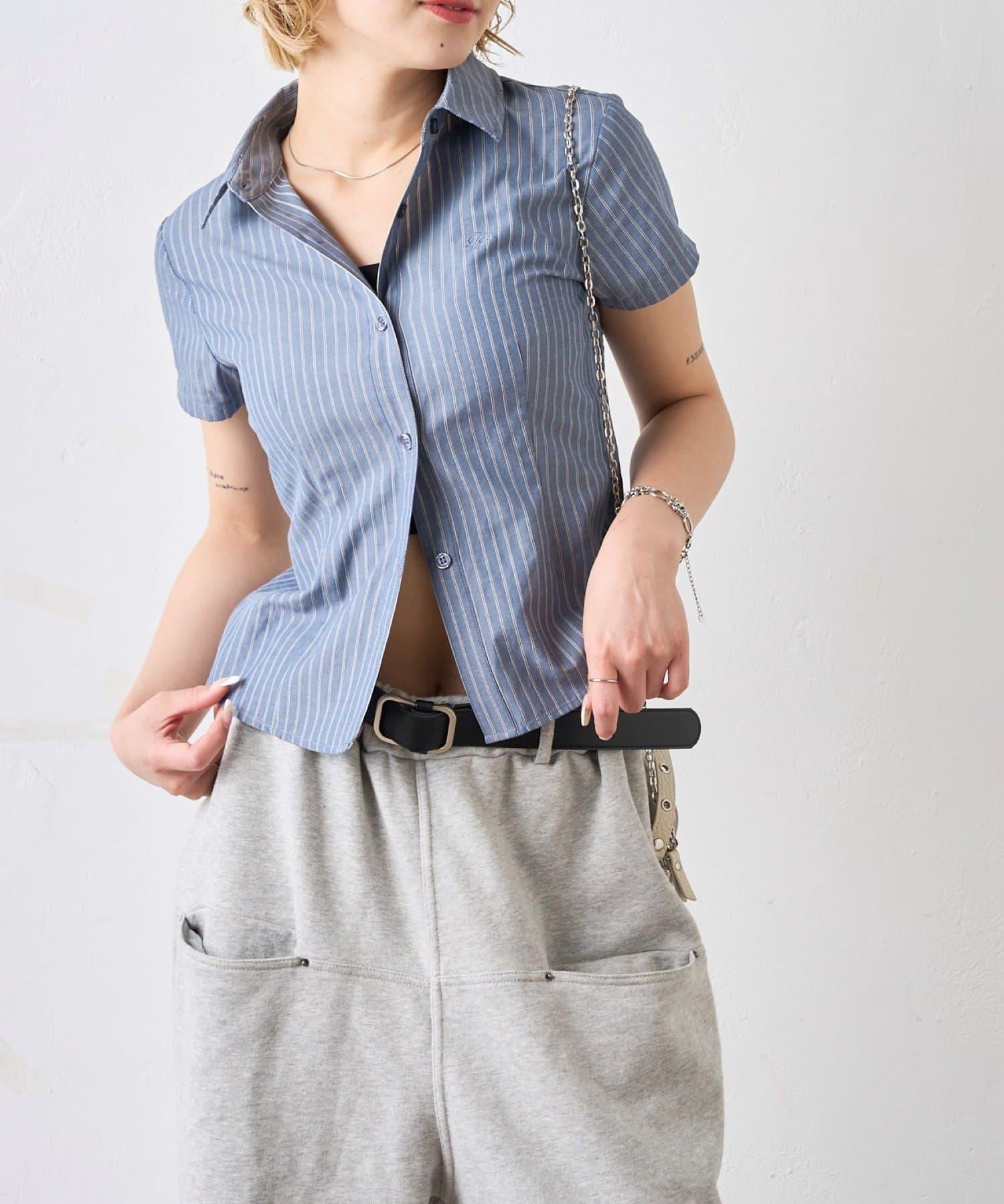 襯衫側面有褶襉,並沿腰部設計,時尚感十足。